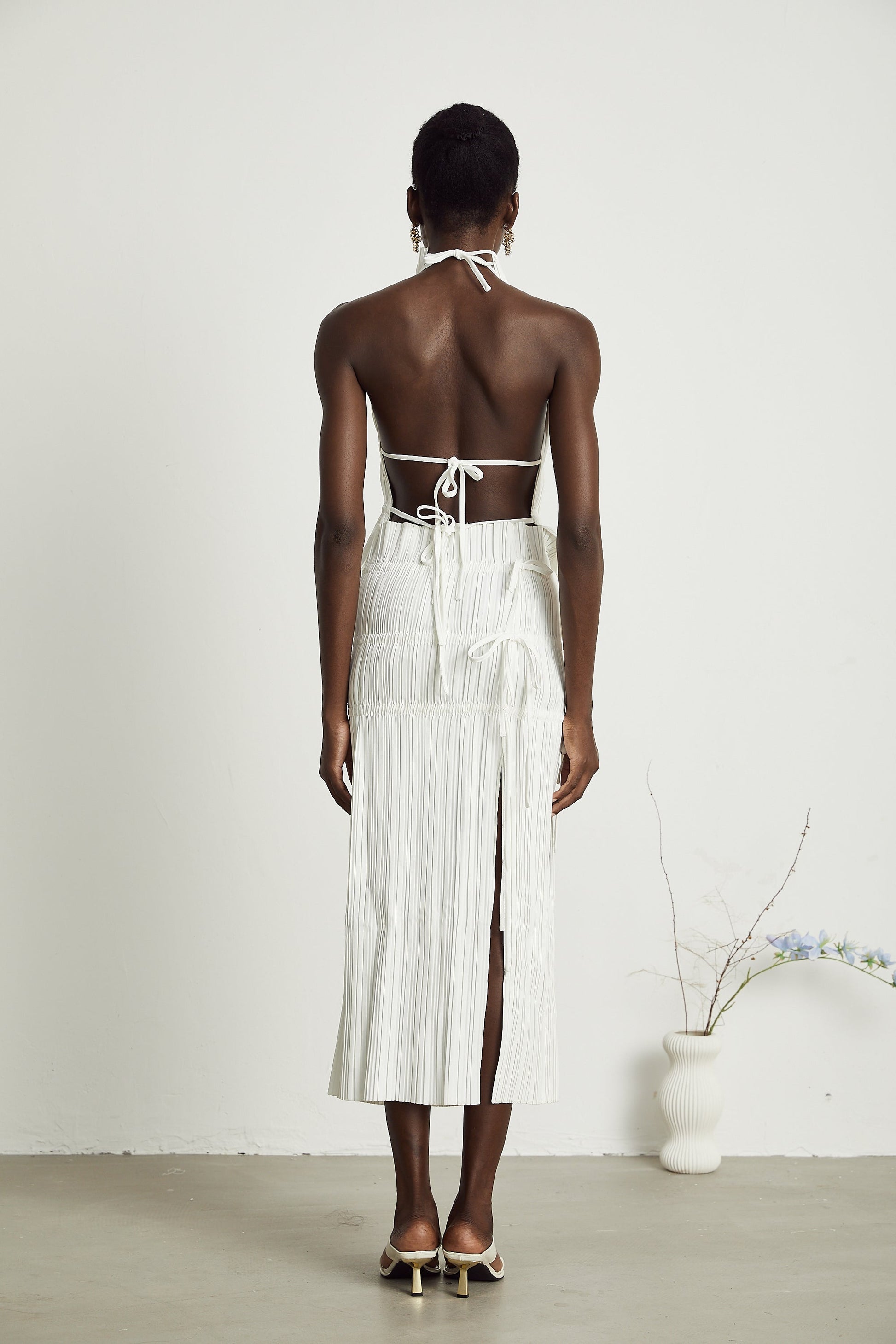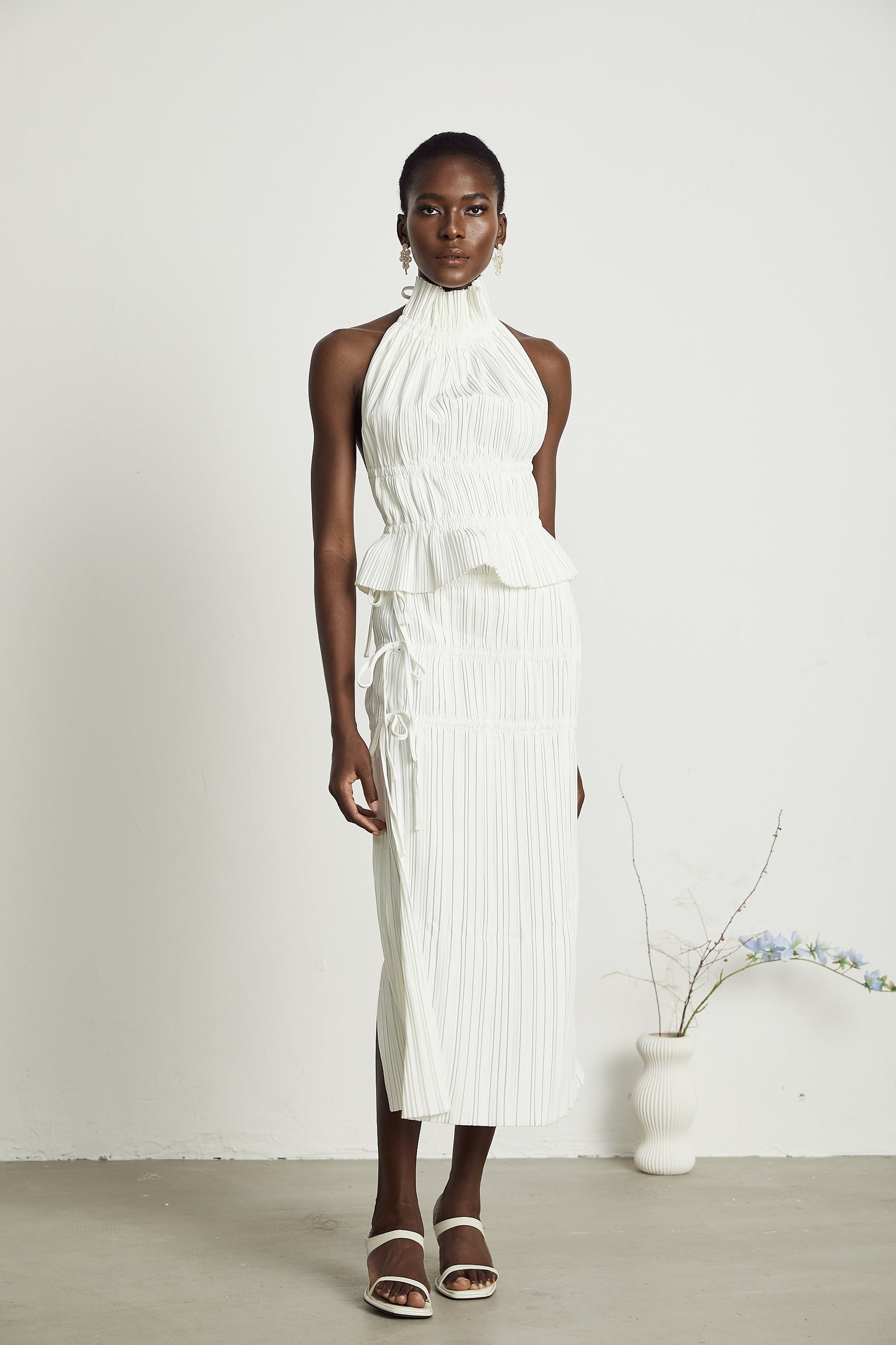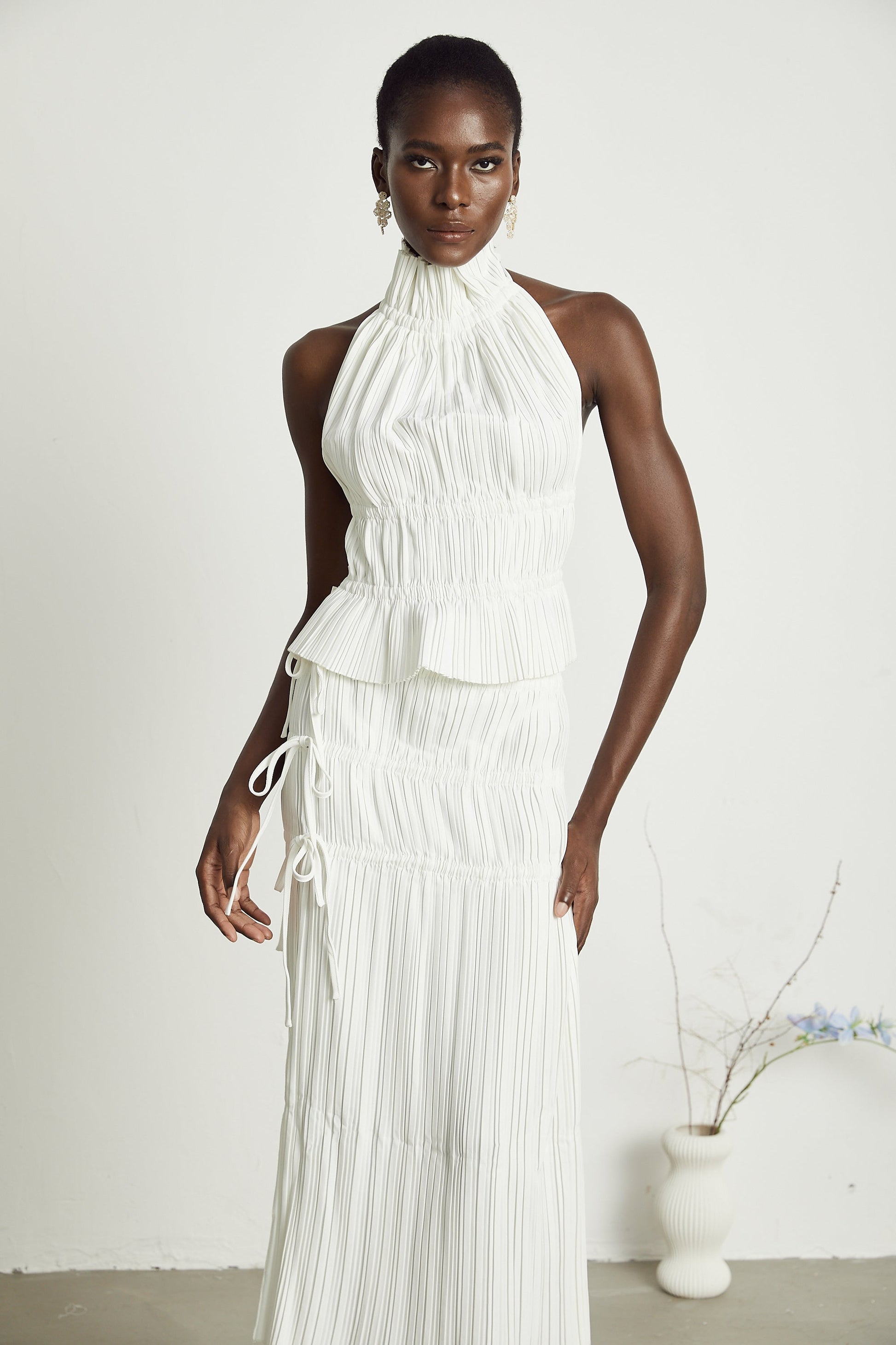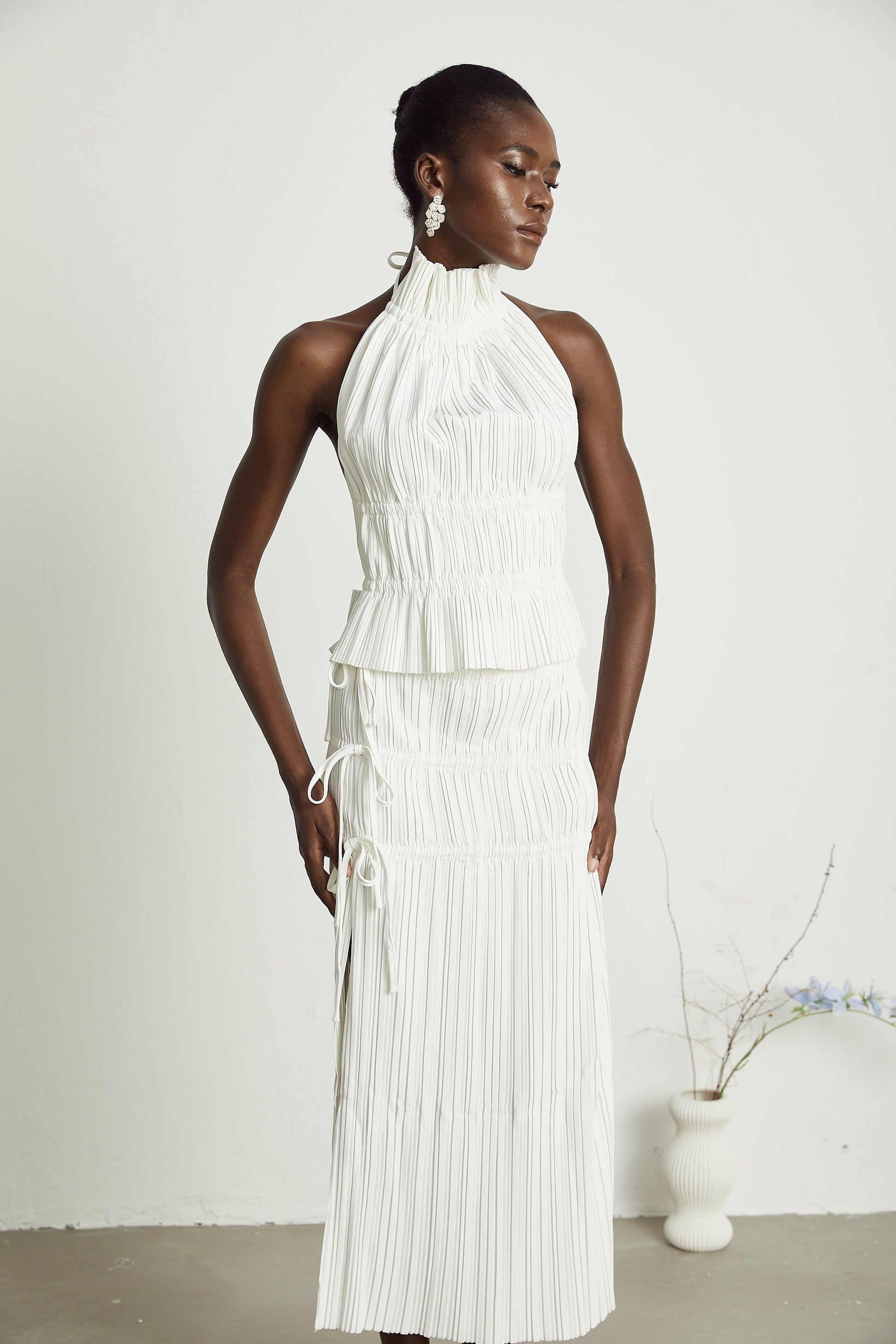 Milisent open-back pleated top & skirt matching set