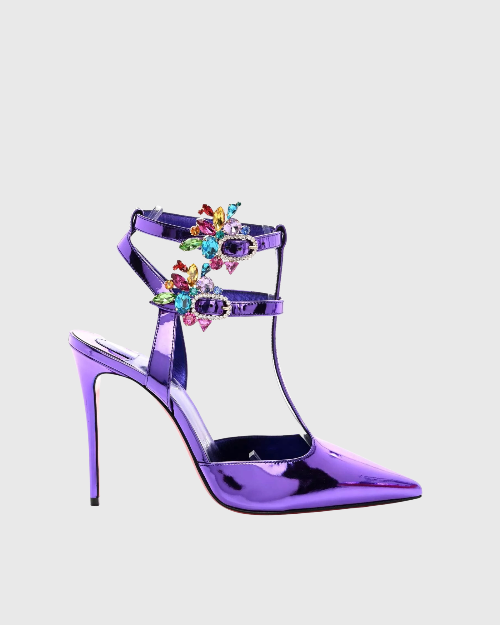 Mina Rhinestone T Strap Pumps In Berry Purple
