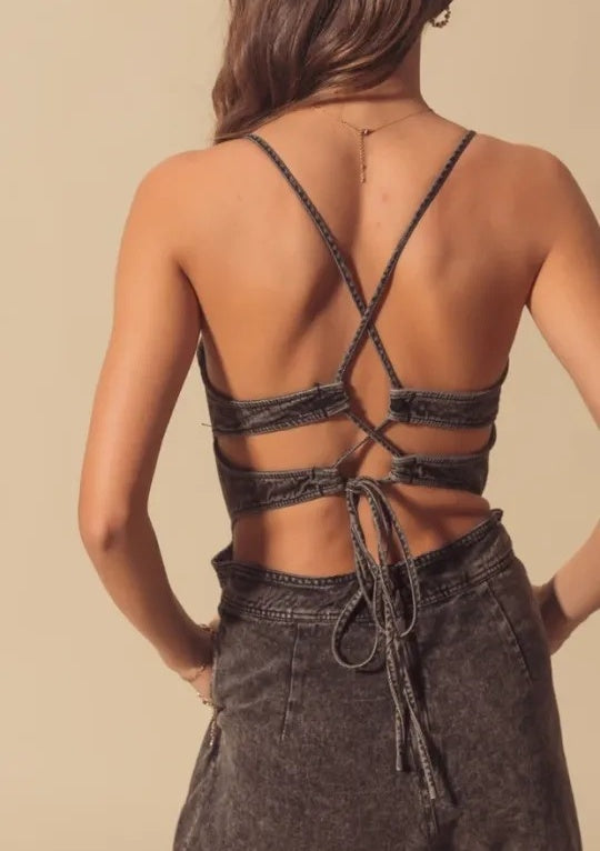 Sleeveless Backless Sexy Denim Romper