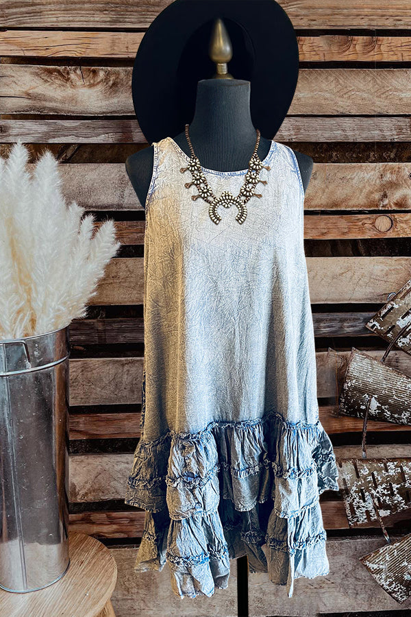 Ruffled Hem Strappy Denim Dress