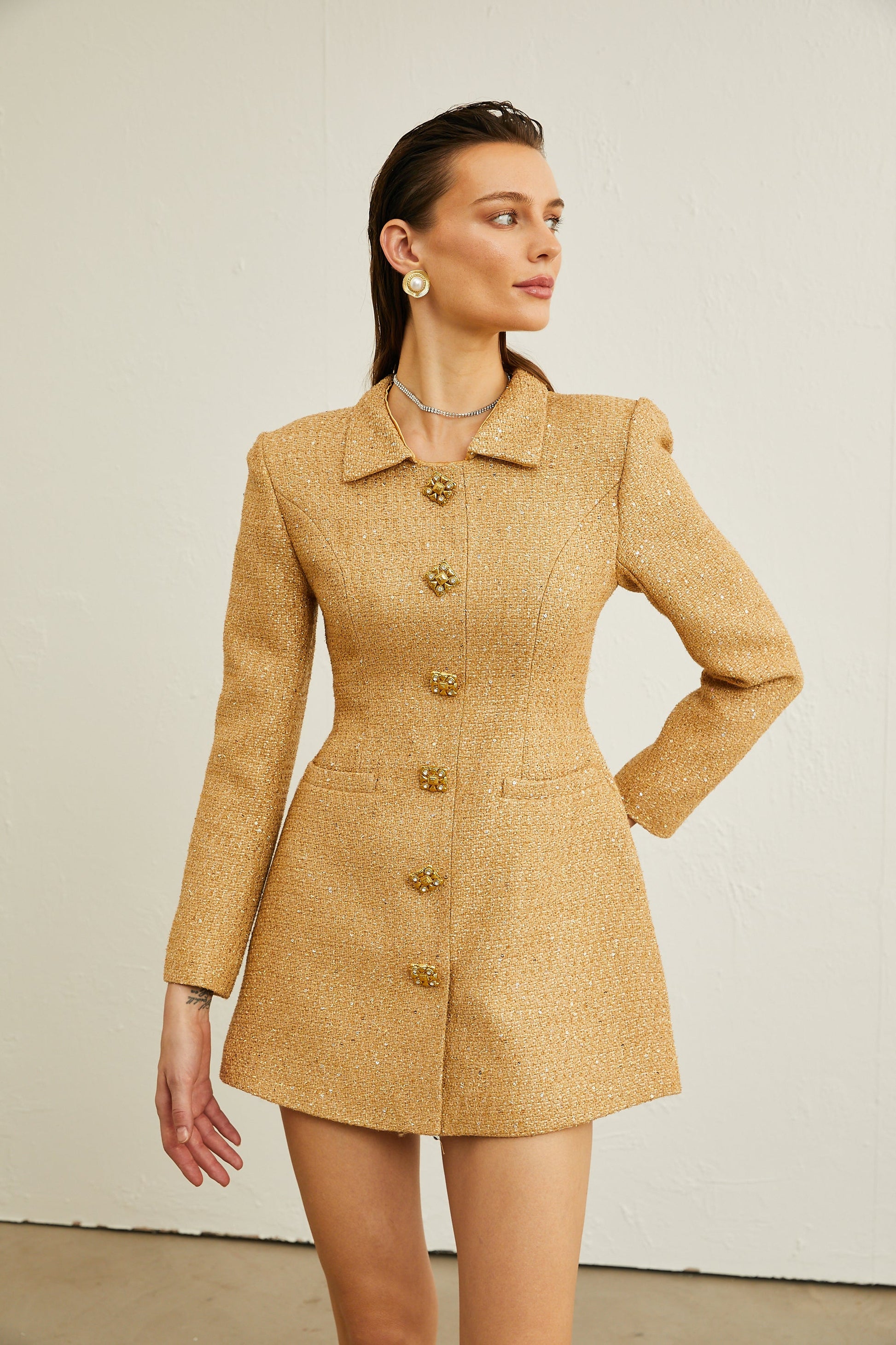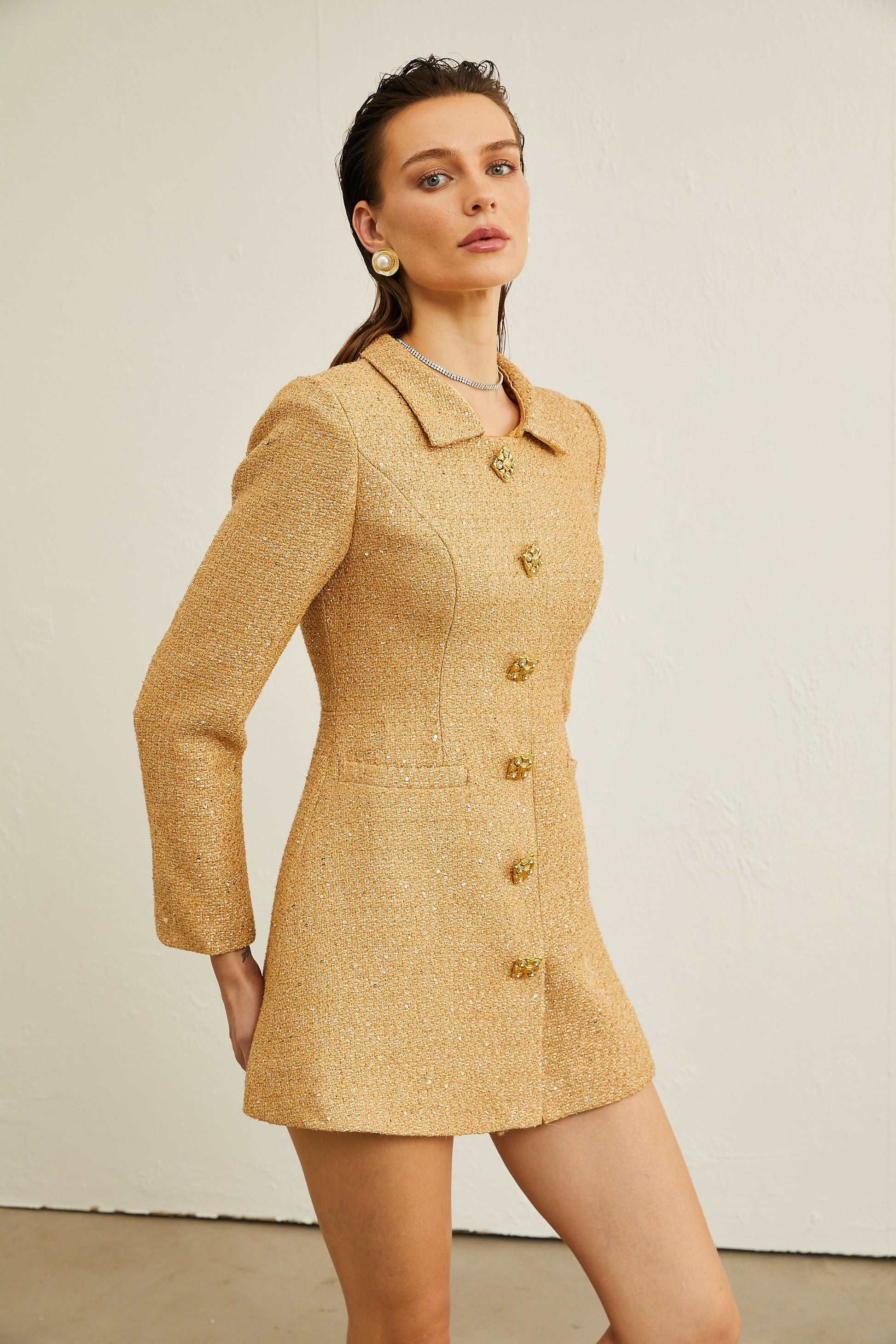 Morgane tweed long-sleeve mini dress