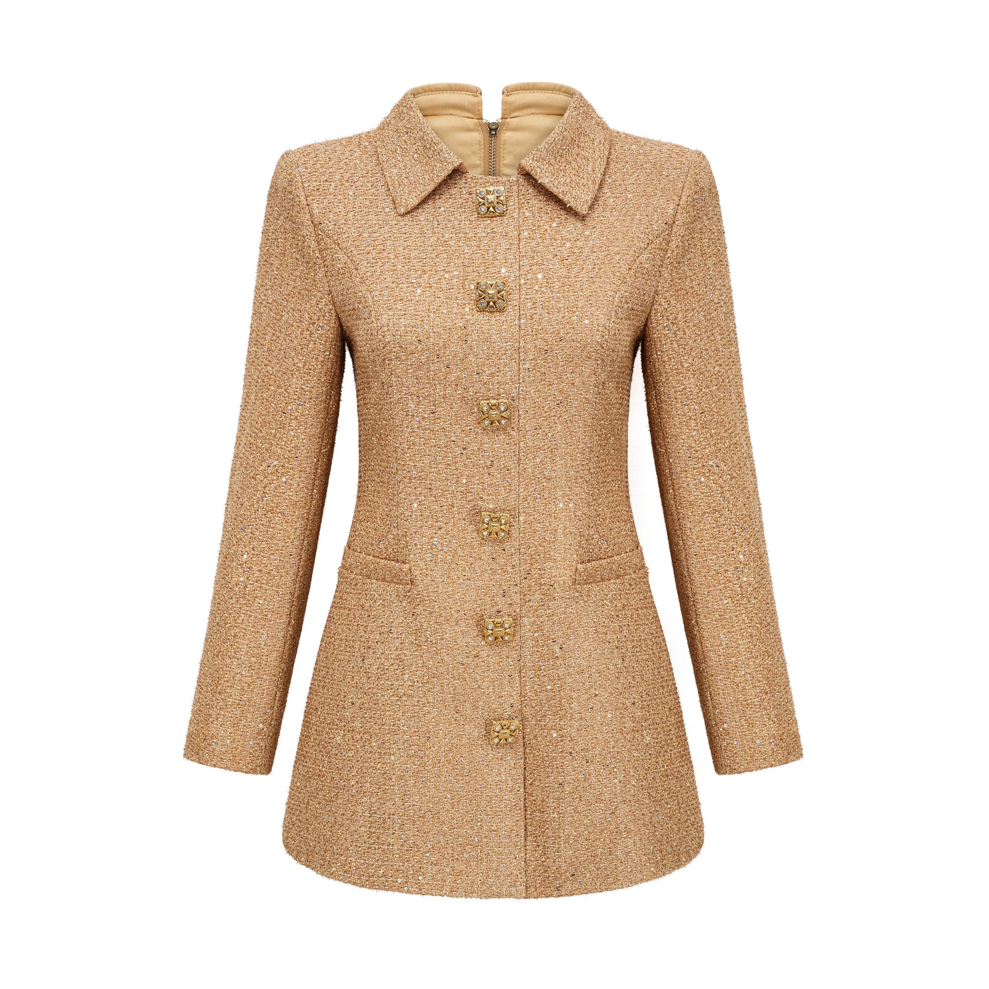 • Embossed gold-tone buttons