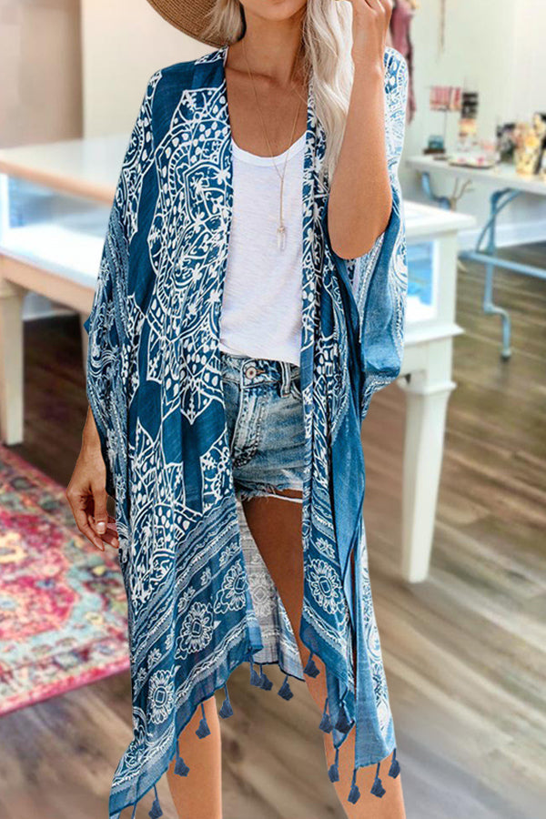 Stay on trend this season in our new chic, full cardigan. We especially love the graphic print fabric and think this piece will be a new favorite in your closet!