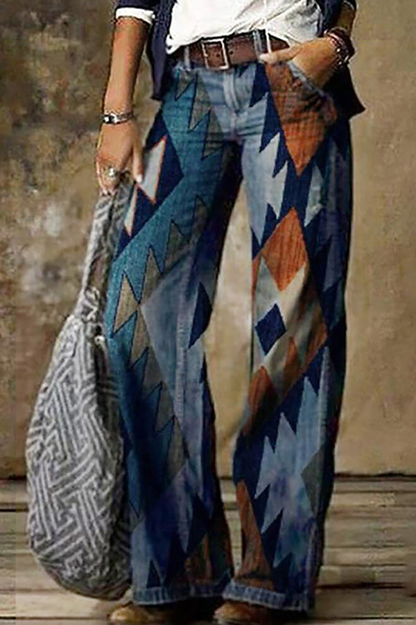 Stay on trend this season in our new classic, baggy jeans. We especially love the geometric print fabric and think this piece will be a new favorite in your closet!