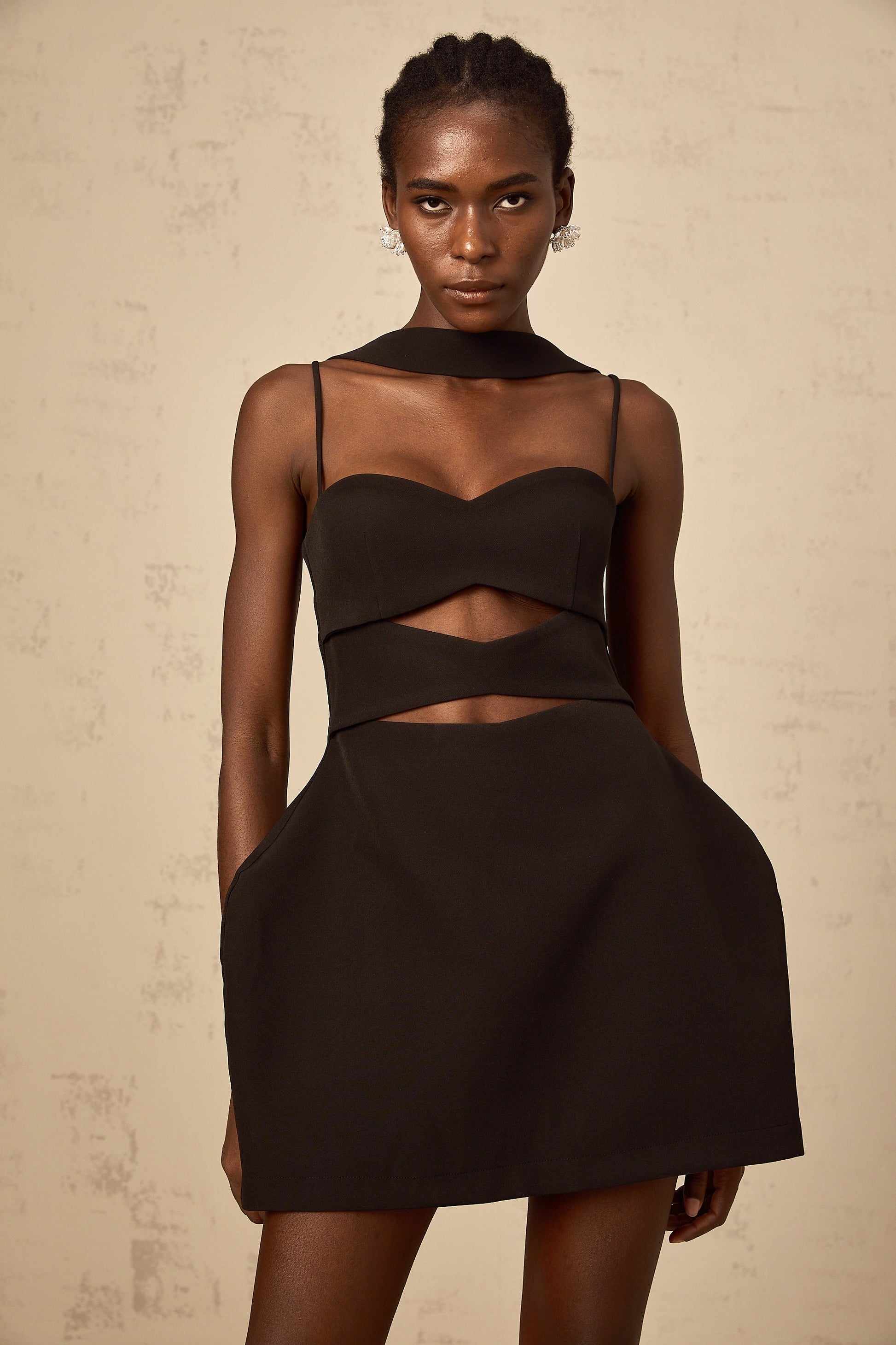 Mylene black cut-out puff mini dress
