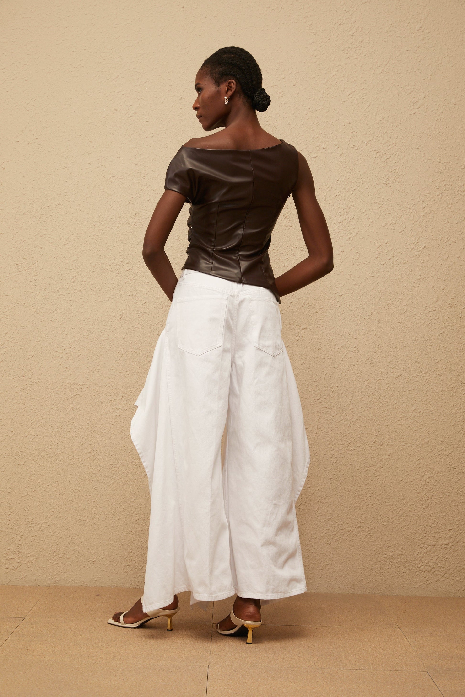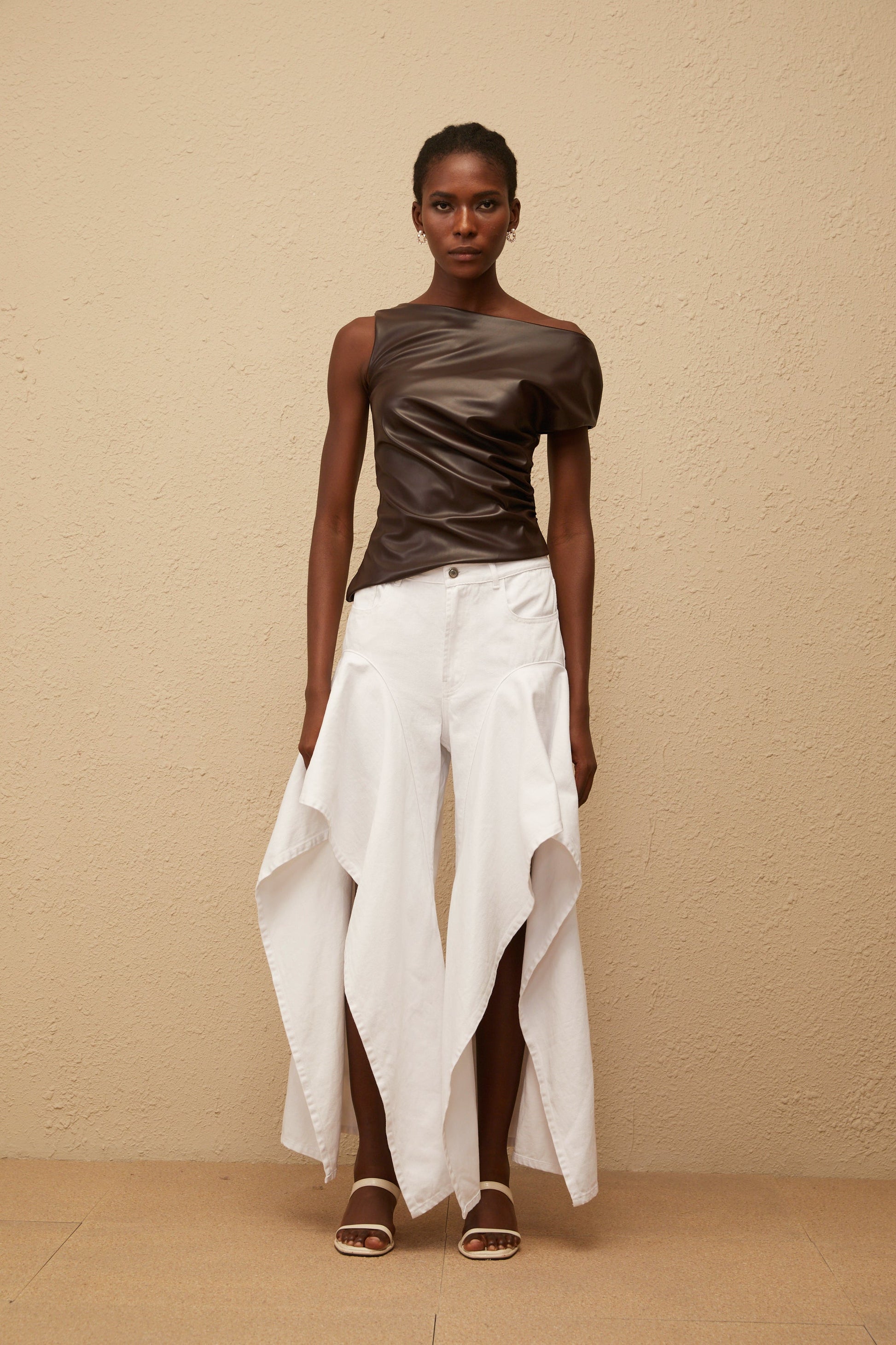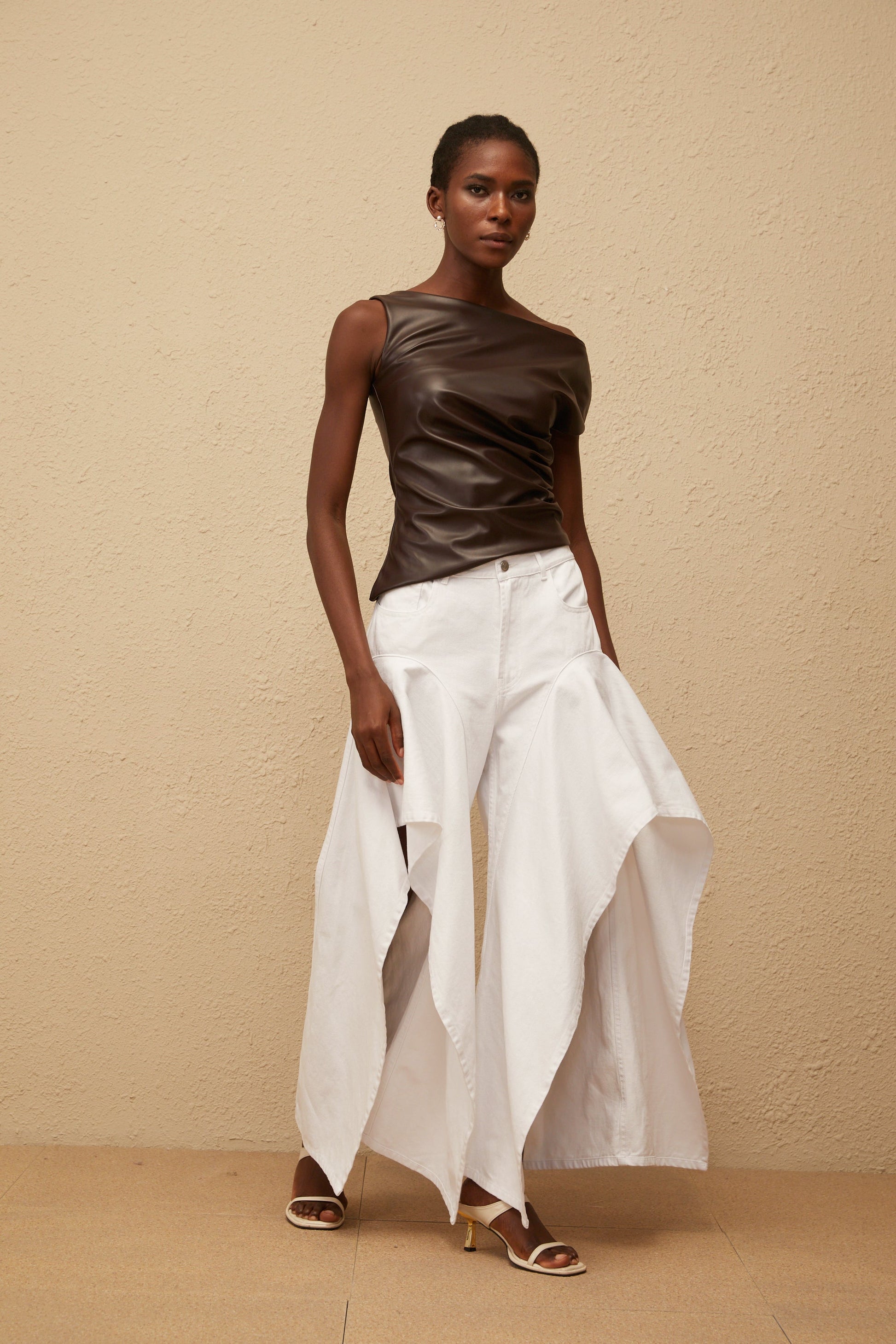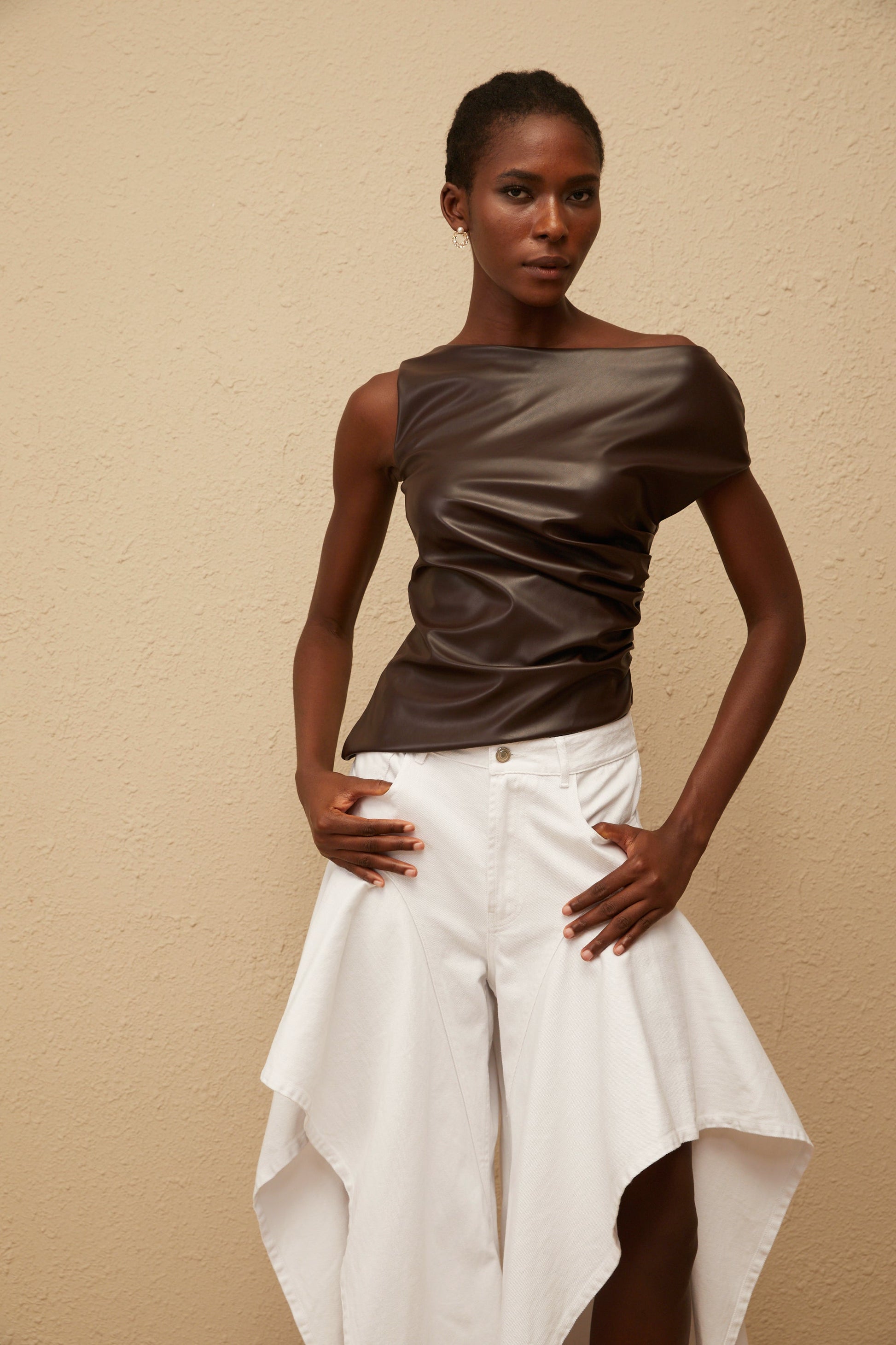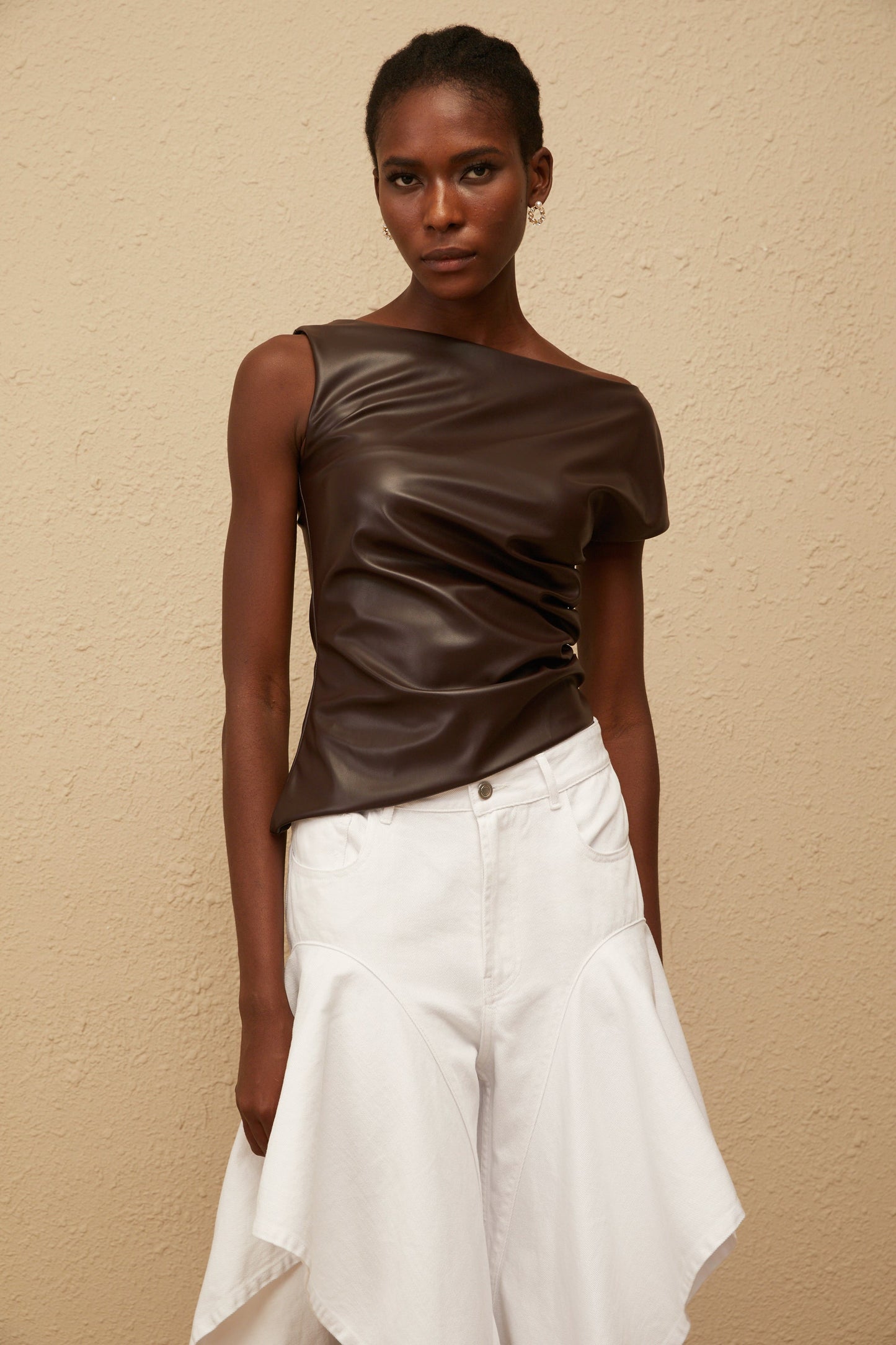 Nadja Brown Asymmetrical Leather Top
