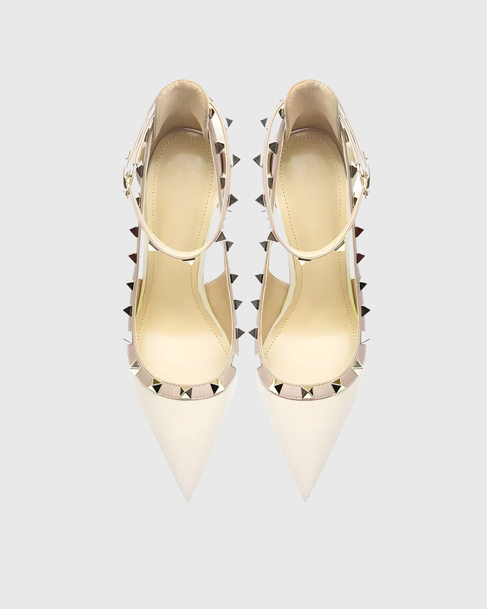 Nella Rivet Embellished Strap Cutout Pumps In White