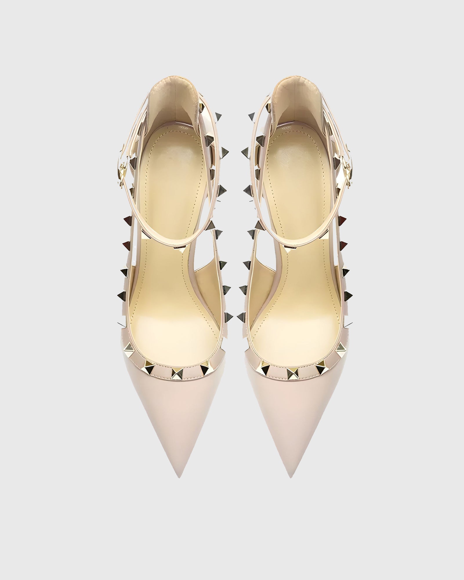 Elevate your style with our Nella Rivet Pumps! Adorned with embellished straps in a gorgeous pink hue, these pumps add a touch of glam to any outfit. Make a statement and stand out from the crowd with our Nella Rivet Pumps.