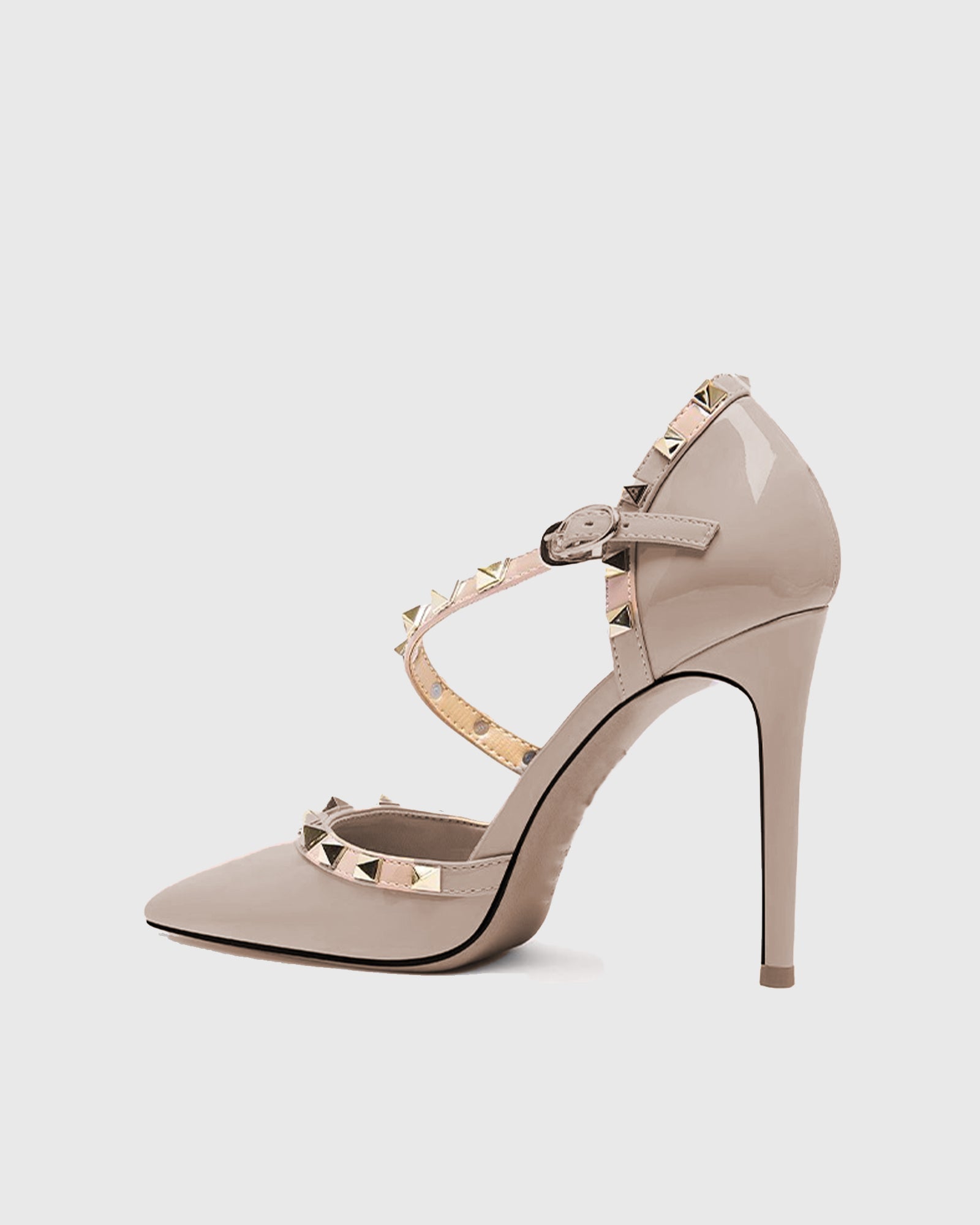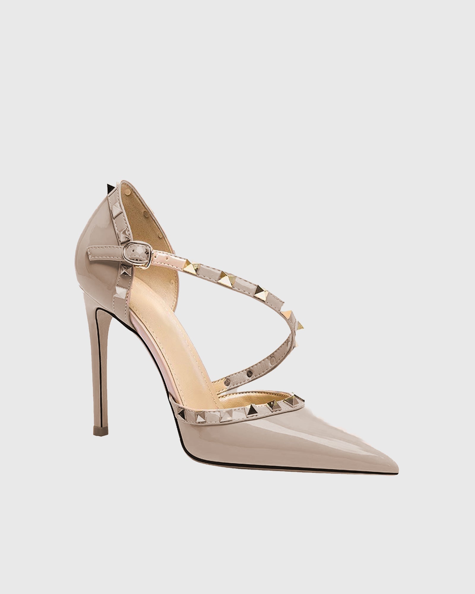 Step into elegance with the Nella Rivet Lace Up Pumps in Beige. These chic pumps combine a timeless beige shade with edgy rivet details, creating a perfect balance of sophistication and modern style. The lace-up design ensures a secure, customizable fit, while the sleek silhouette enhances any outfit, from office wear to evening outings. Elevate your wardrobe with these versatile pumps that promise both comfort and standout appeal.