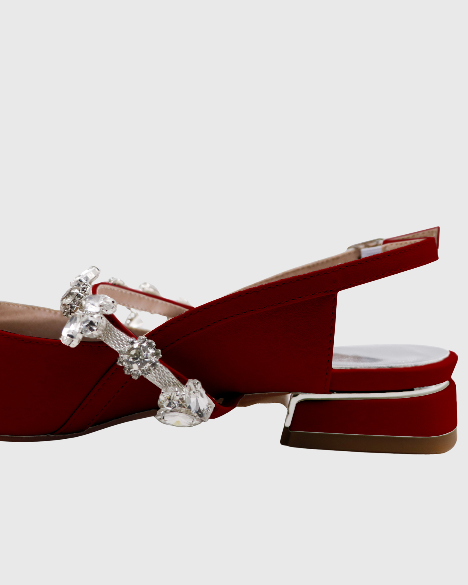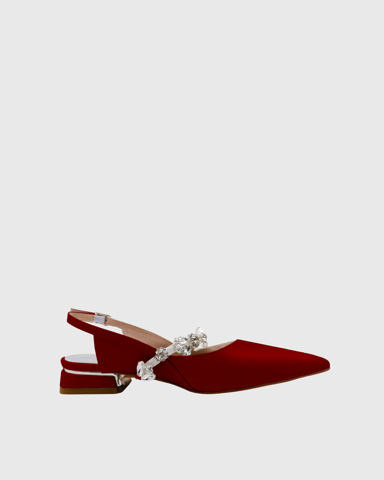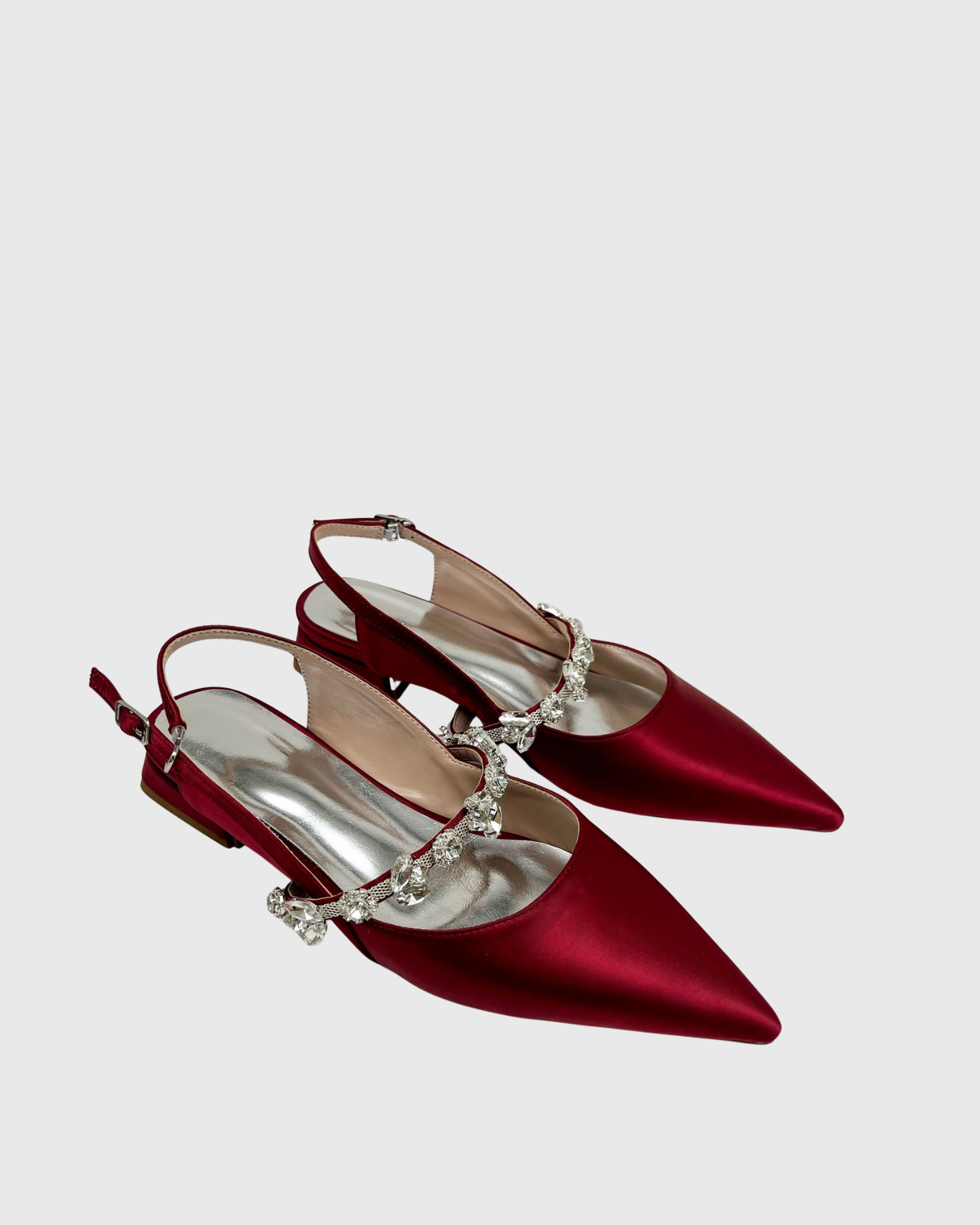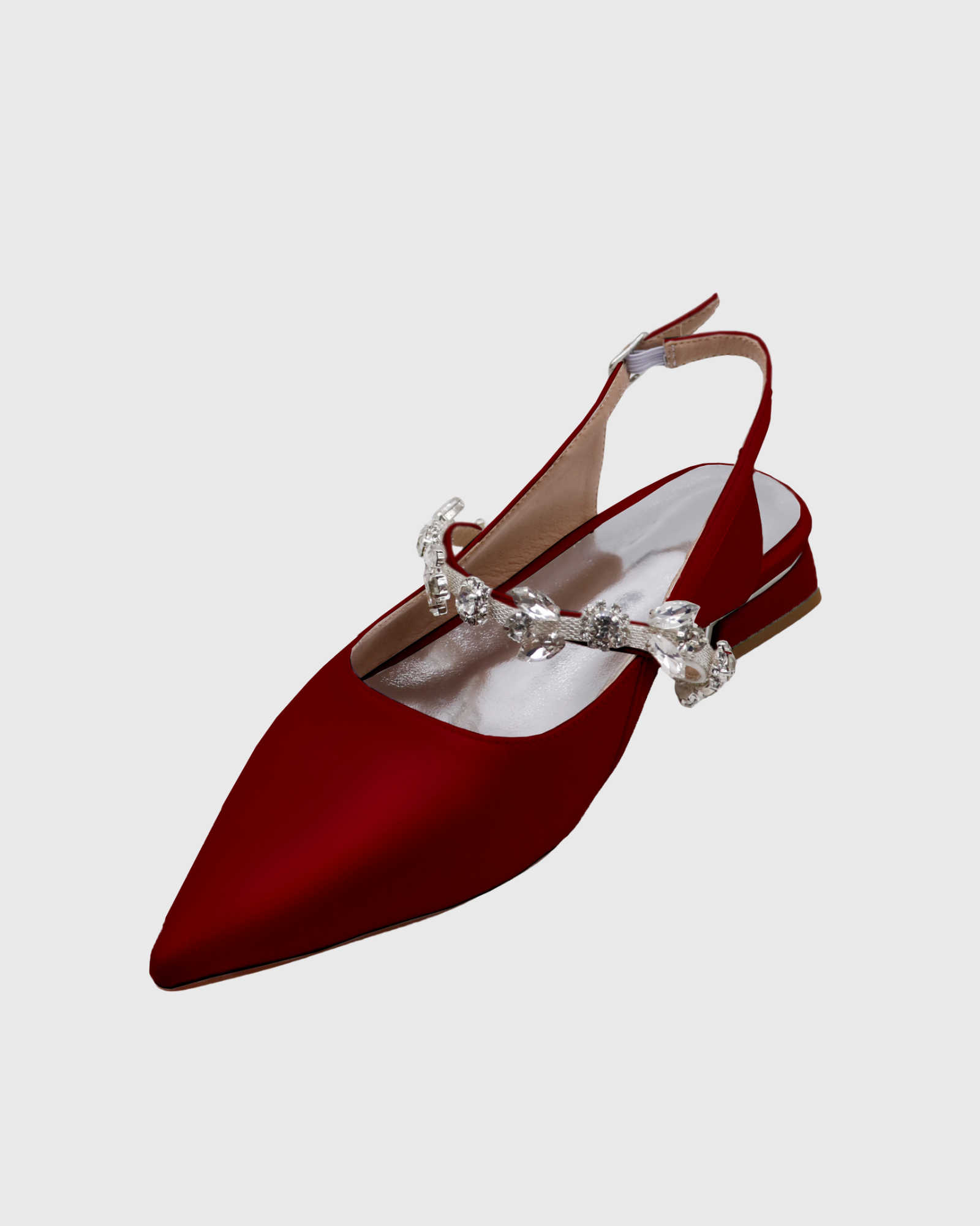 Nerina Rhinestone Strap Satin Flats In Wine