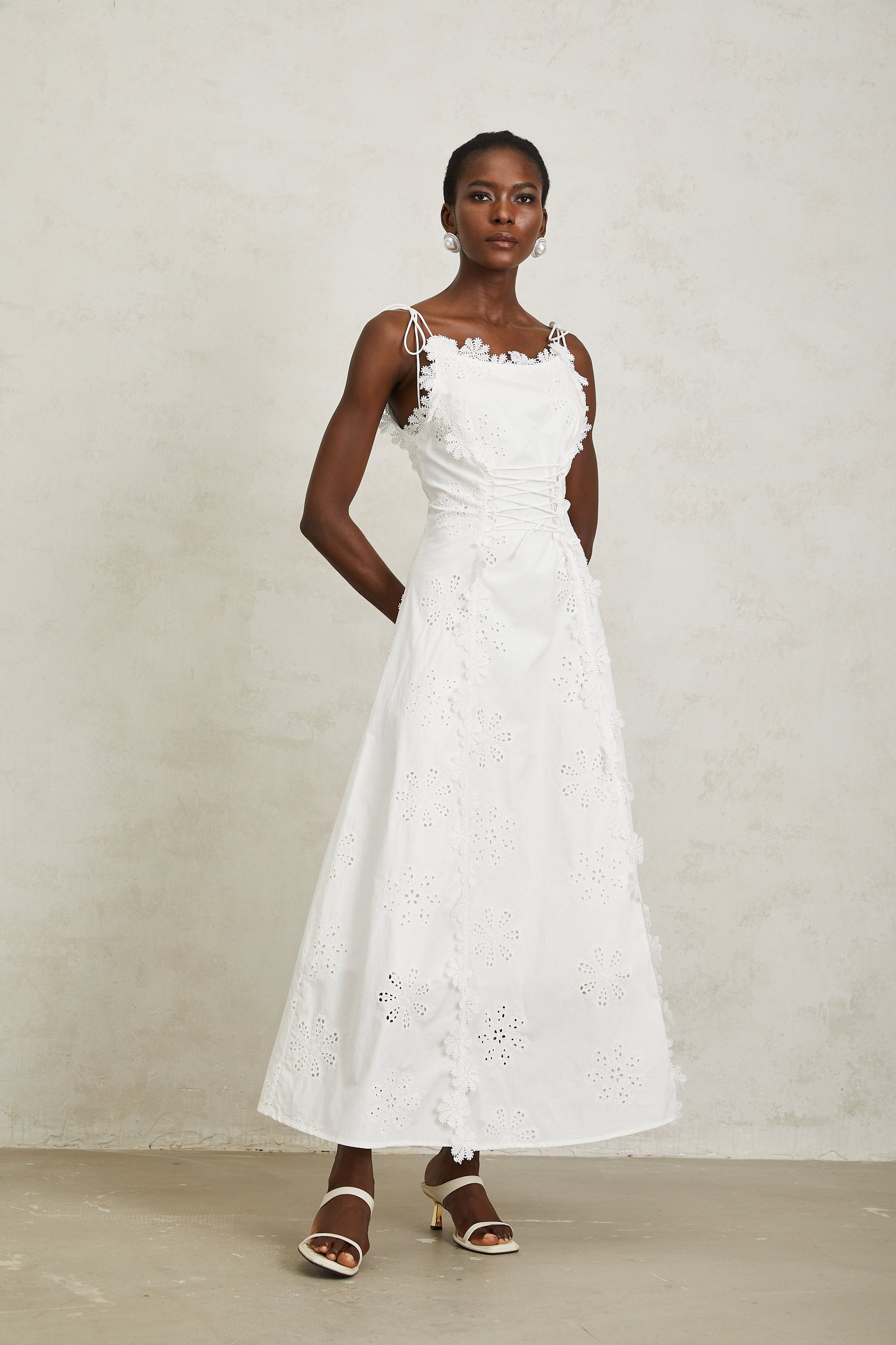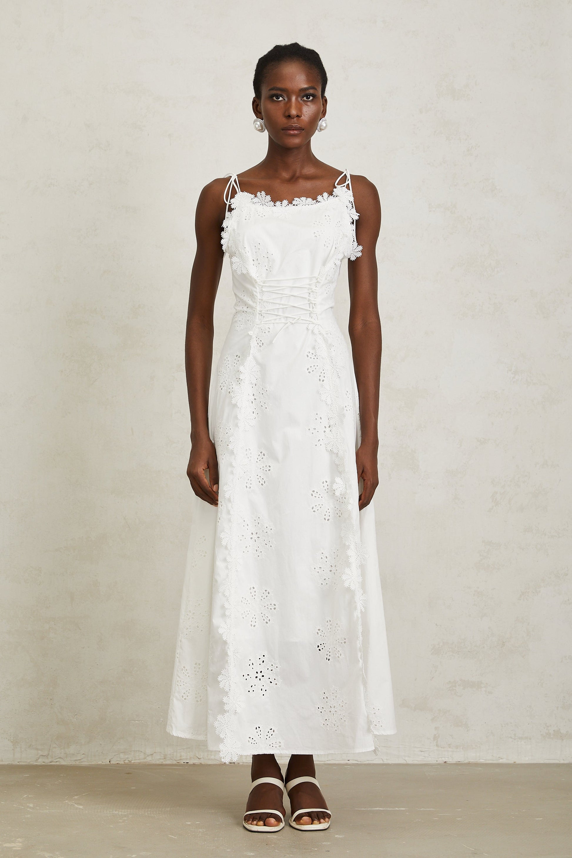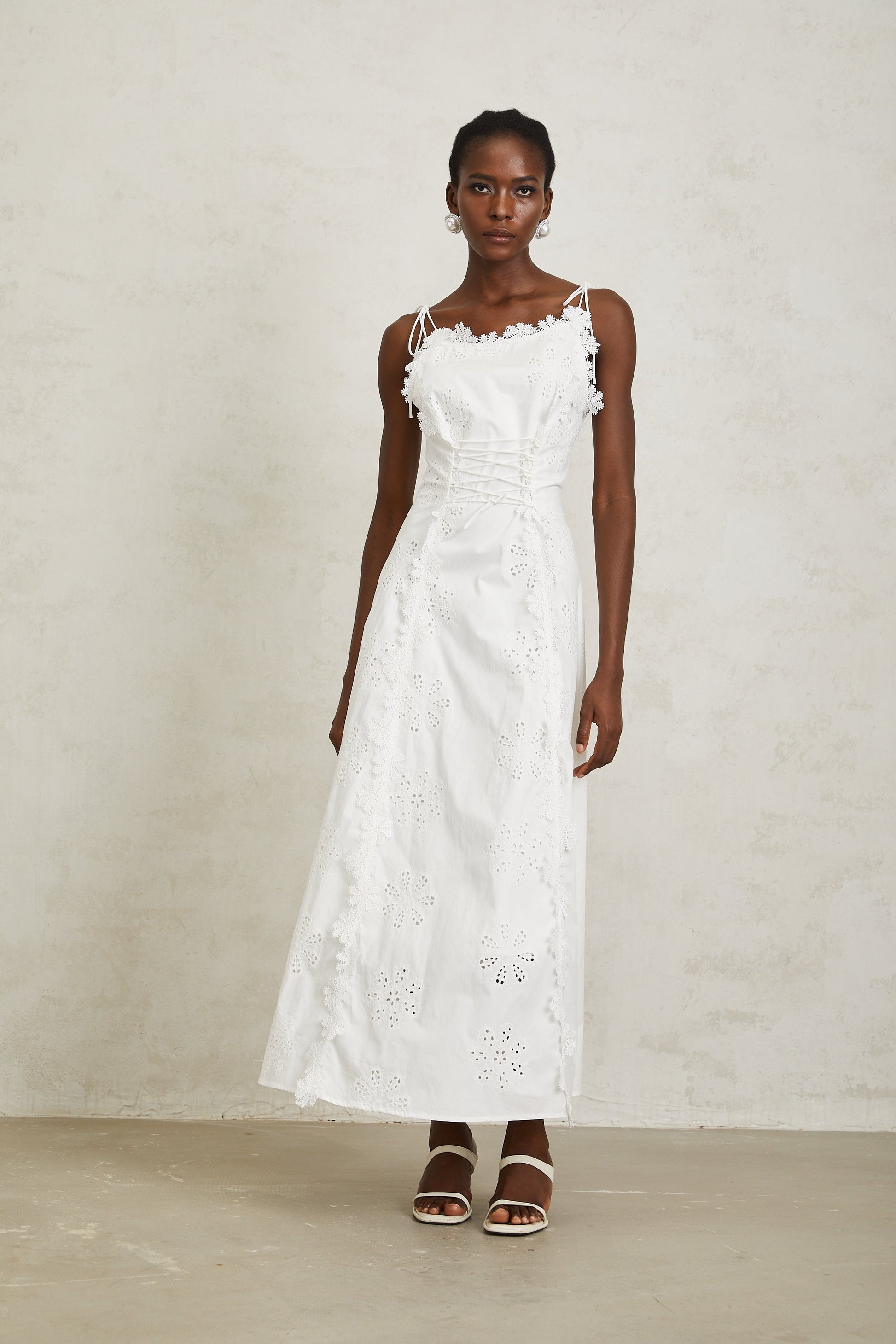 Nevaeh White Sleeveless Floral Embroidered Maxi Dress