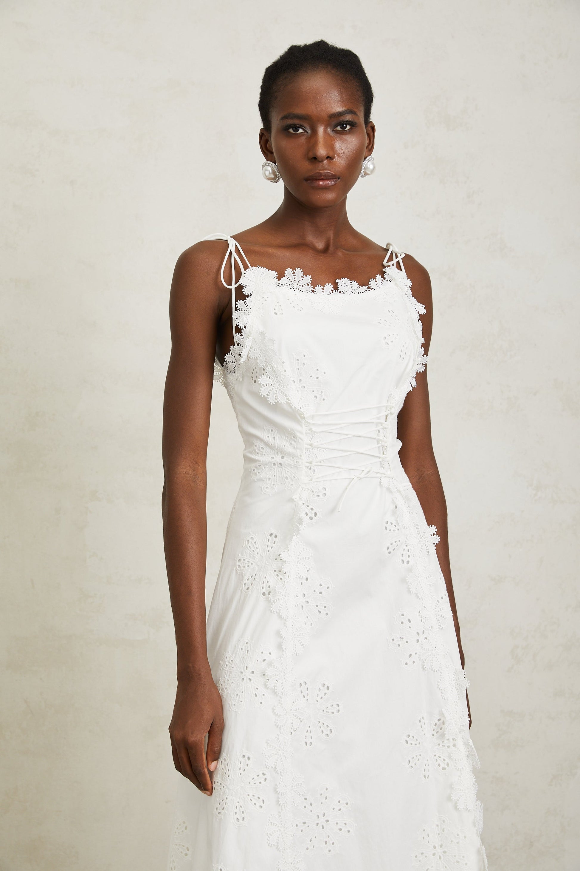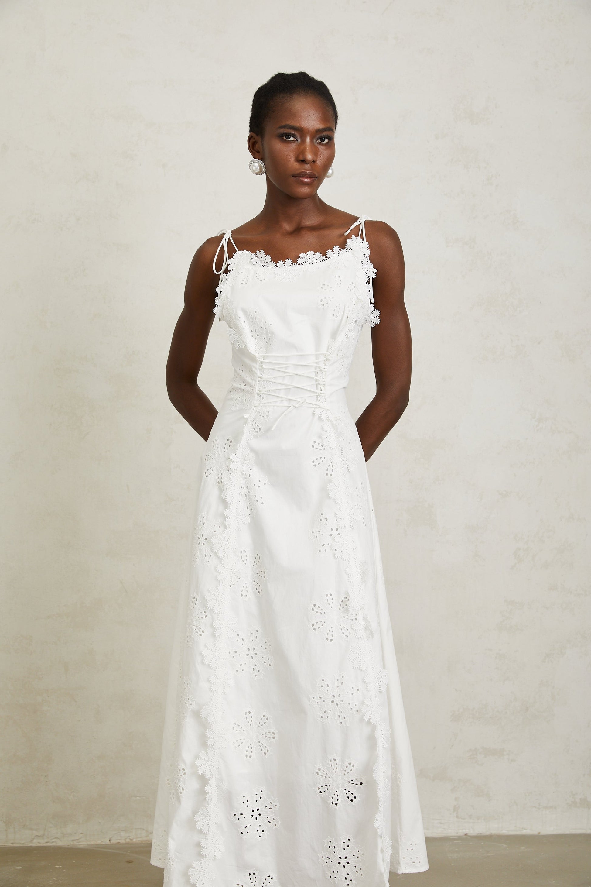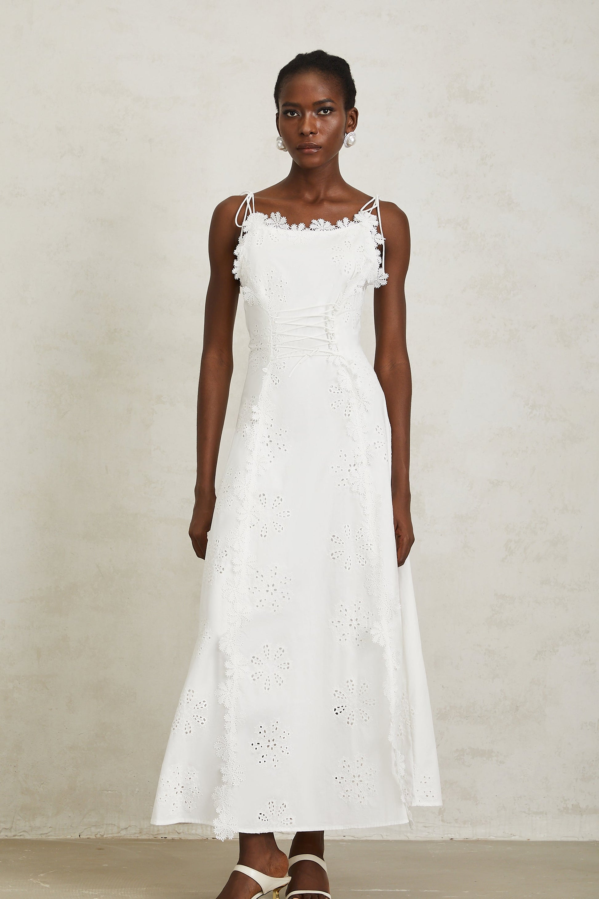 Nevaeh White Sleeveless Floral Embroidered Maxi Dress