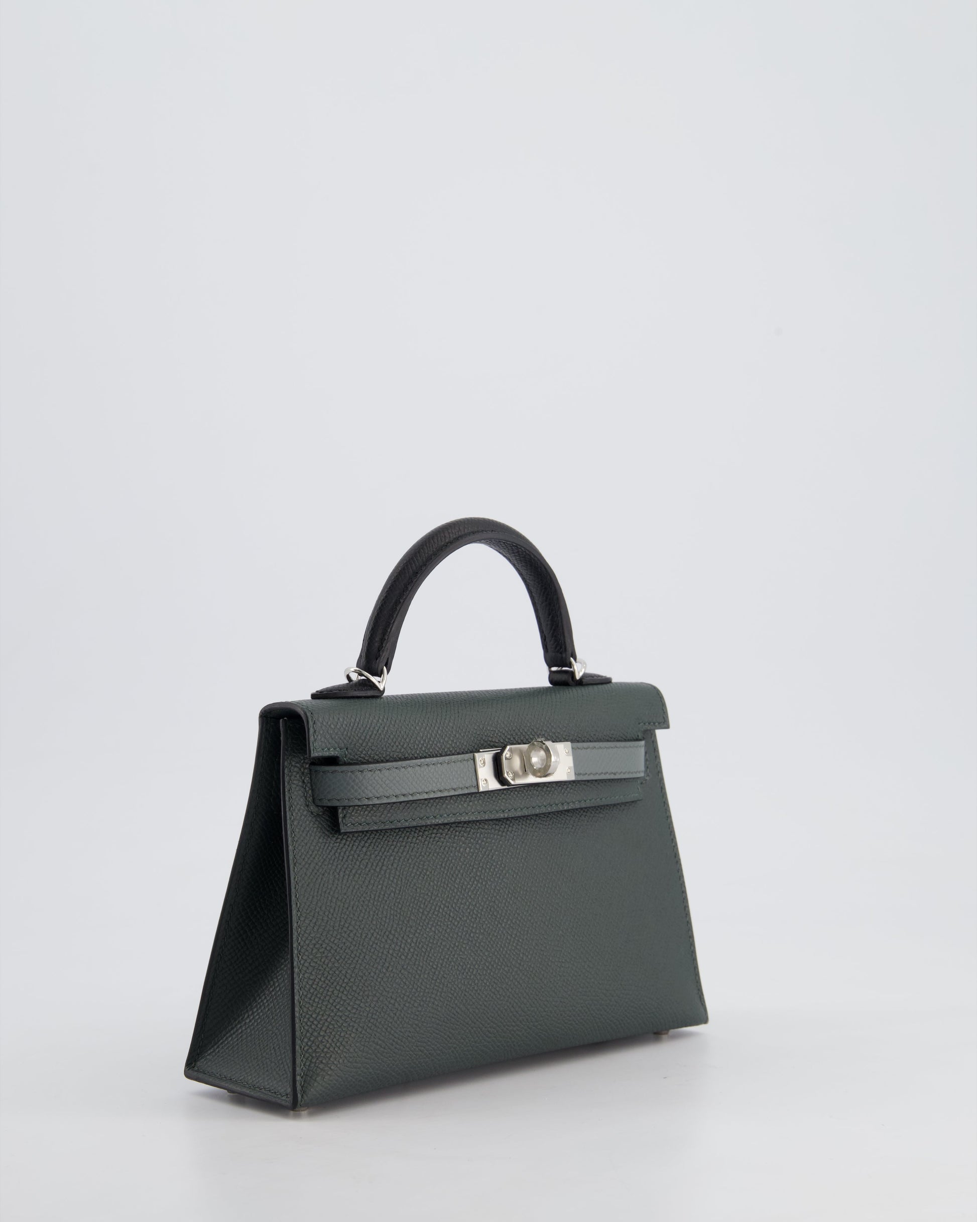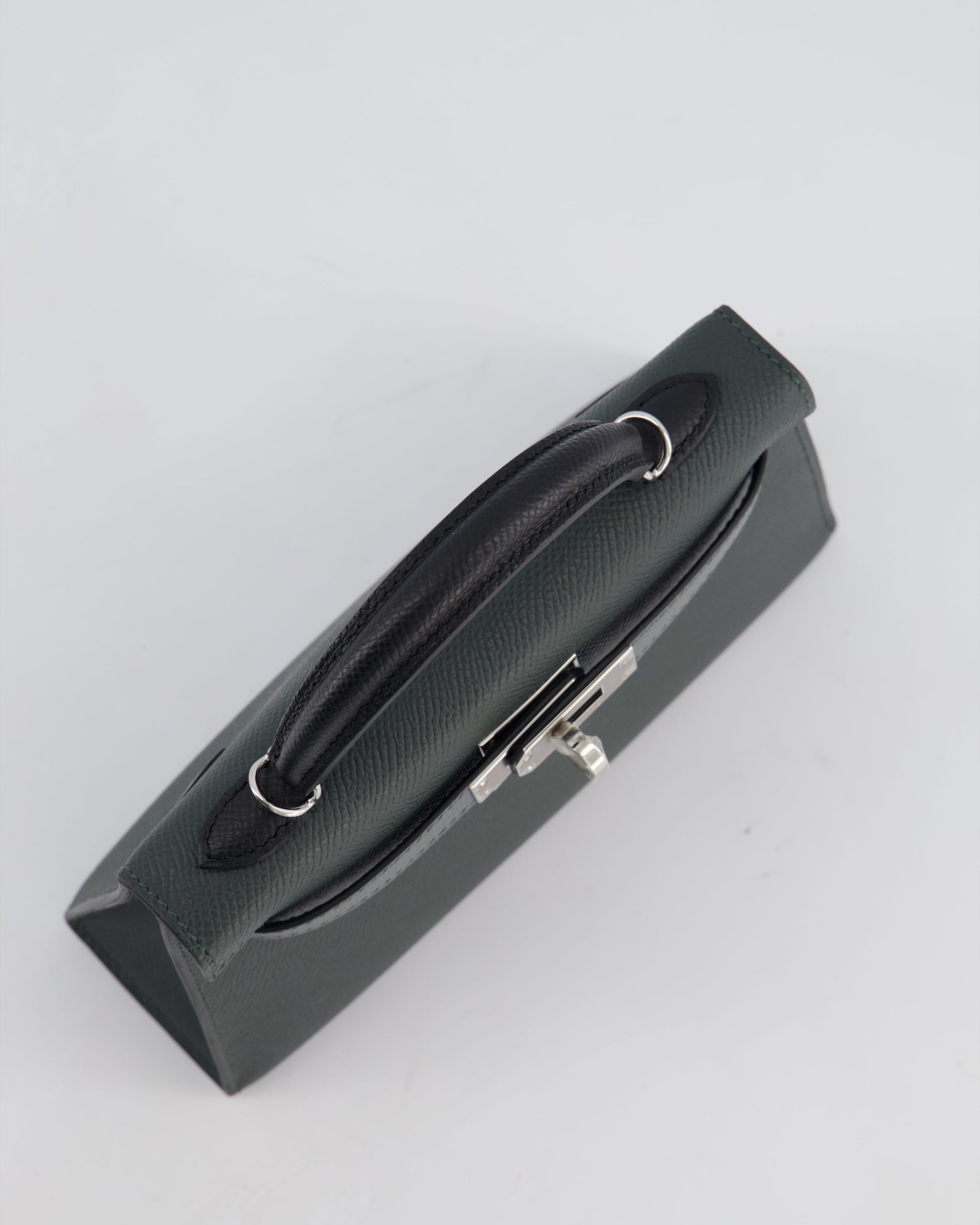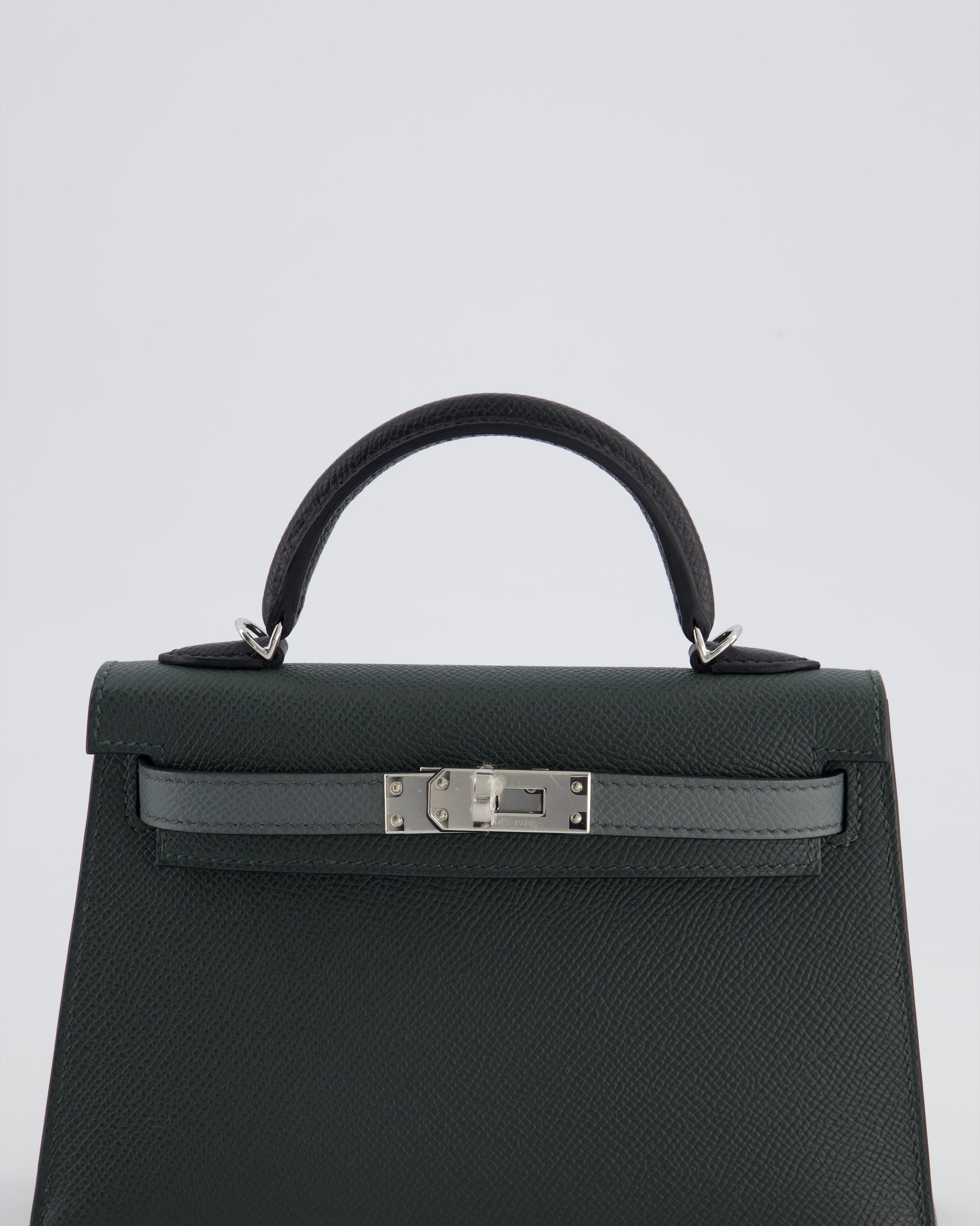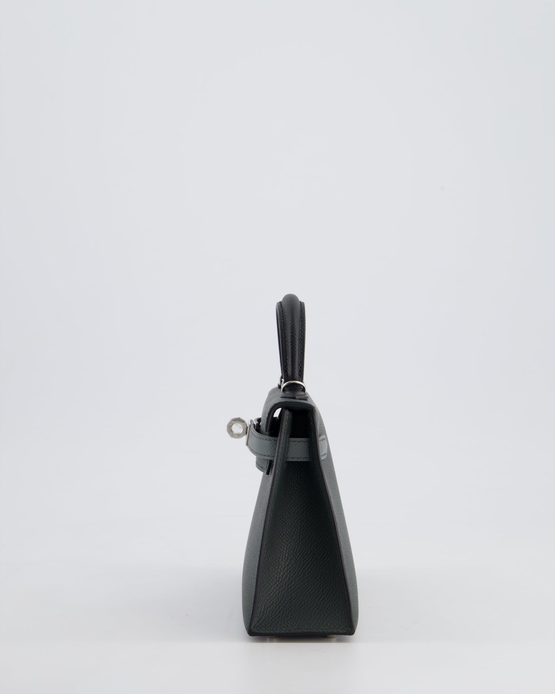 *NEW COLOUR* Hermès Mini Kelly II Tricolour 20cm Bag In Vert Mangrove, Vert Amande and Noir Epsom Leather with Palladium Hardware