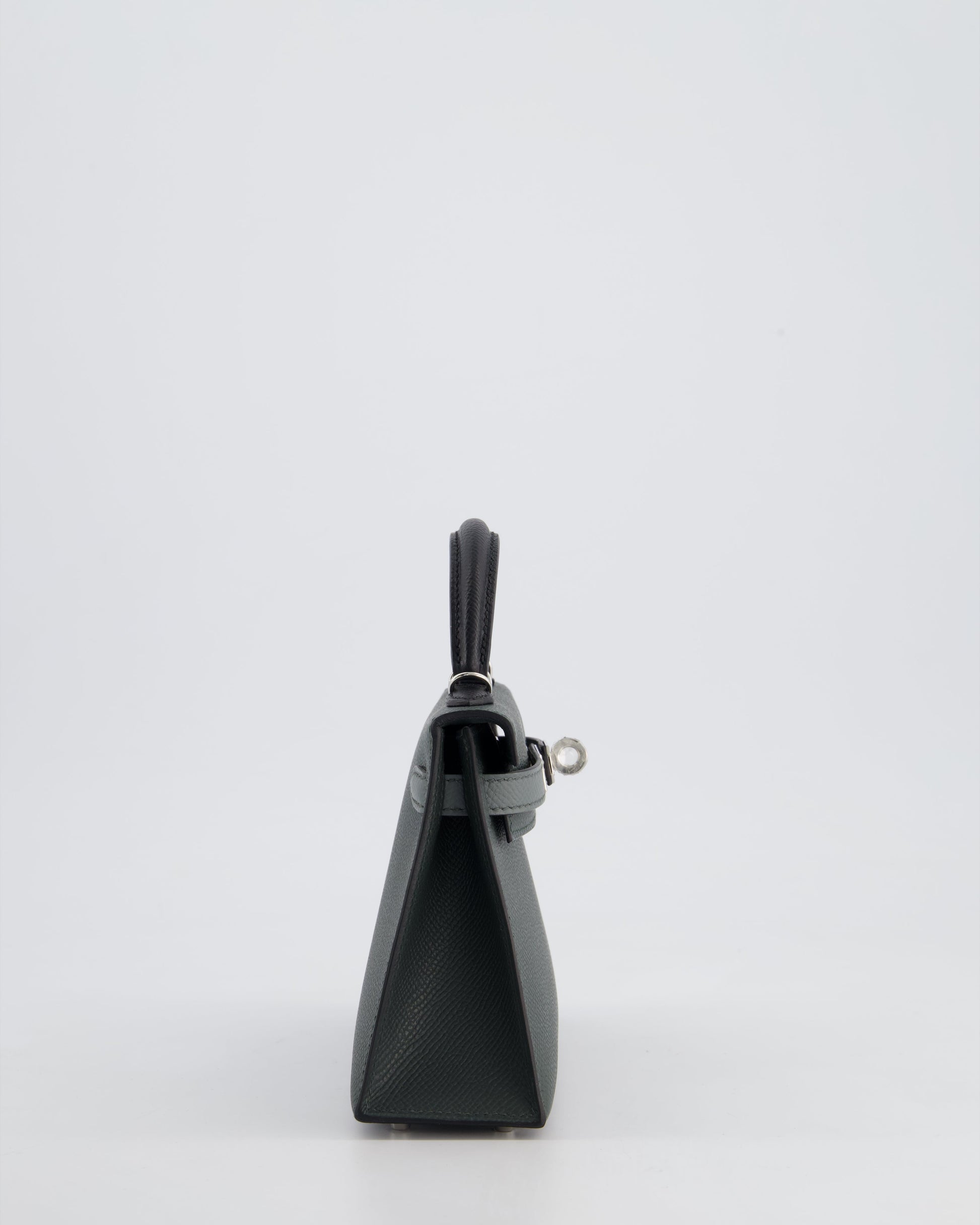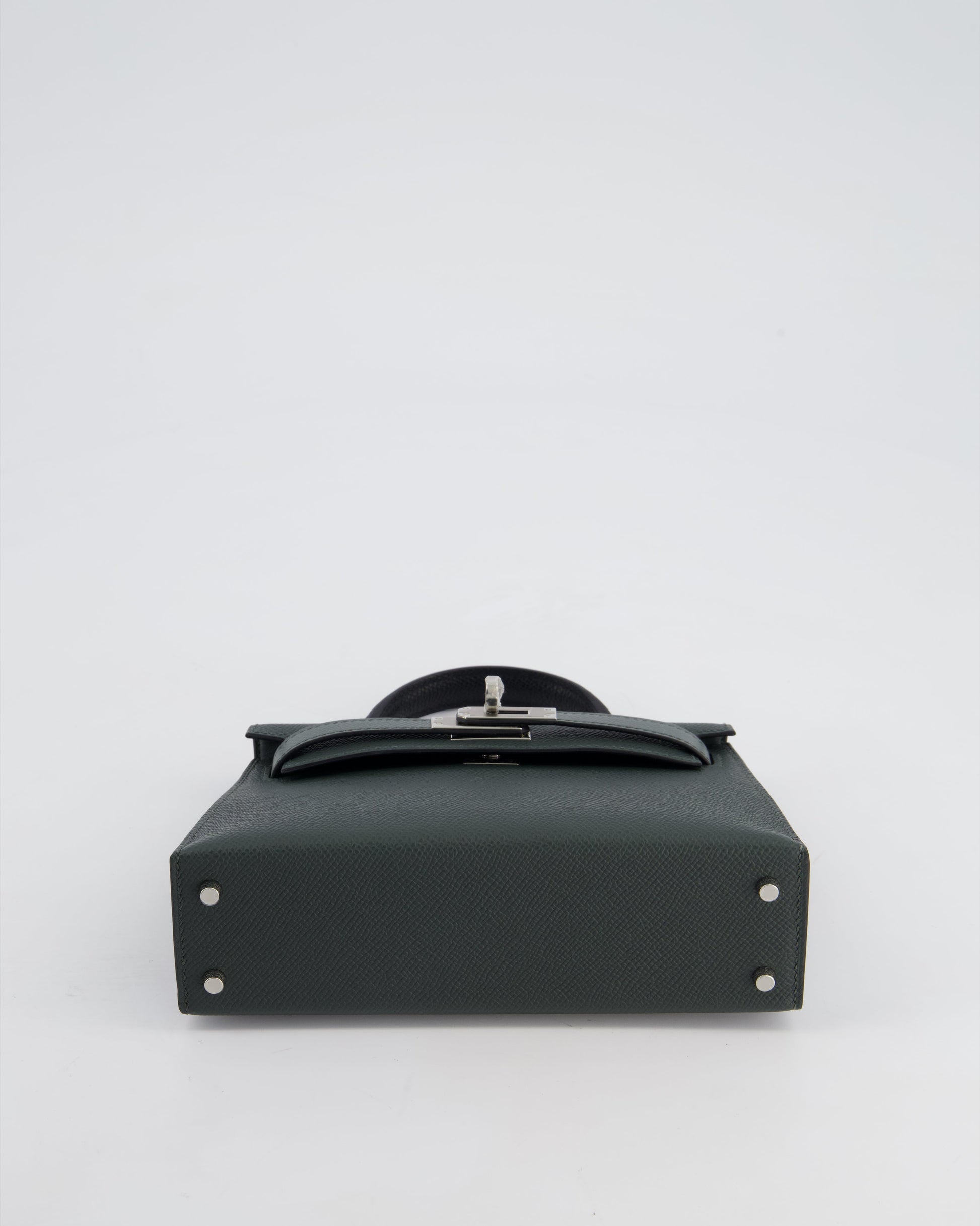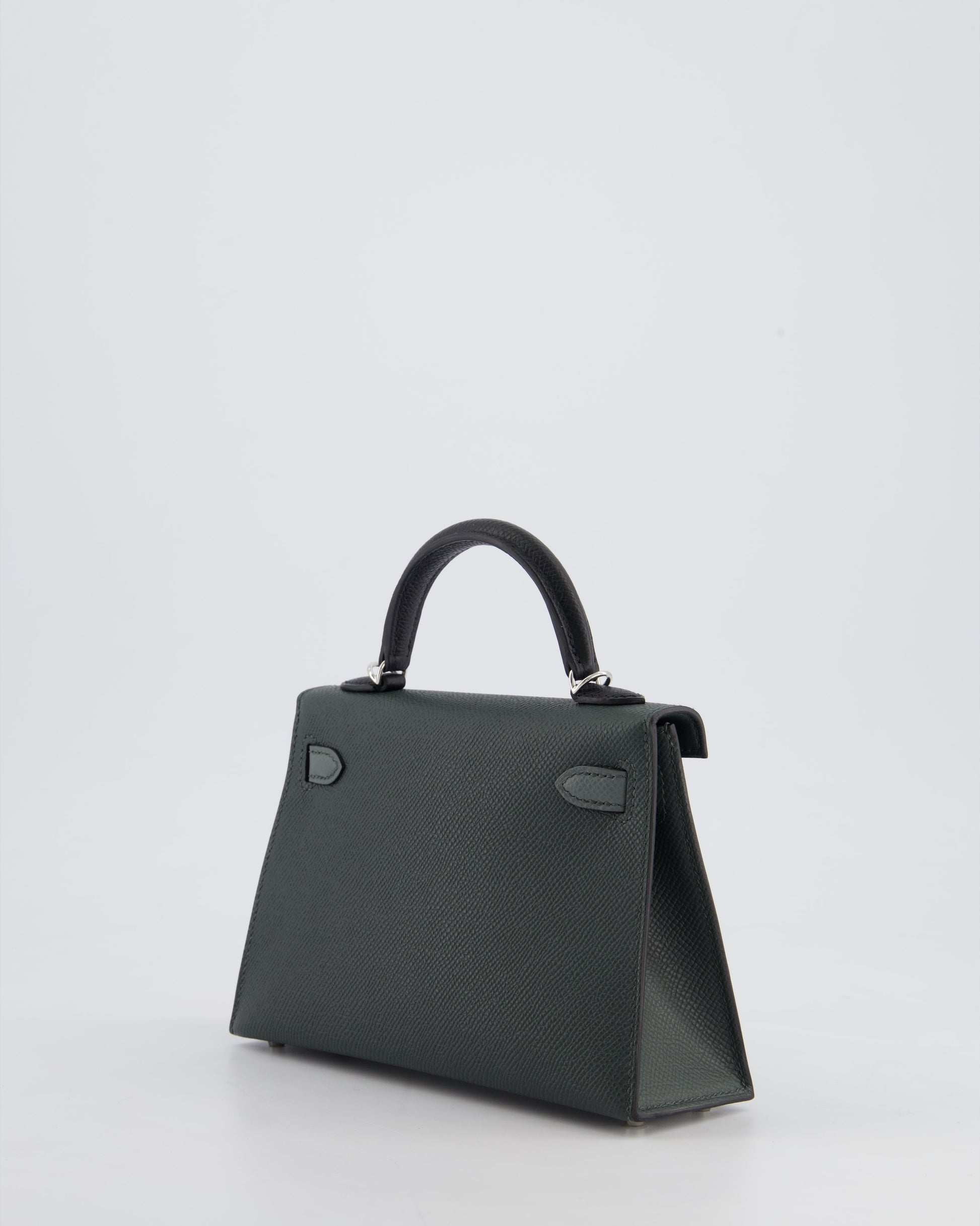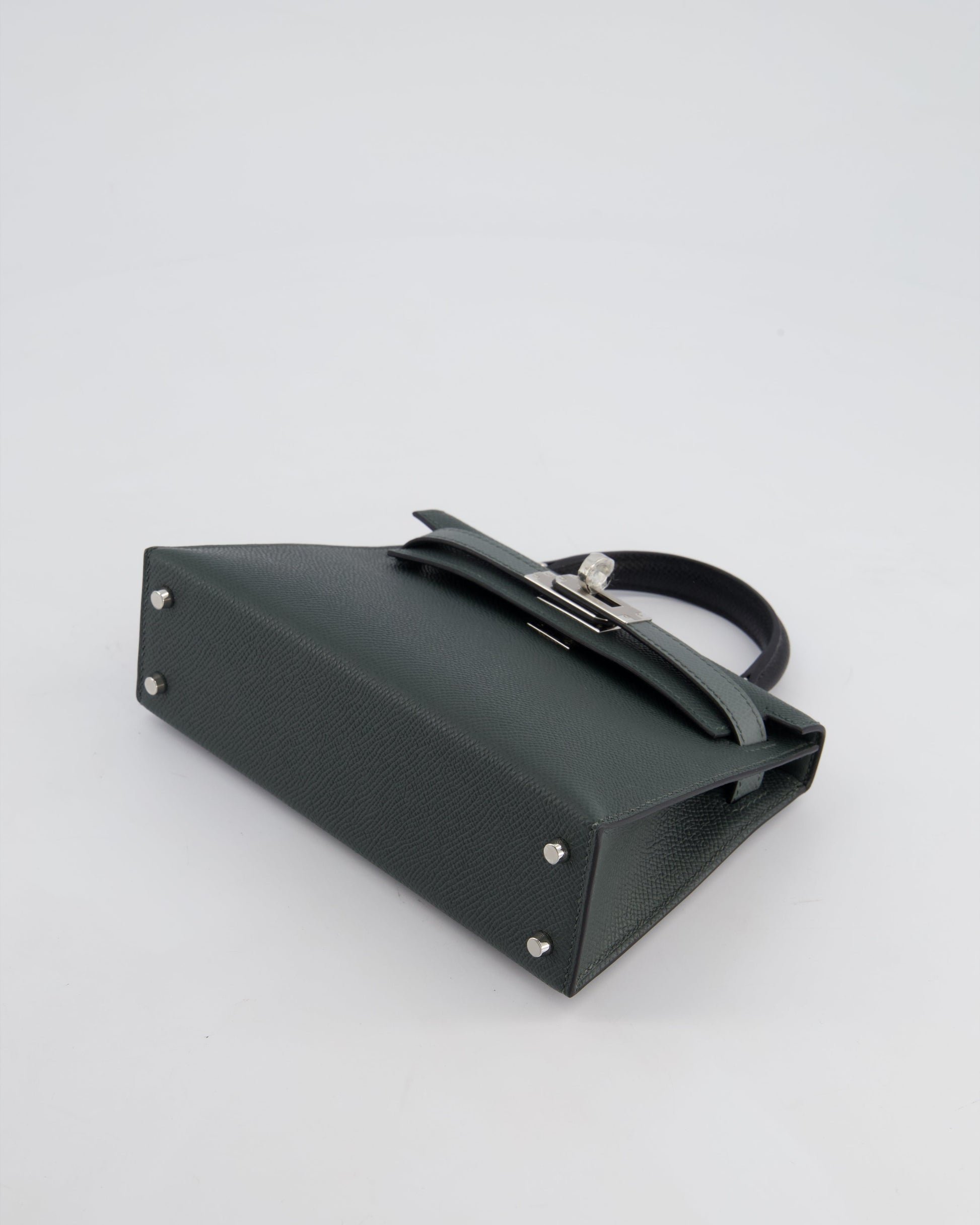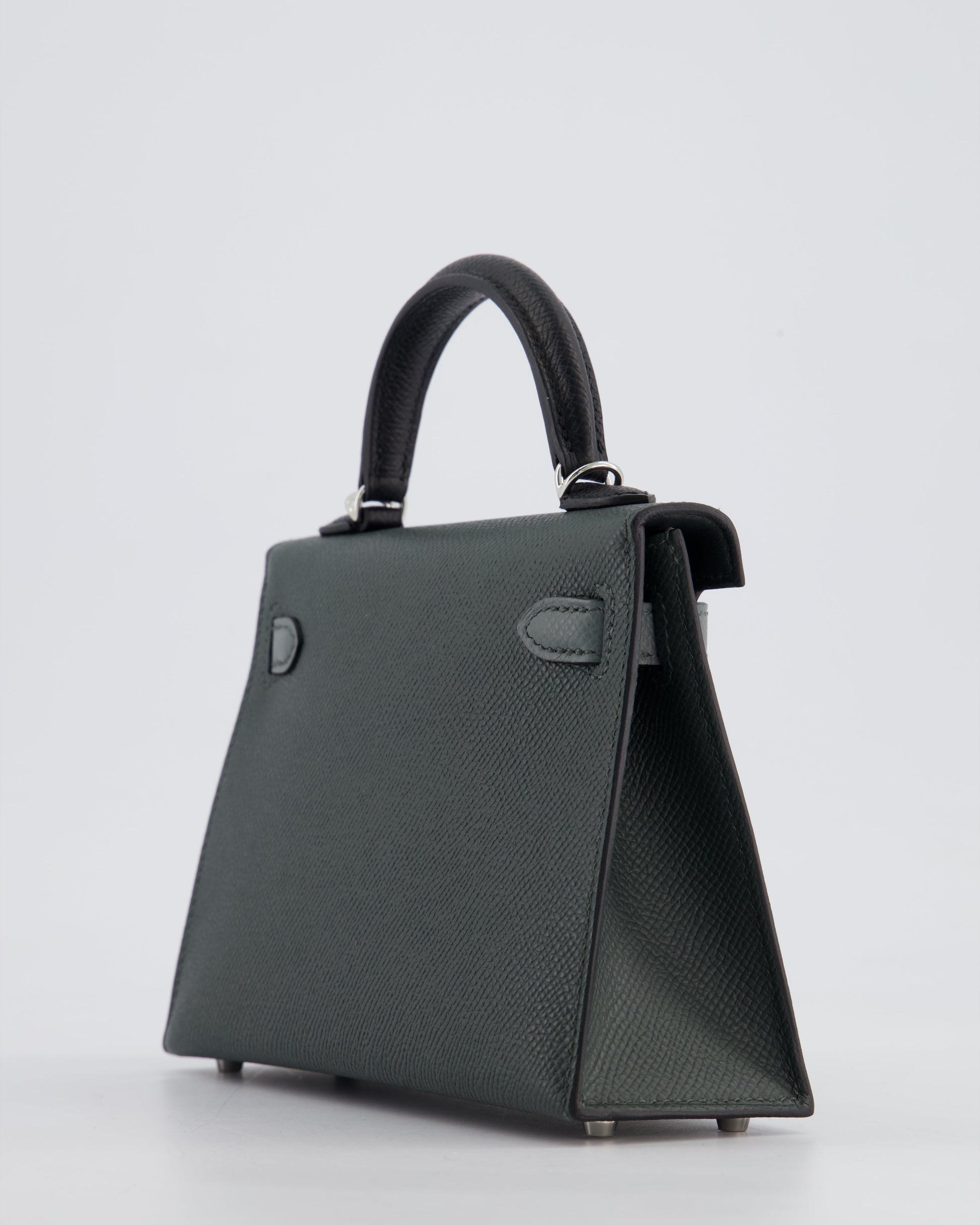 *NEW COLOUR* Hermès Mini Kelly II Tricolour 20cm Bag In Vert Mangrove, Vert Amande and Noir Epsom Leather with Palladium Hardware