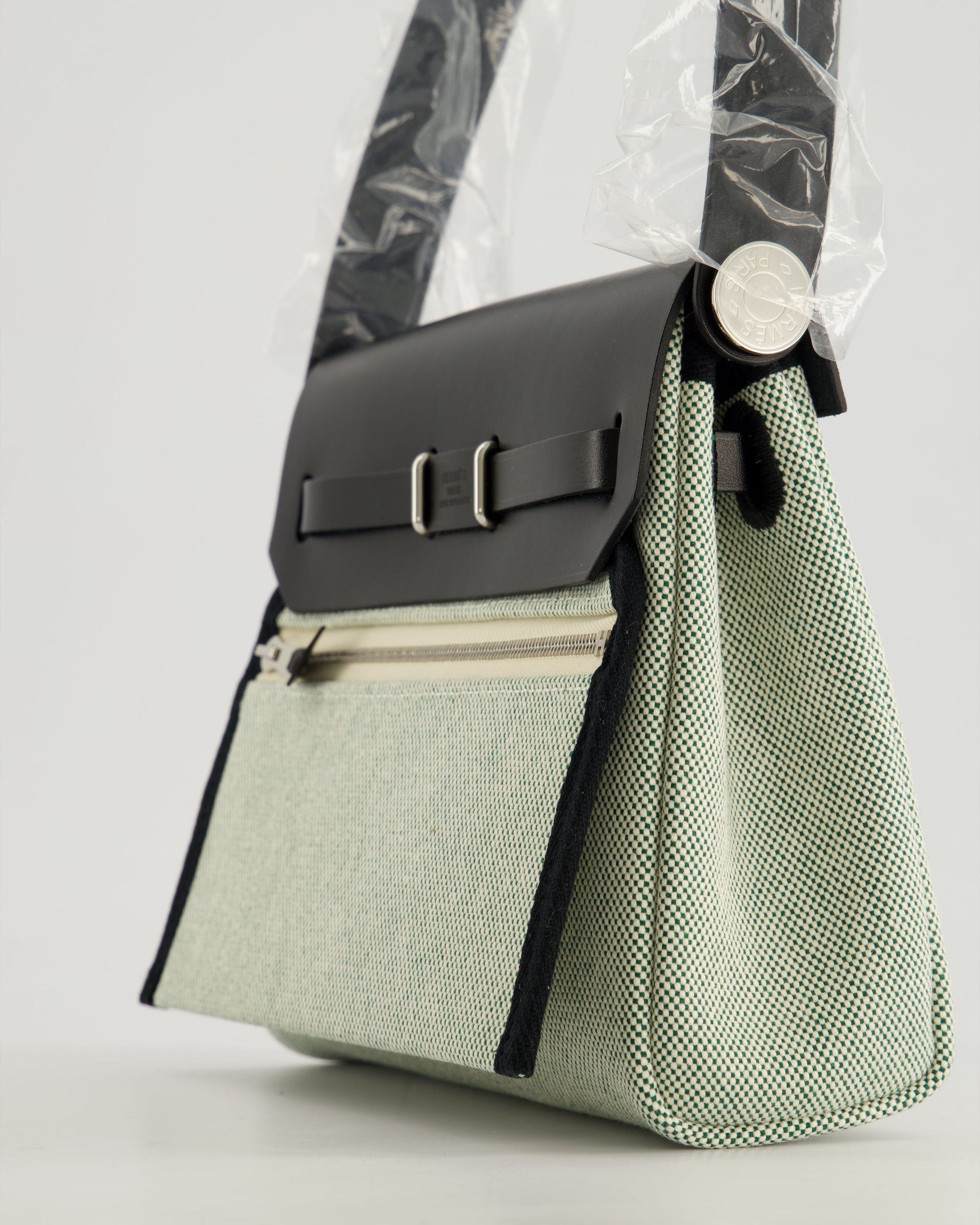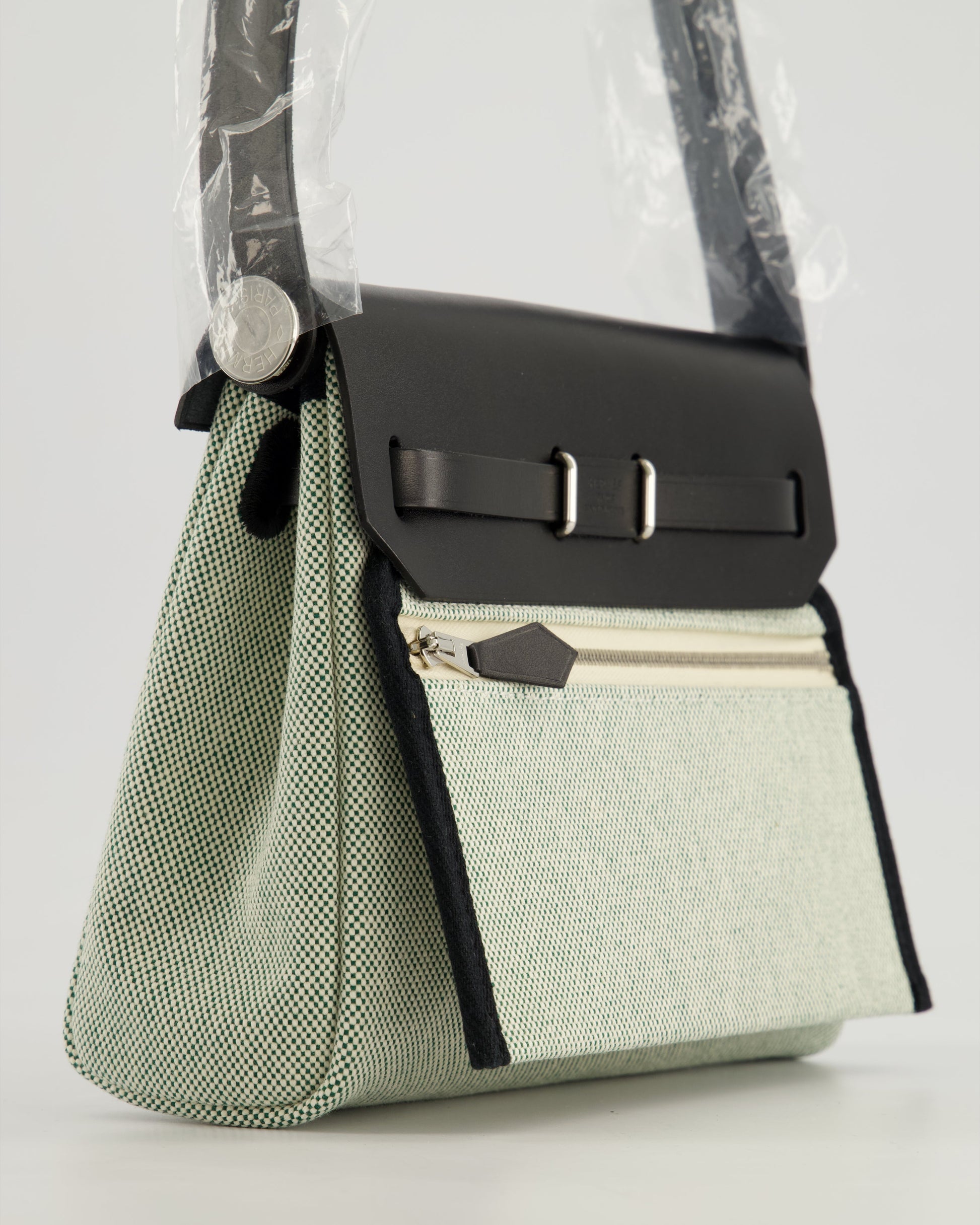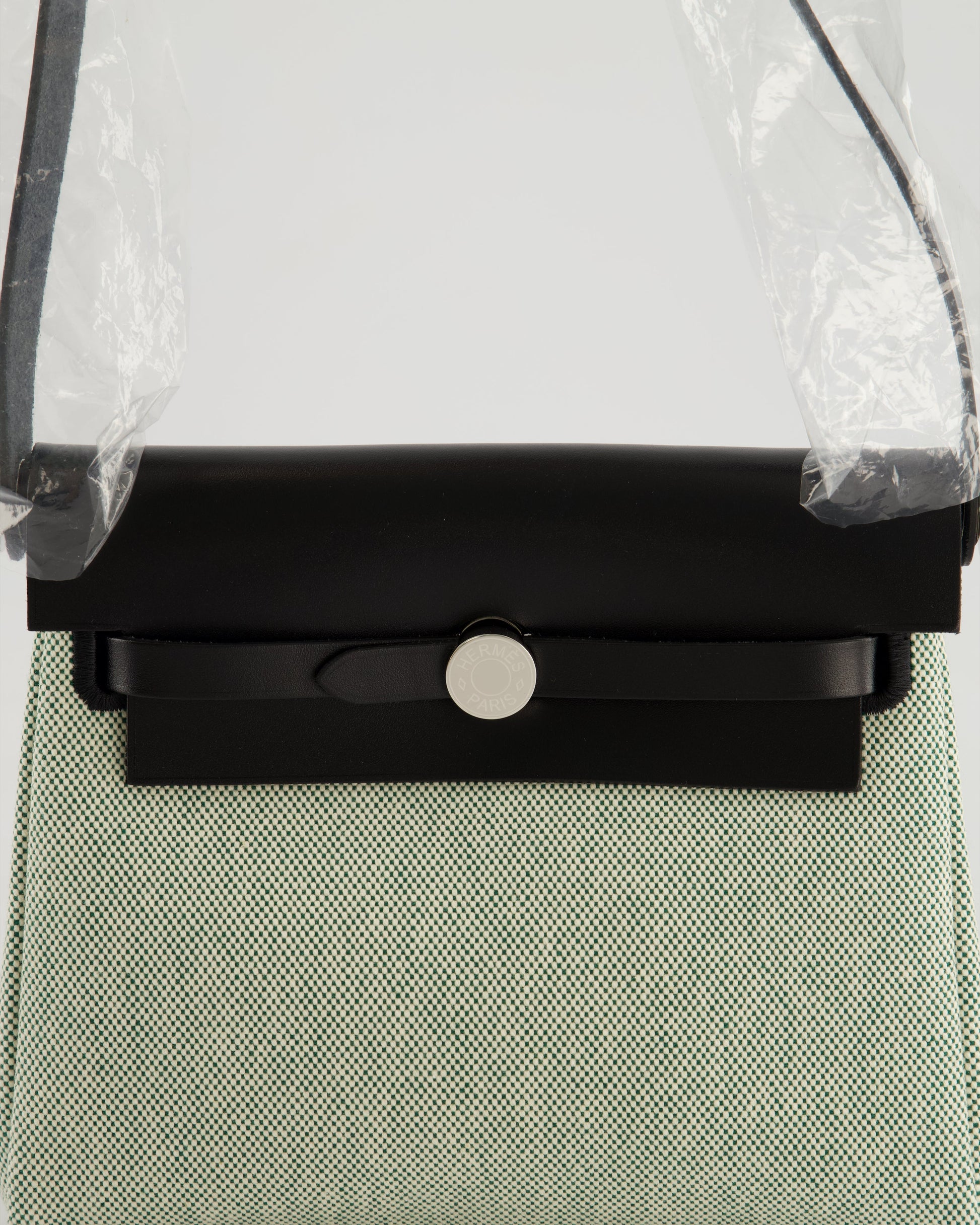 *NEW RELEASE & RARE* Hermès Herbag Zip 20 Bag in Ecru, Vert Viking Canvas & Noir Vache Hunter Leather with Palladium Hardware