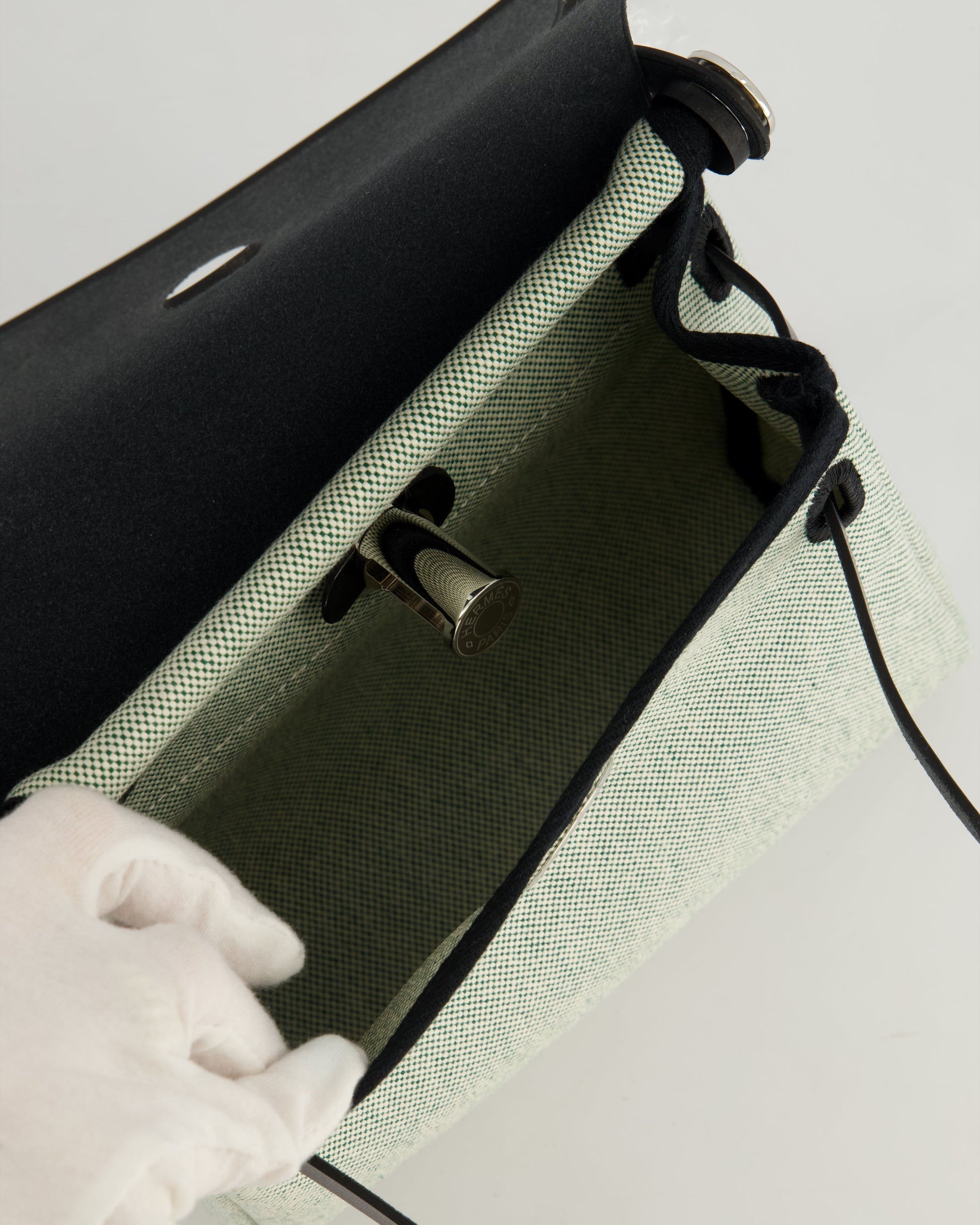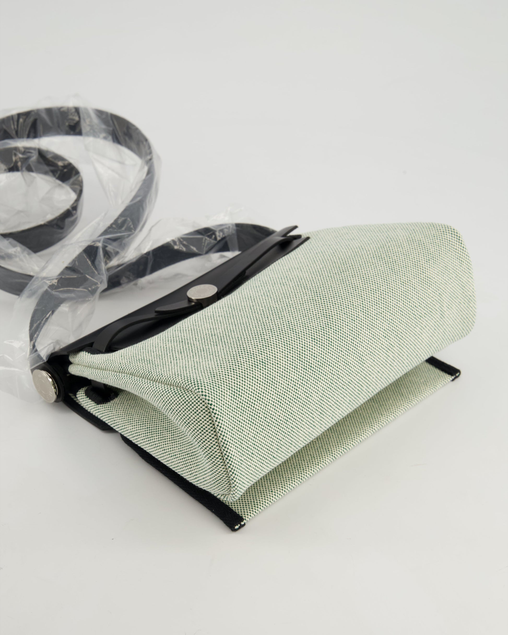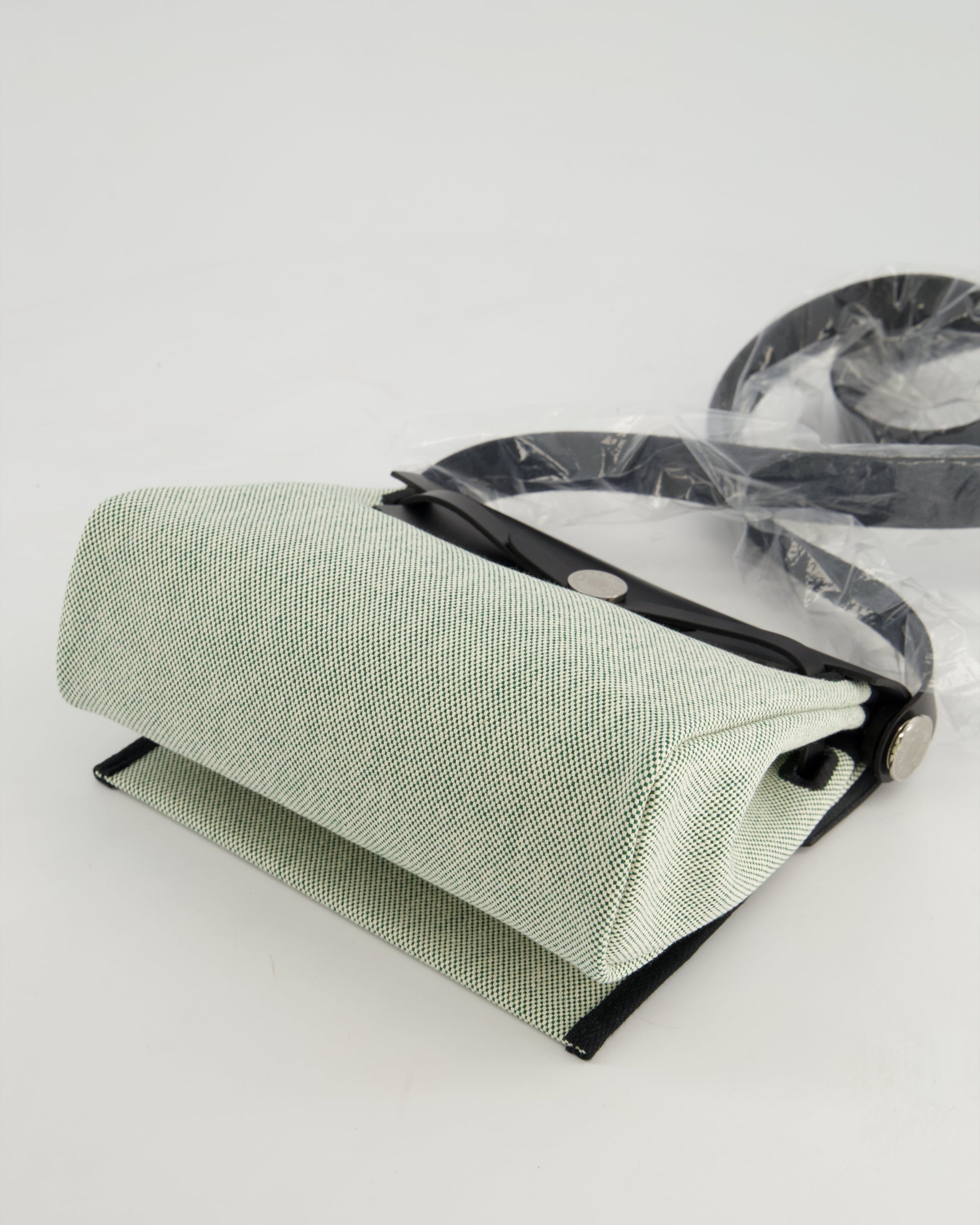 *NEW RELEASE & RARE* Hermès Herbag Zip 20 Bag in Ecru, Vert Viking Canvas & Noir Vache Hunter Leather with Palladium Hardware