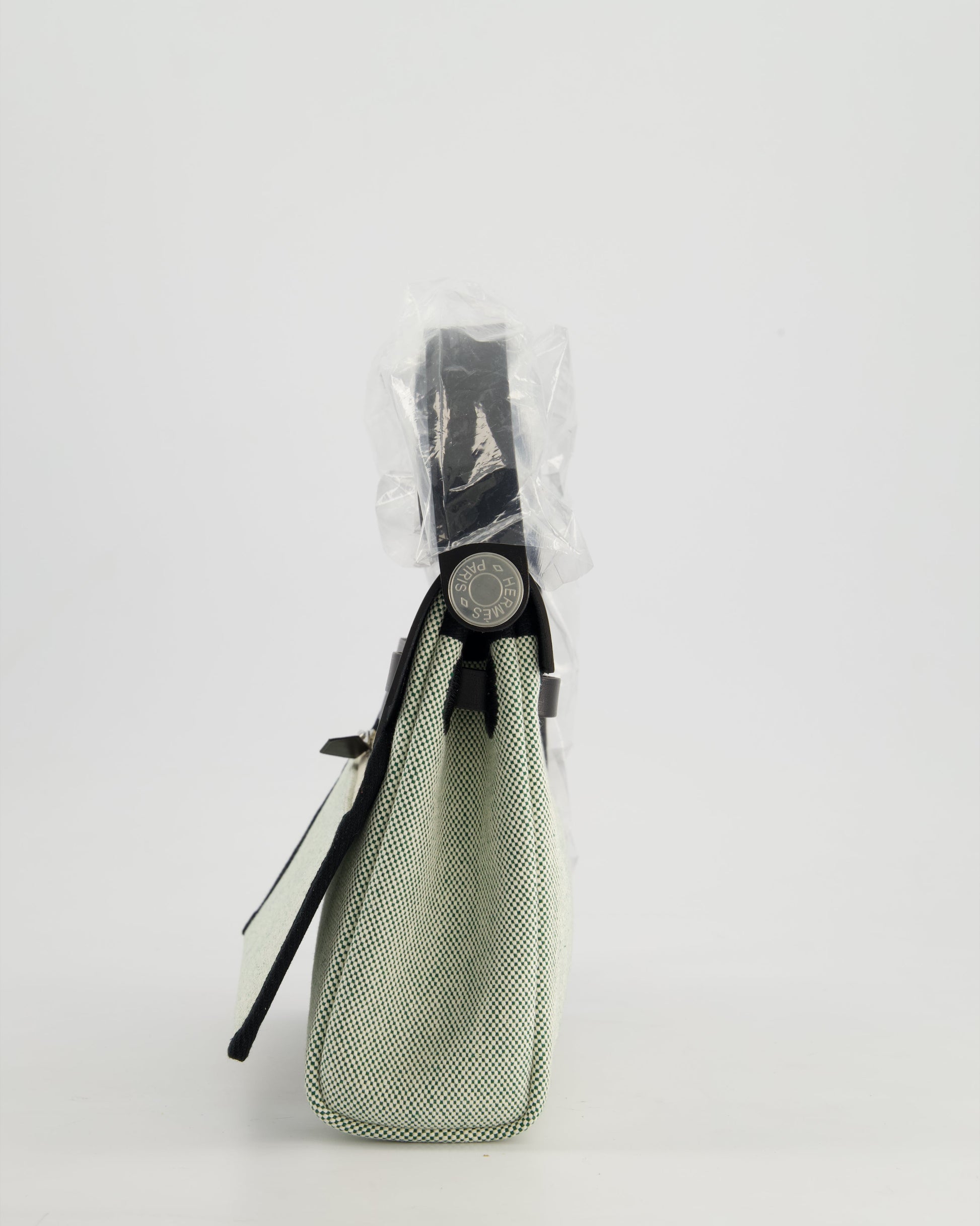 *NEW RELEASE & FIRE PRICE* Hermès Herbag Zip 20 Bag in Ecru, Vert Viking Canvas & Noir Vache Hunter Leather with Palladium Hardware