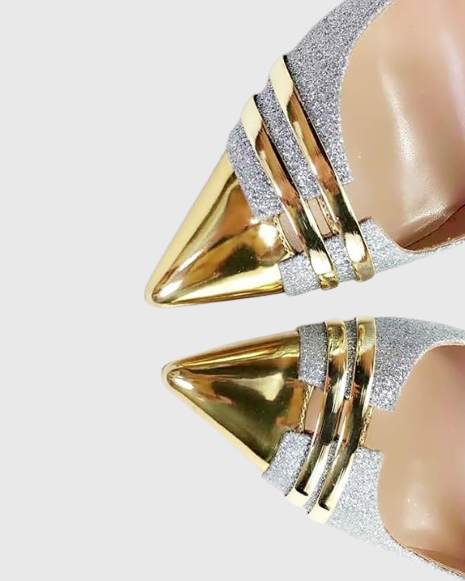 Elevate your style with our Nia Sparkle Metal Toe Pumps! These sleek pumps feature a touch of glamour with their metal toe detailing. Perfect for a night out or a special occasion, these pumps will make you stand out and feel confident. Step up your shoe game with Nia Sparkle!