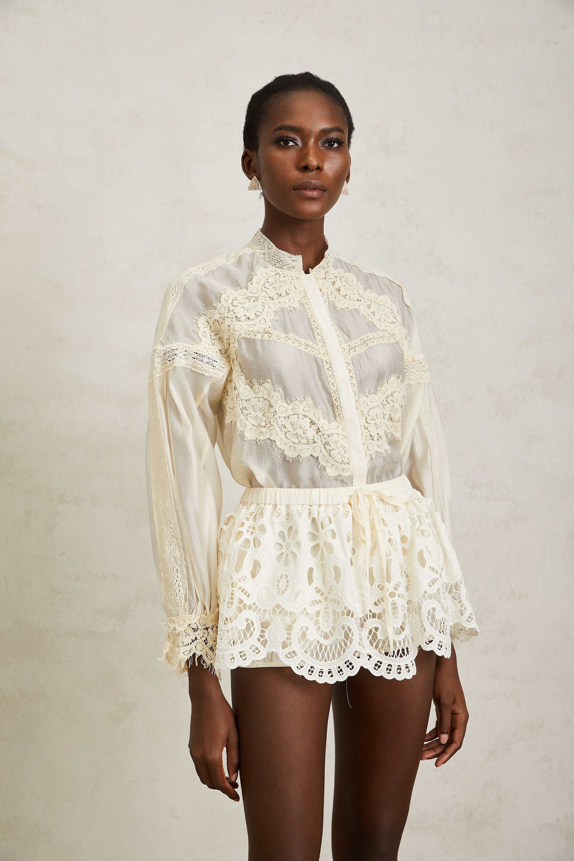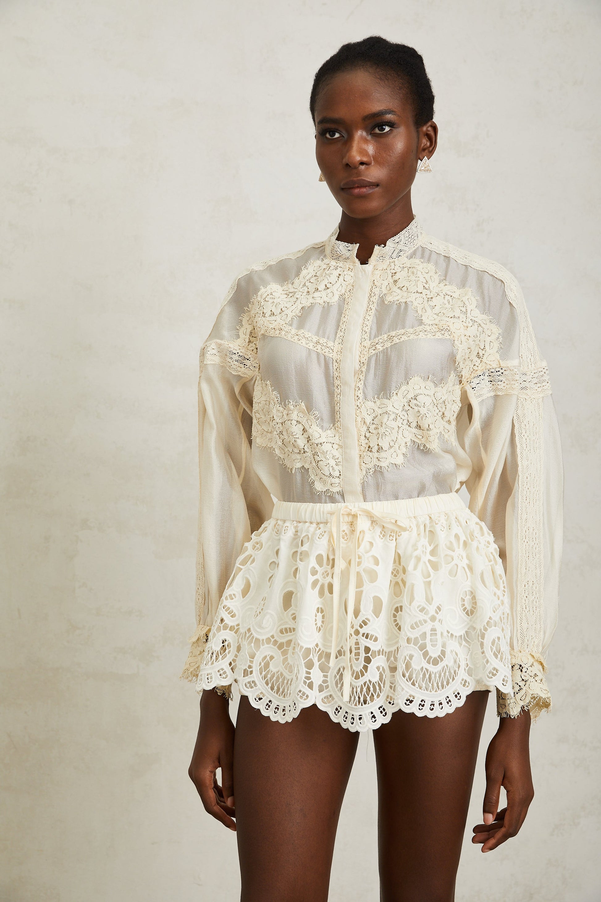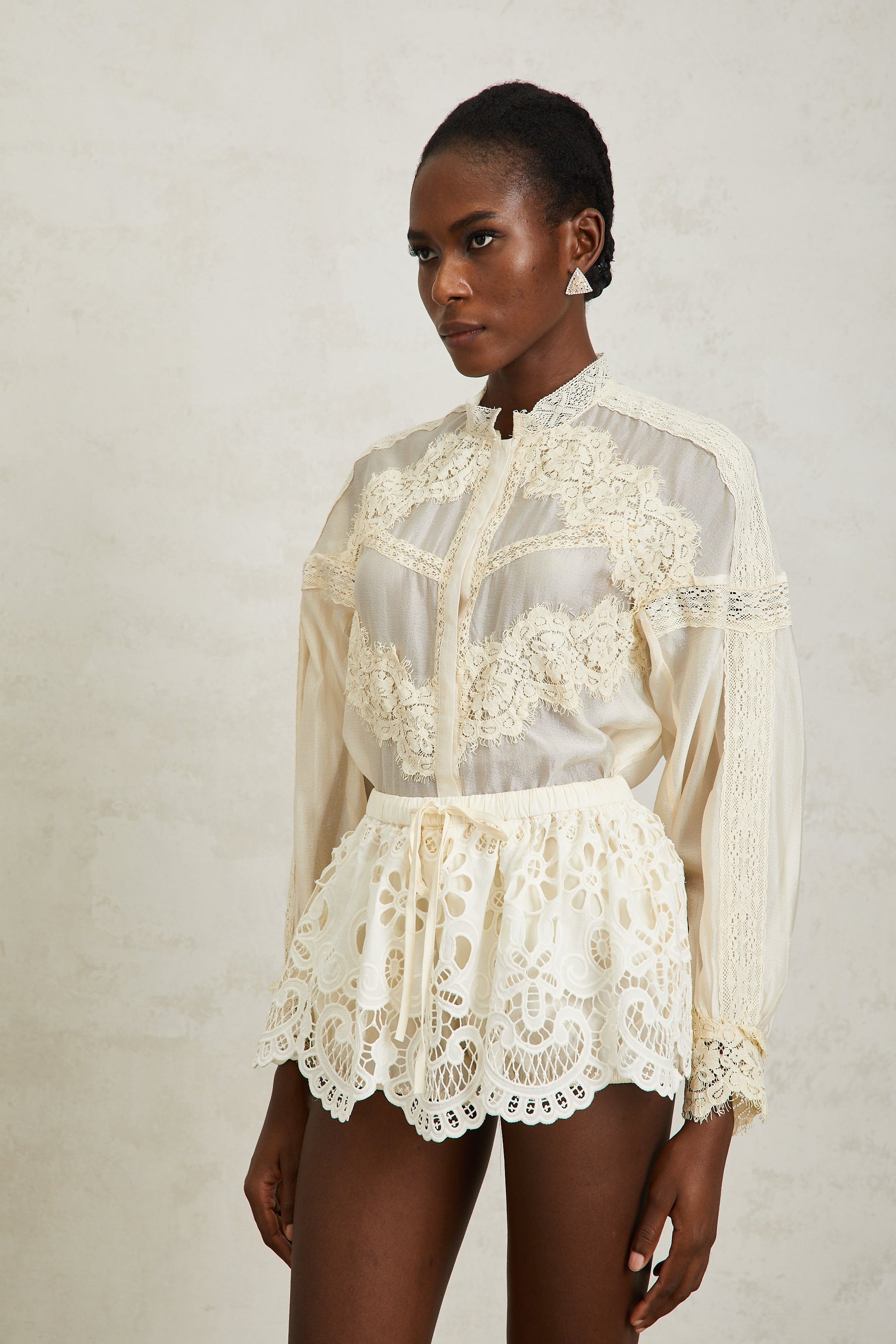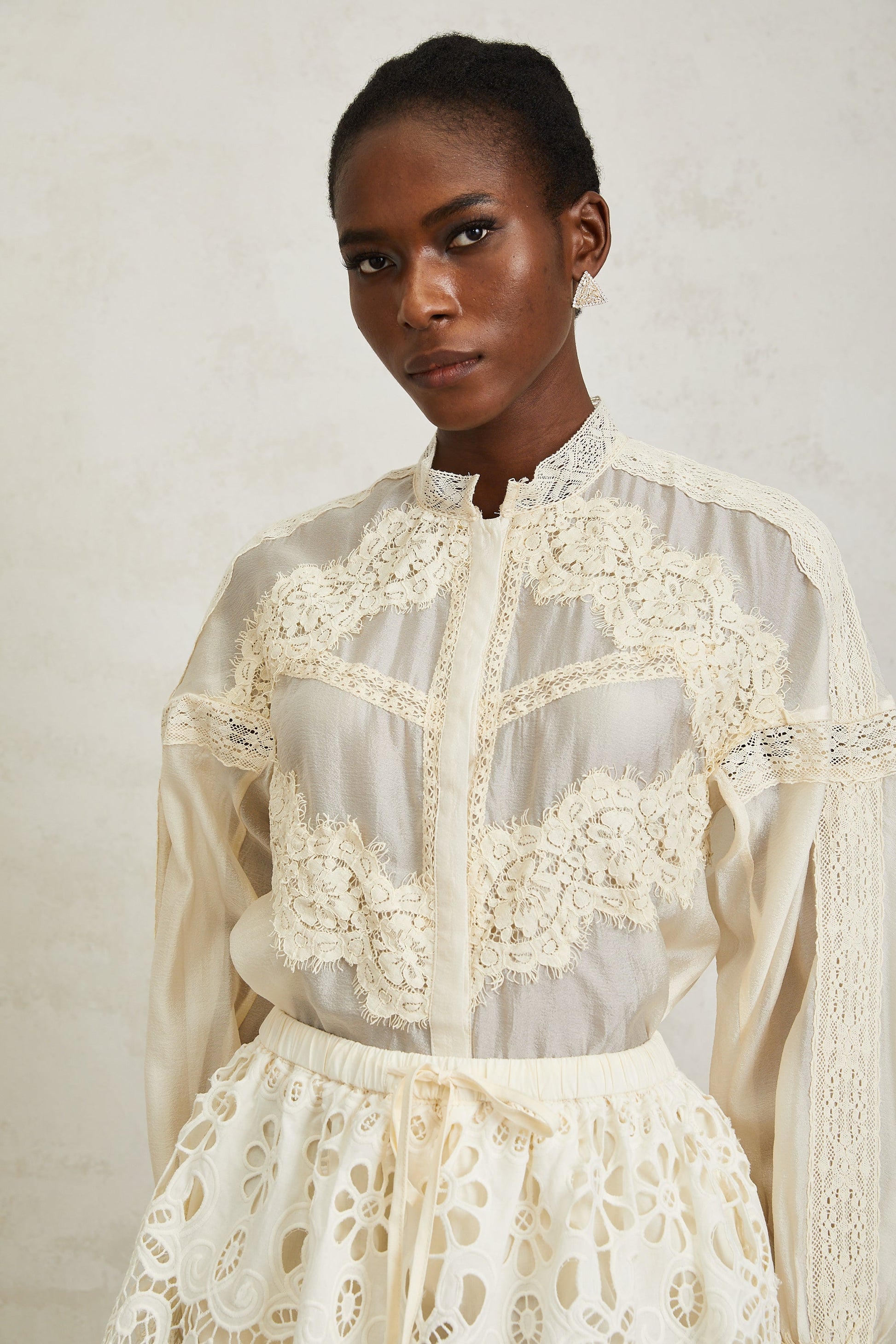 Noa Neutral Floral Lace Blouse & Skirt Set
