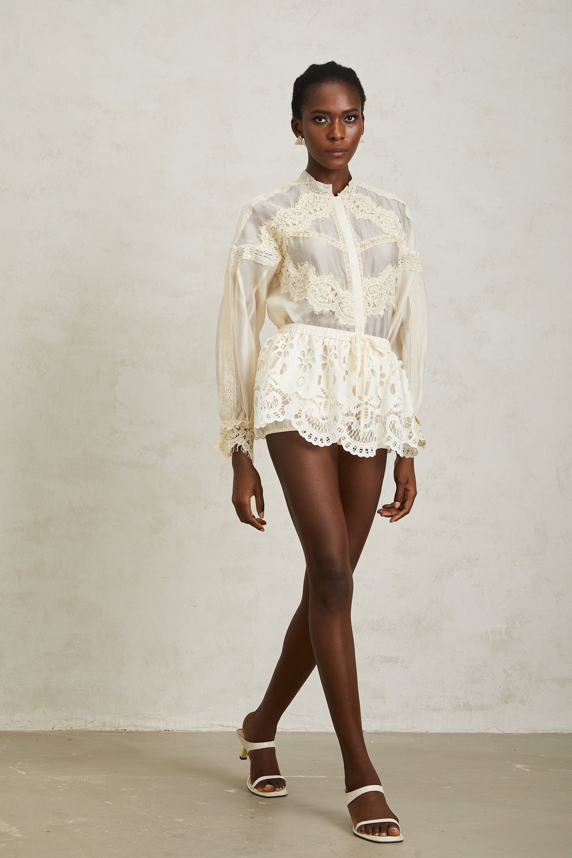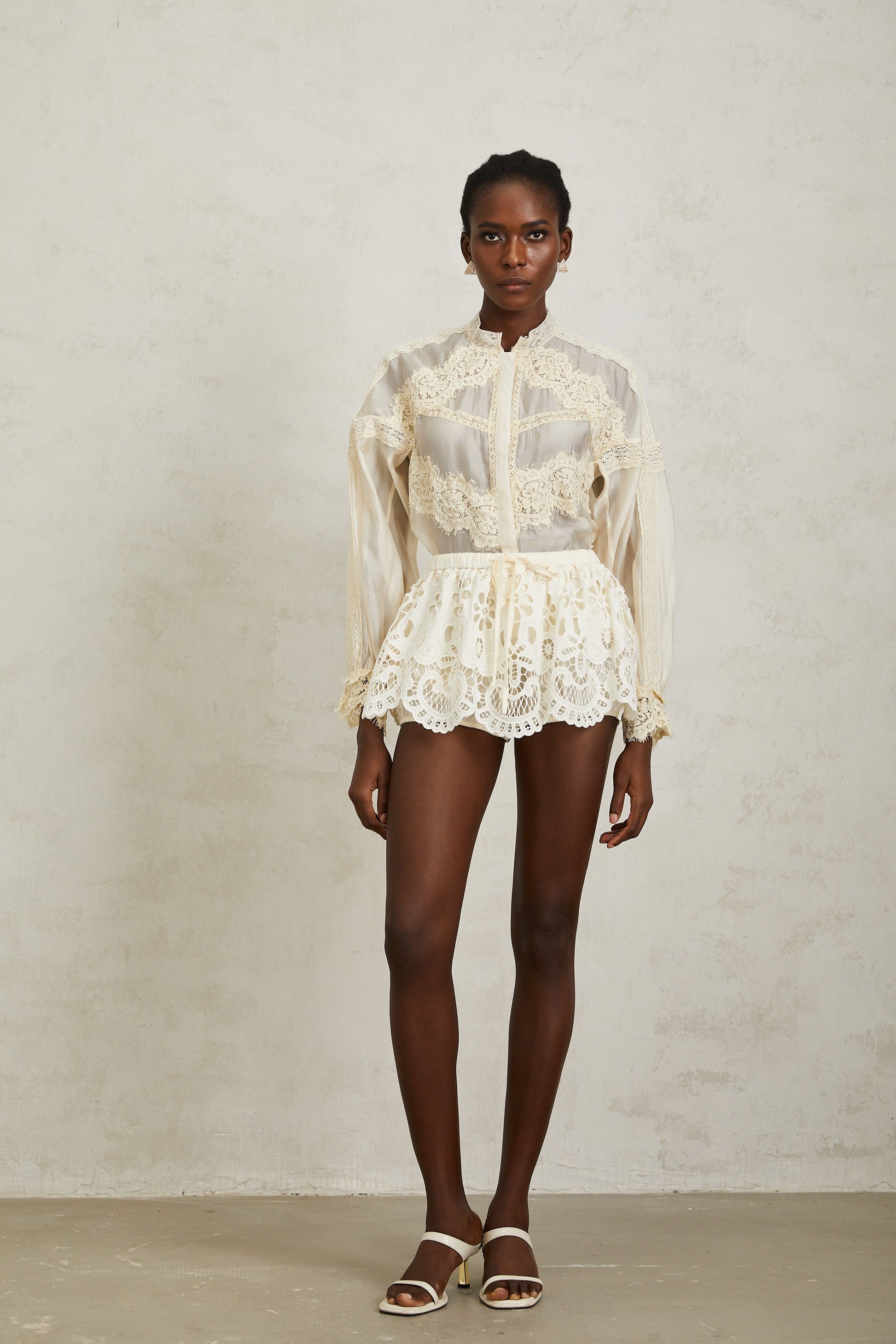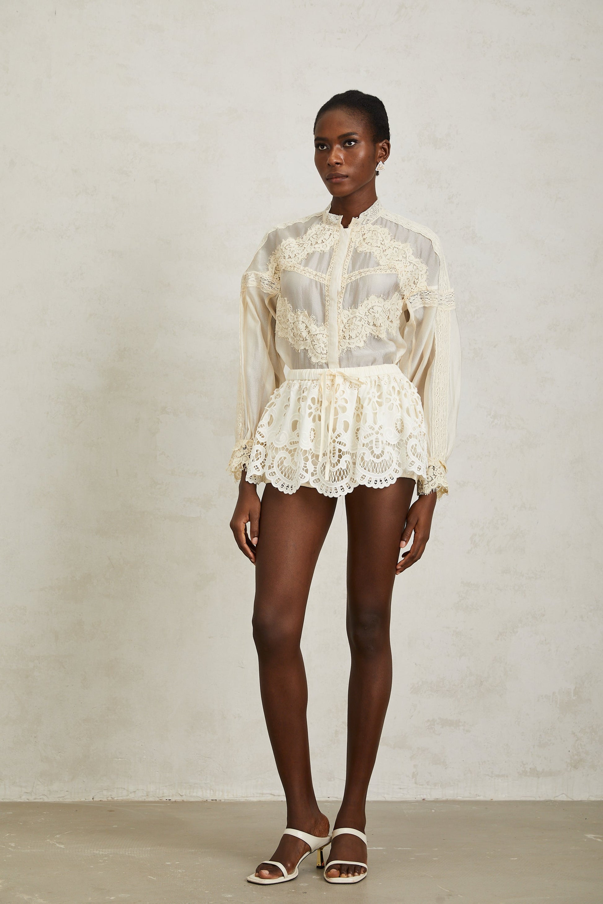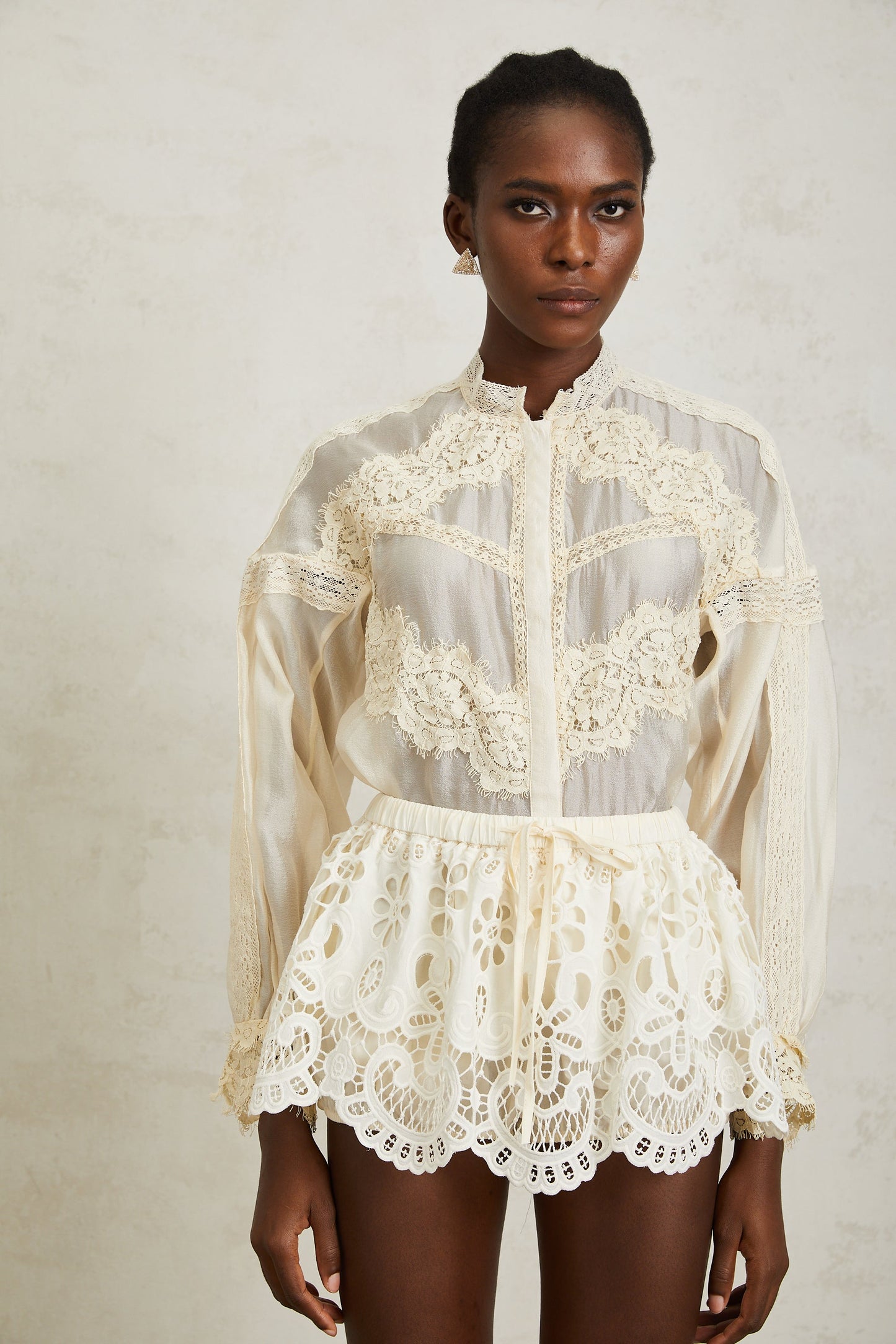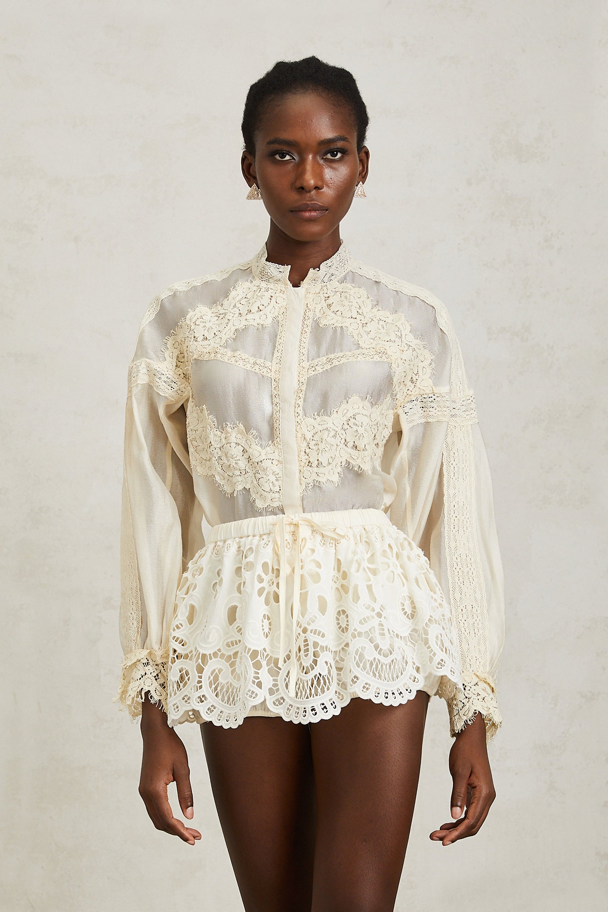 Noa Neutral Floral Lace Blouse & Skirt Set