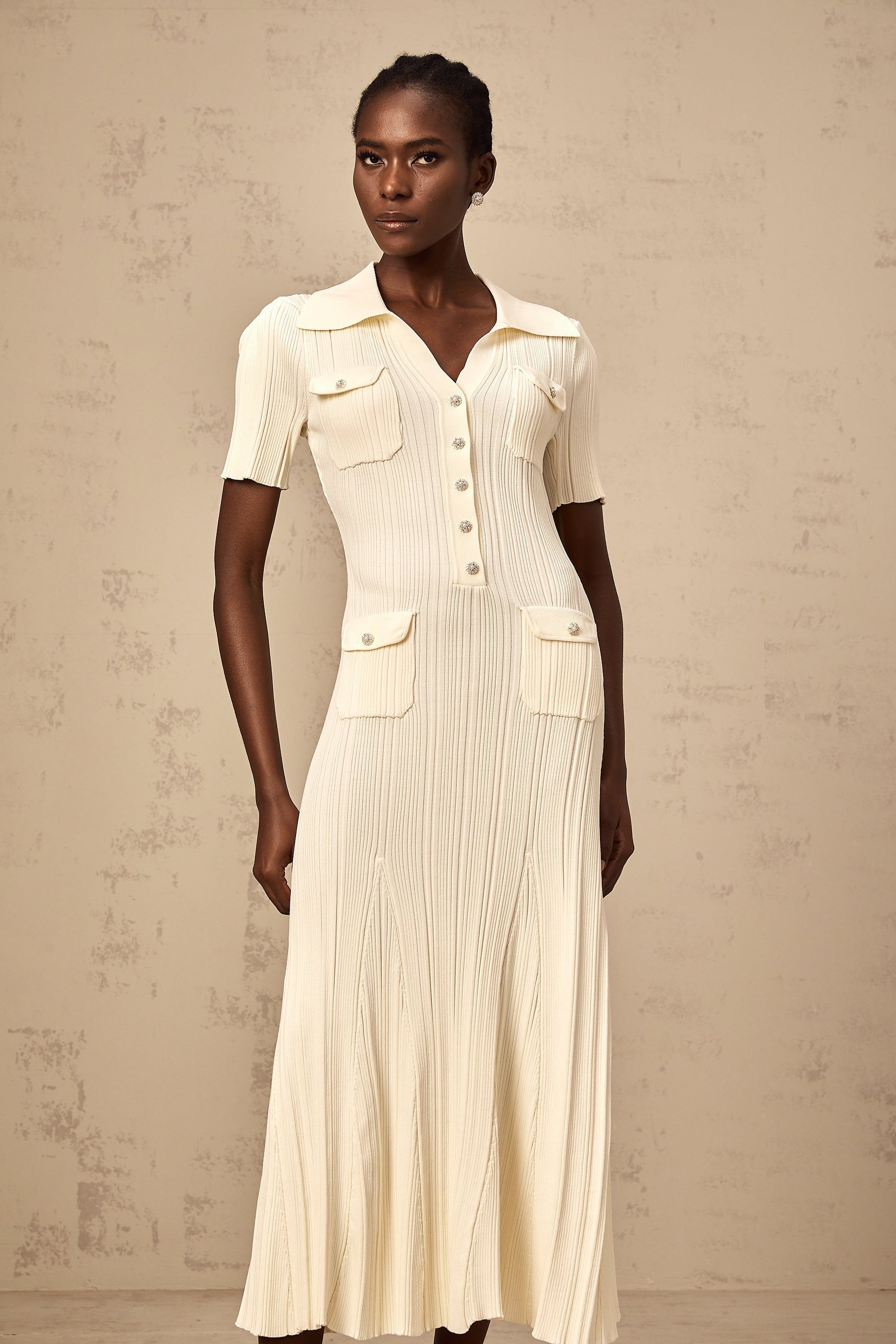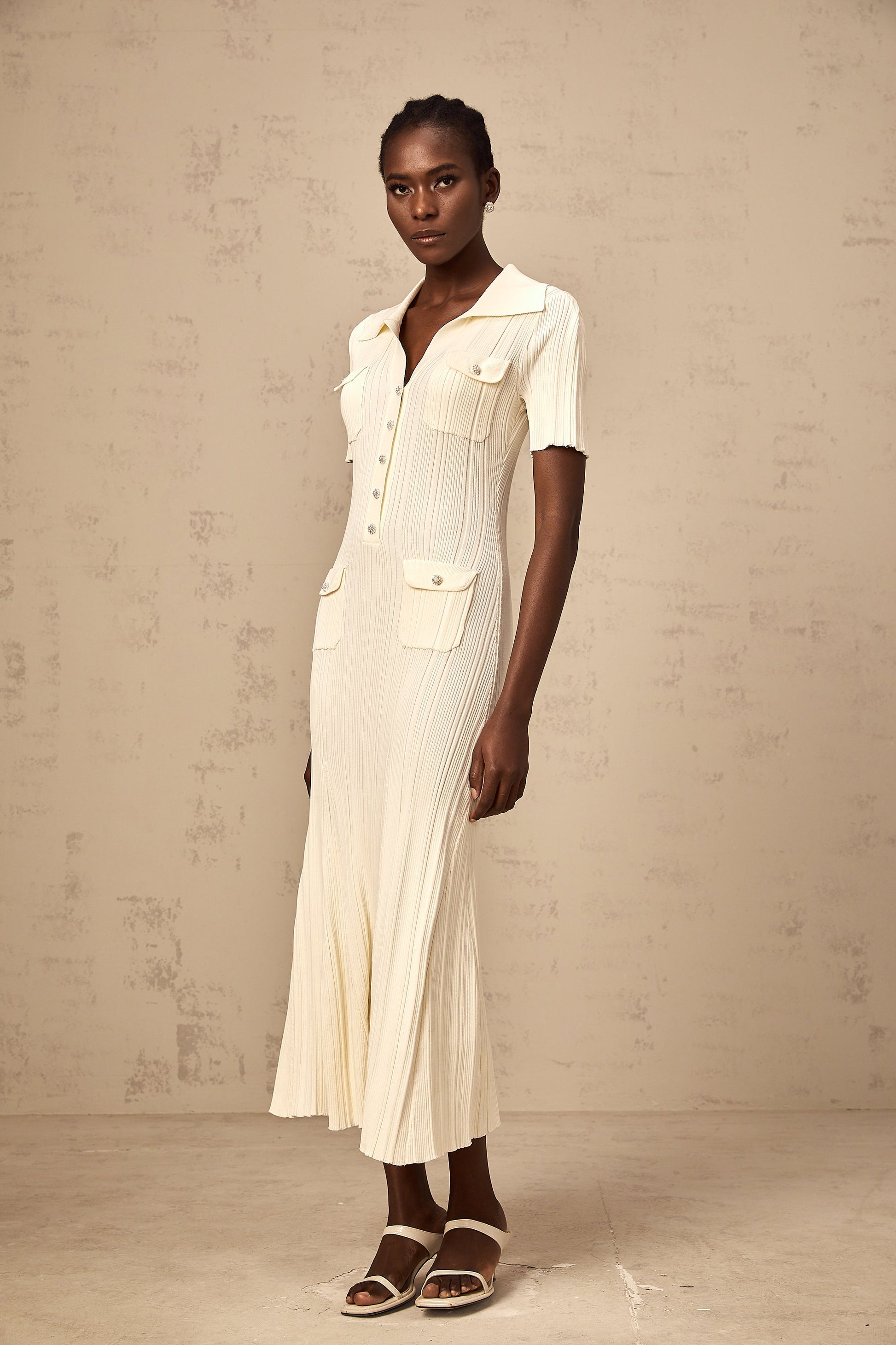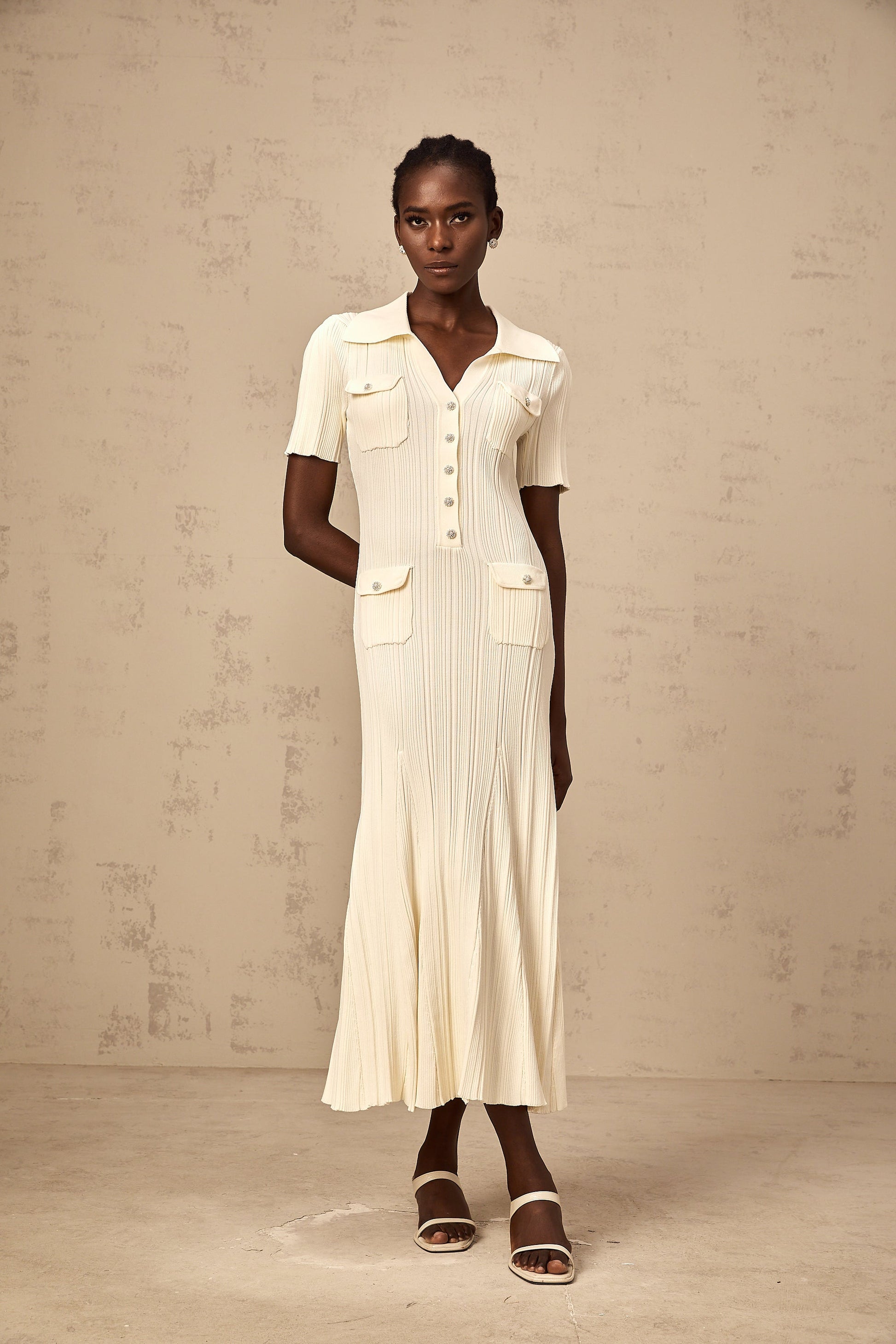 Nouria neutrals ribbed-knit midi dress