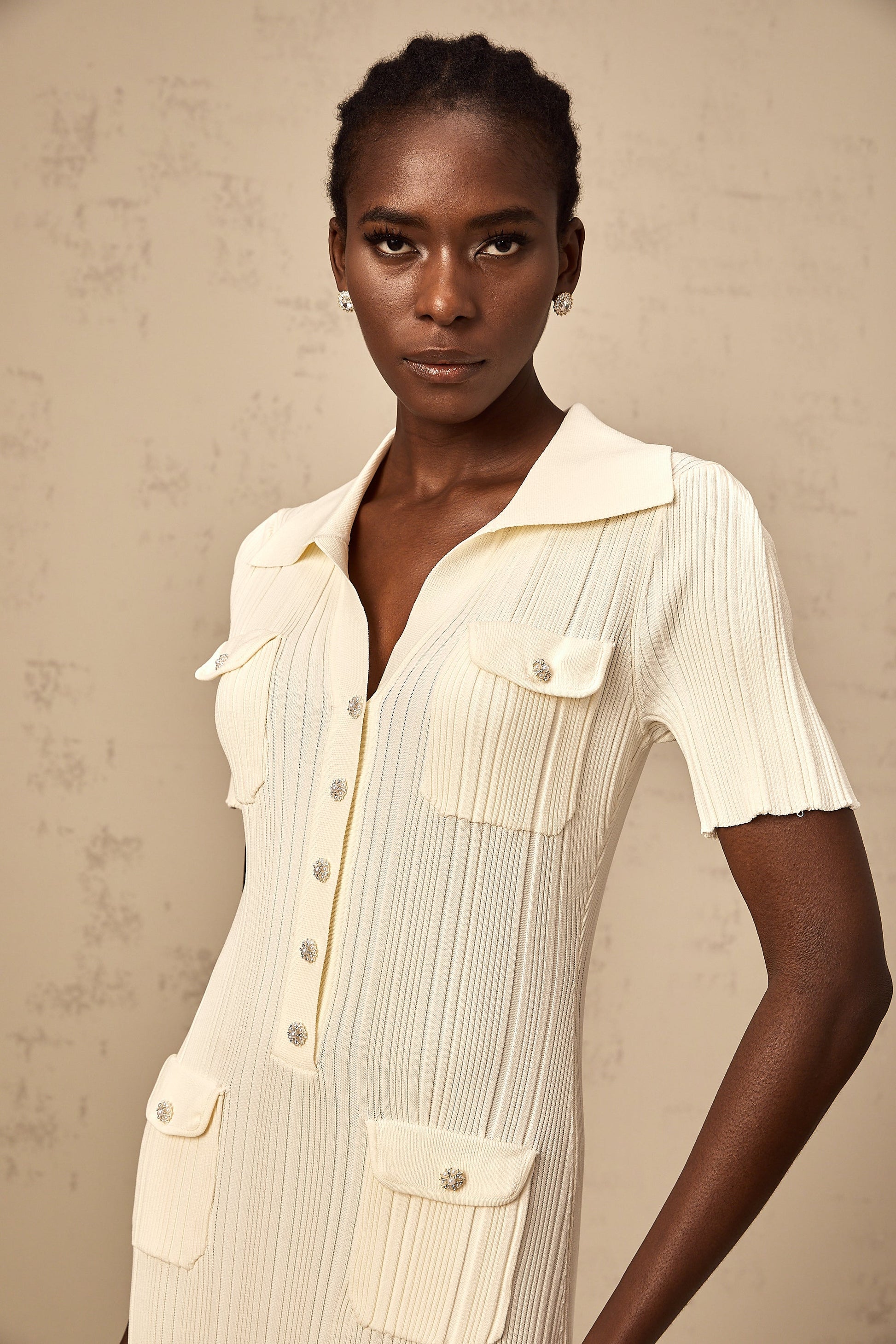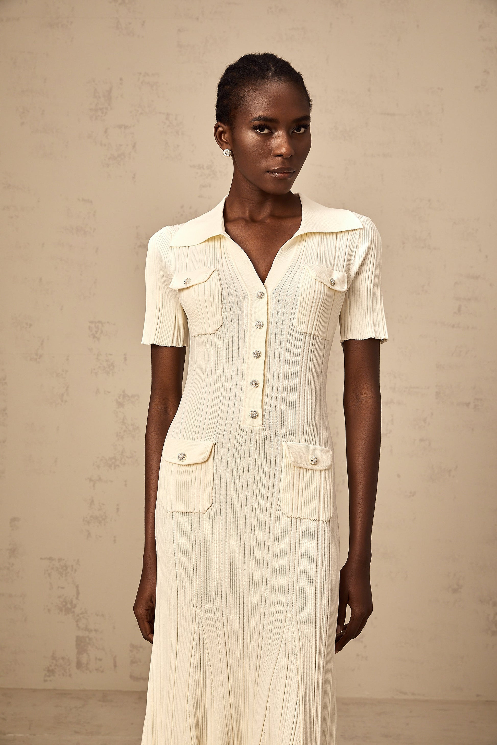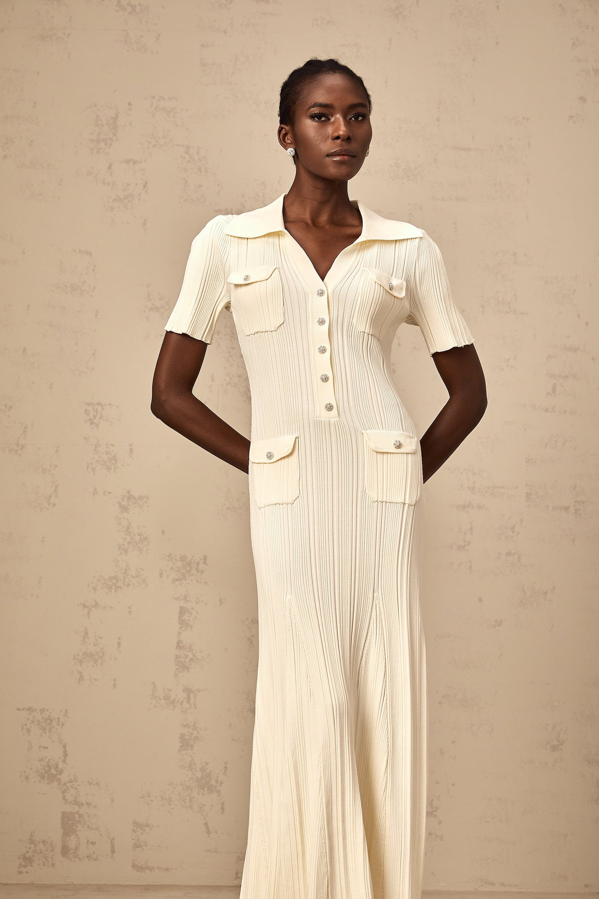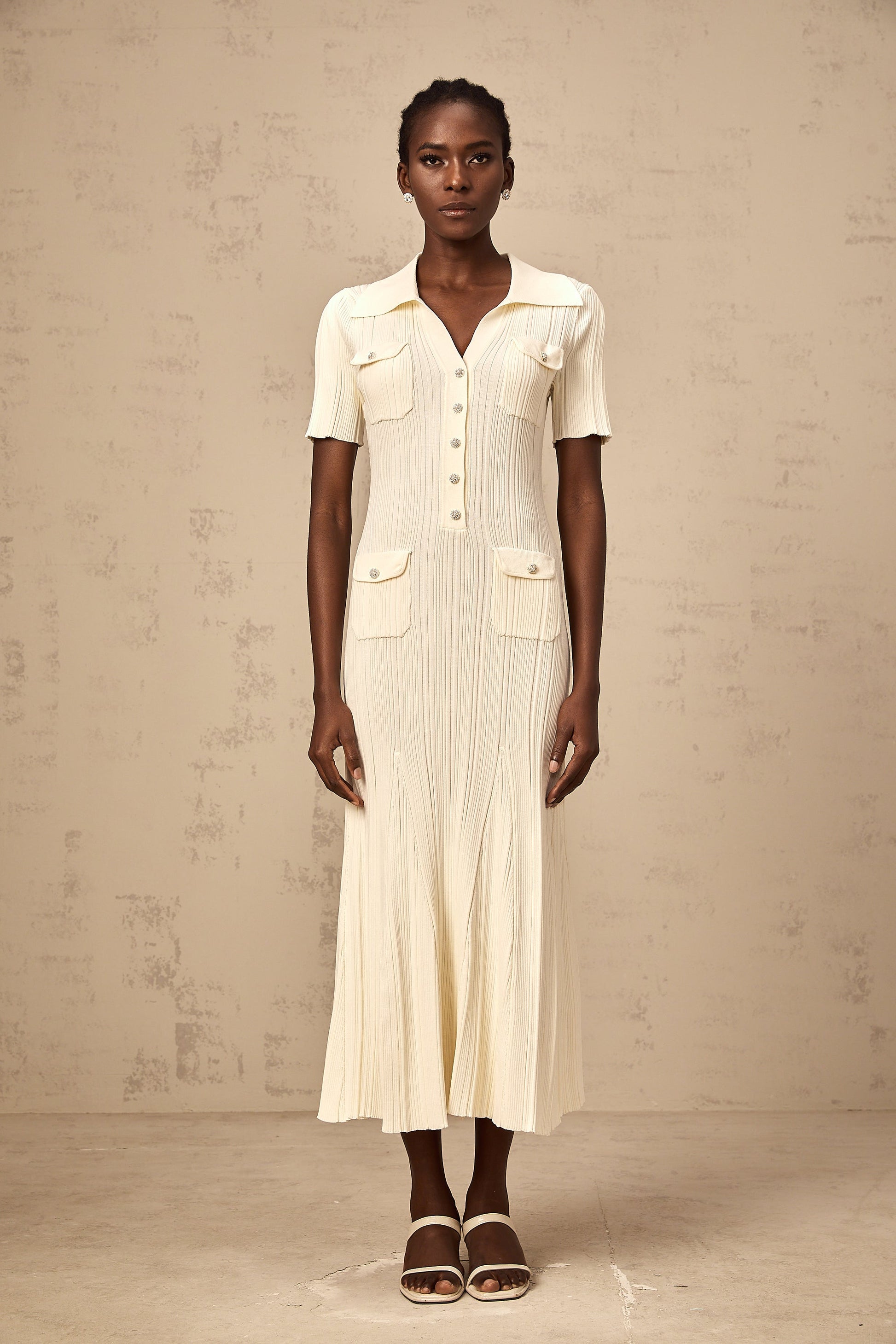Nouria neutrals ribbed-knit midi dress