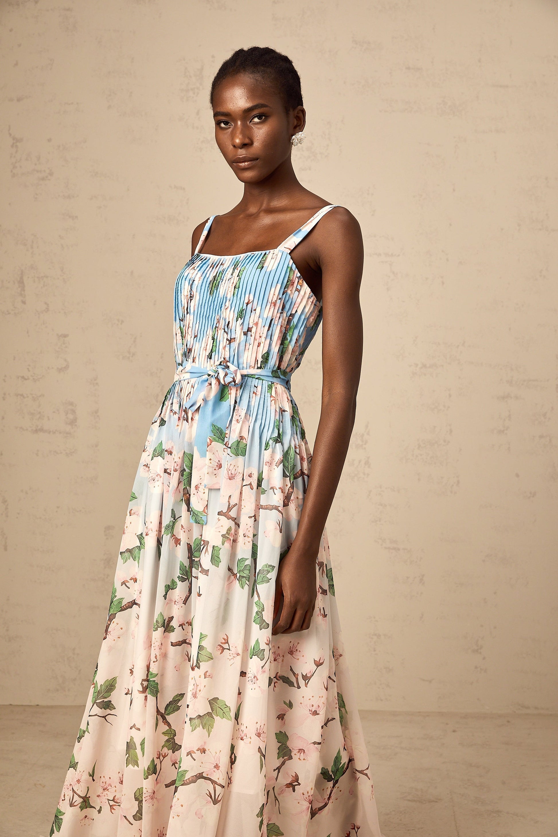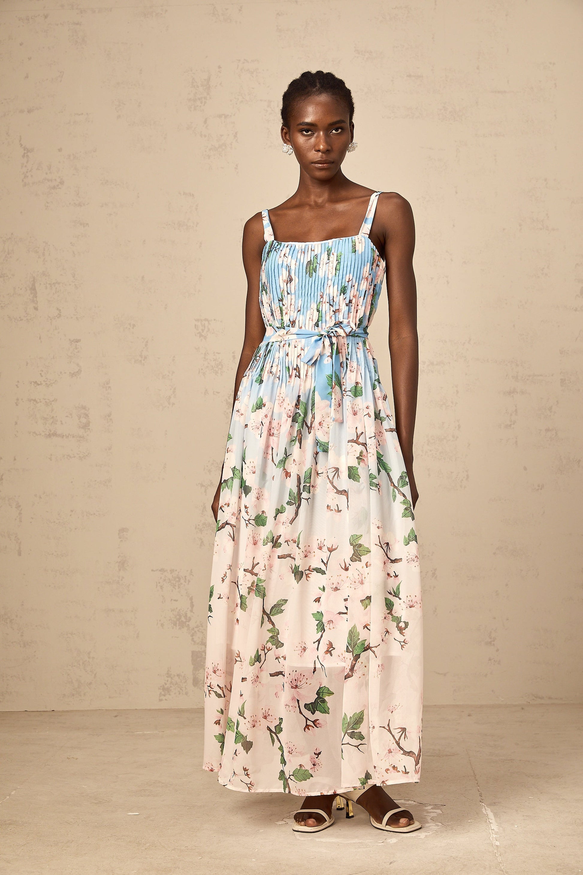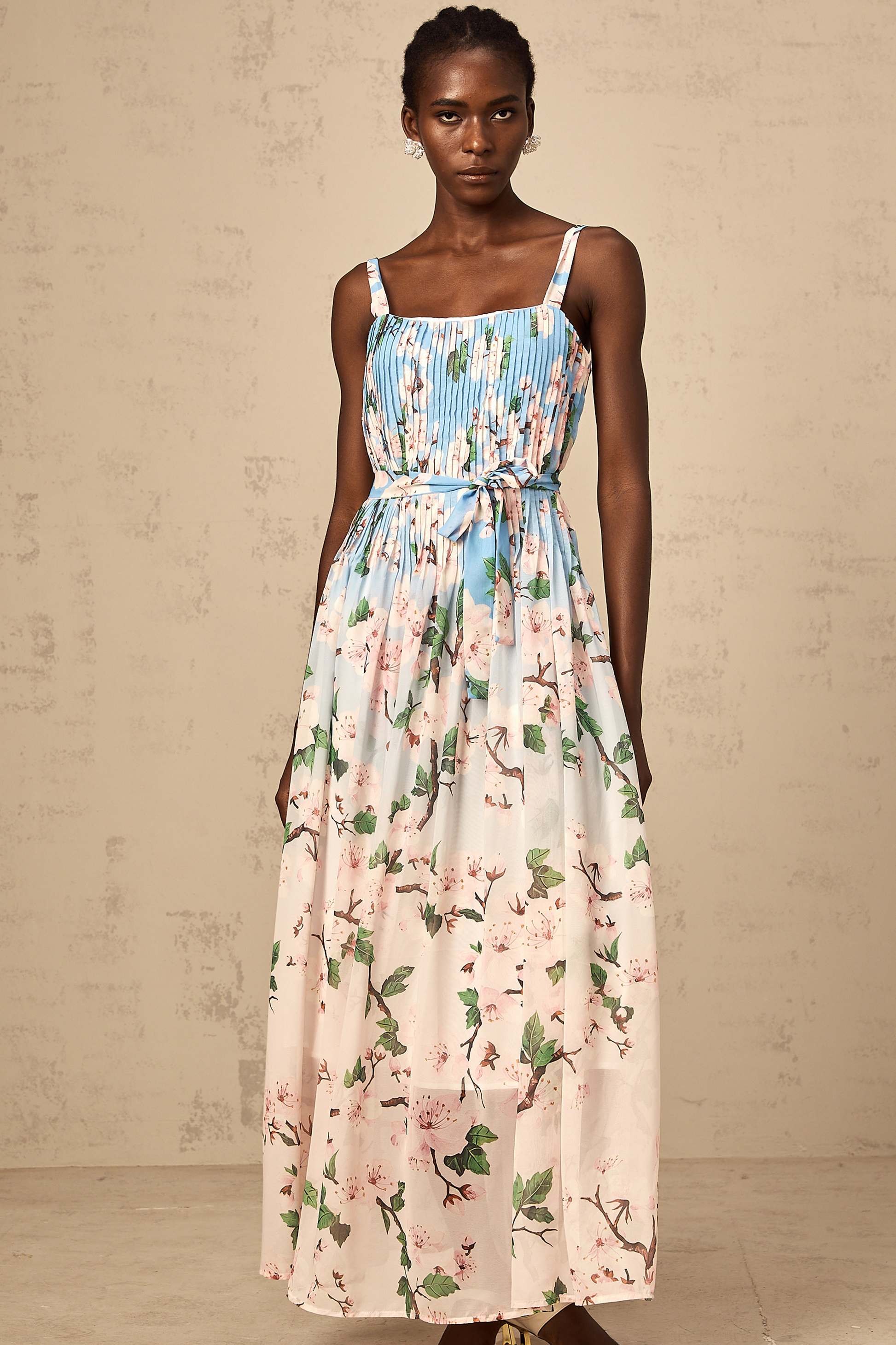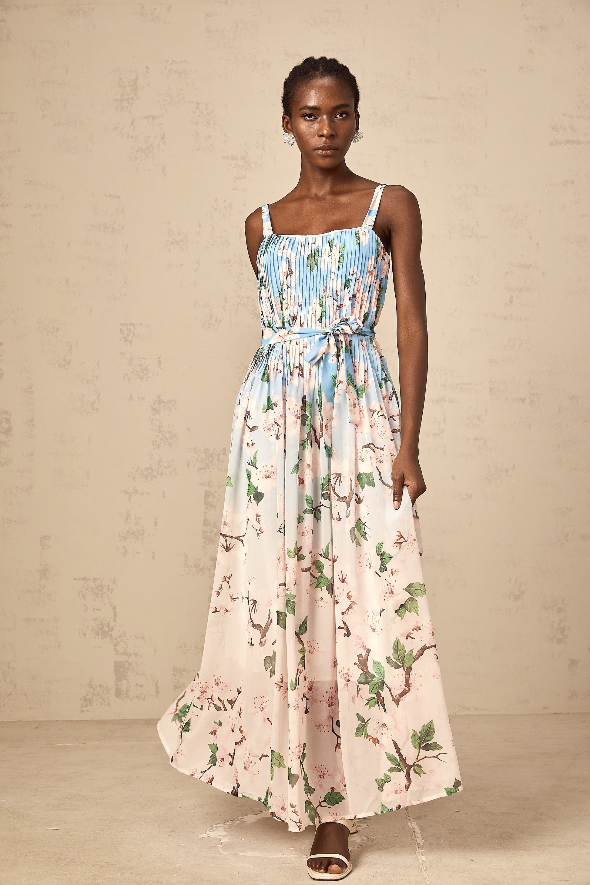 Océane blue floral-print pleated maxi dress