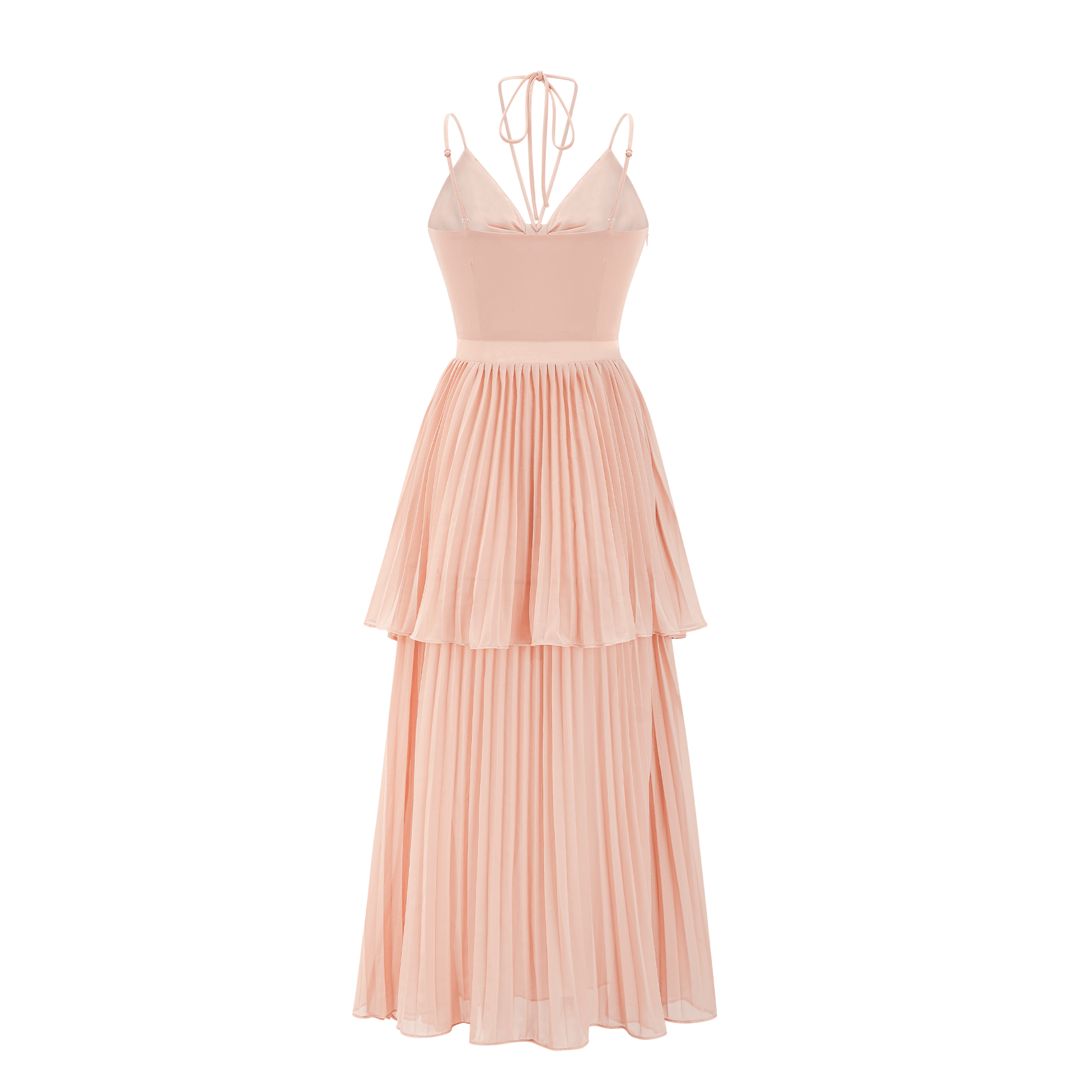 Olympe pink pleated tiered midi dress