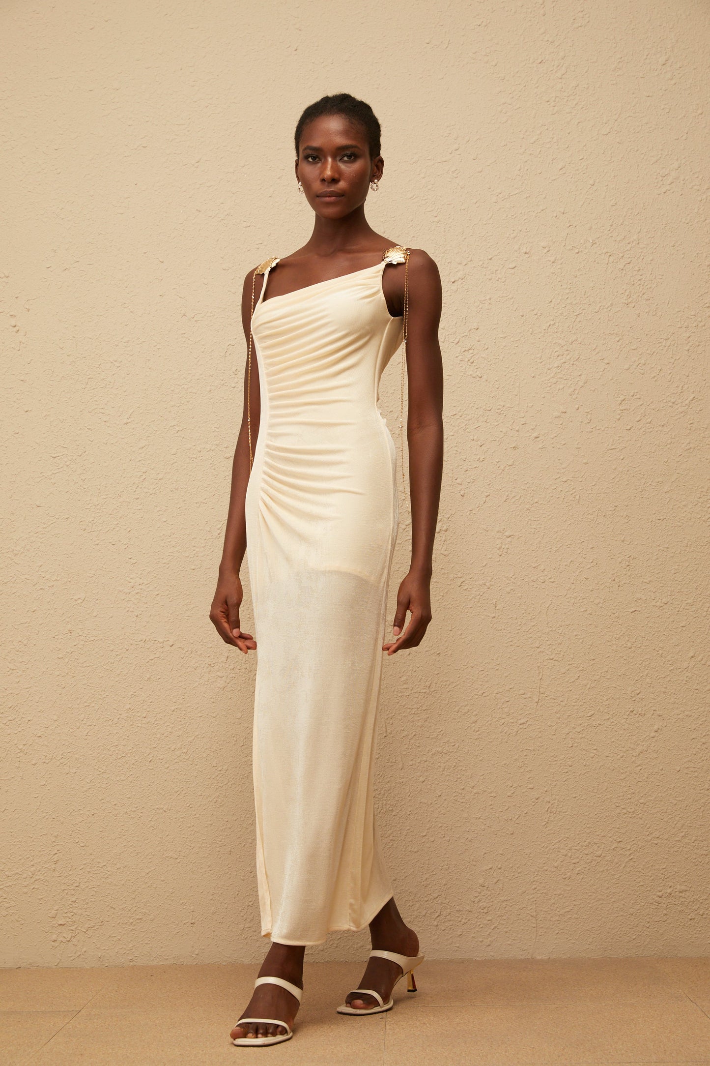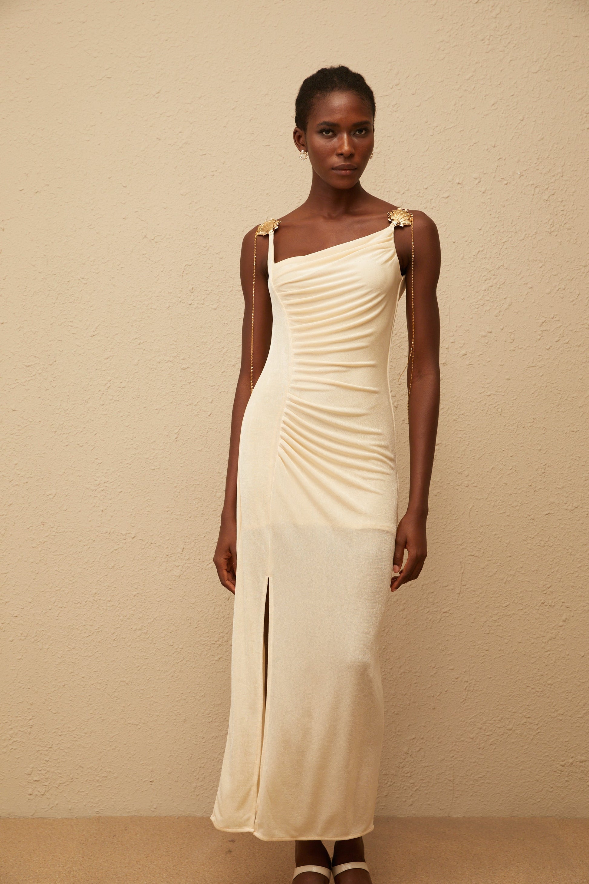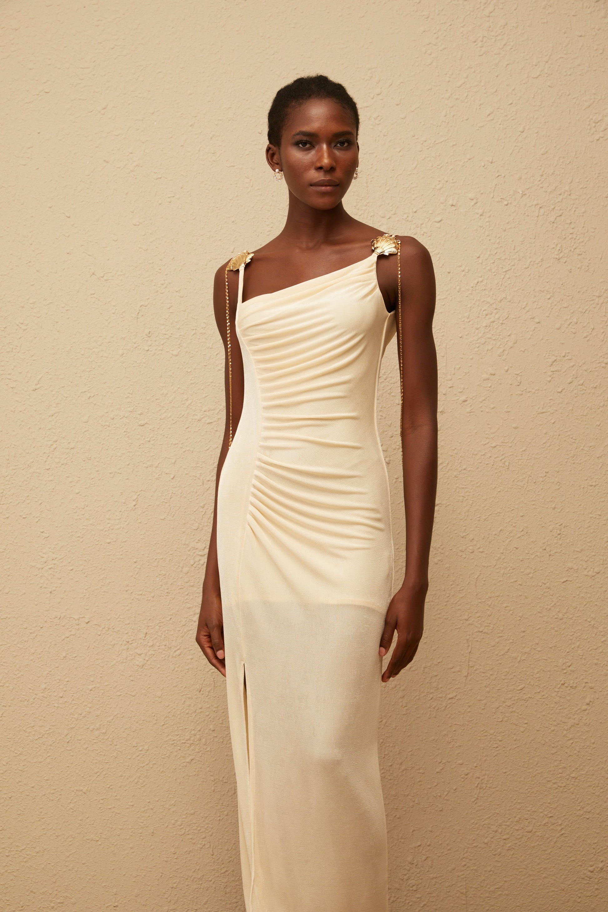 Ondine Shell Embellished Ruched Corset Maxi Dress