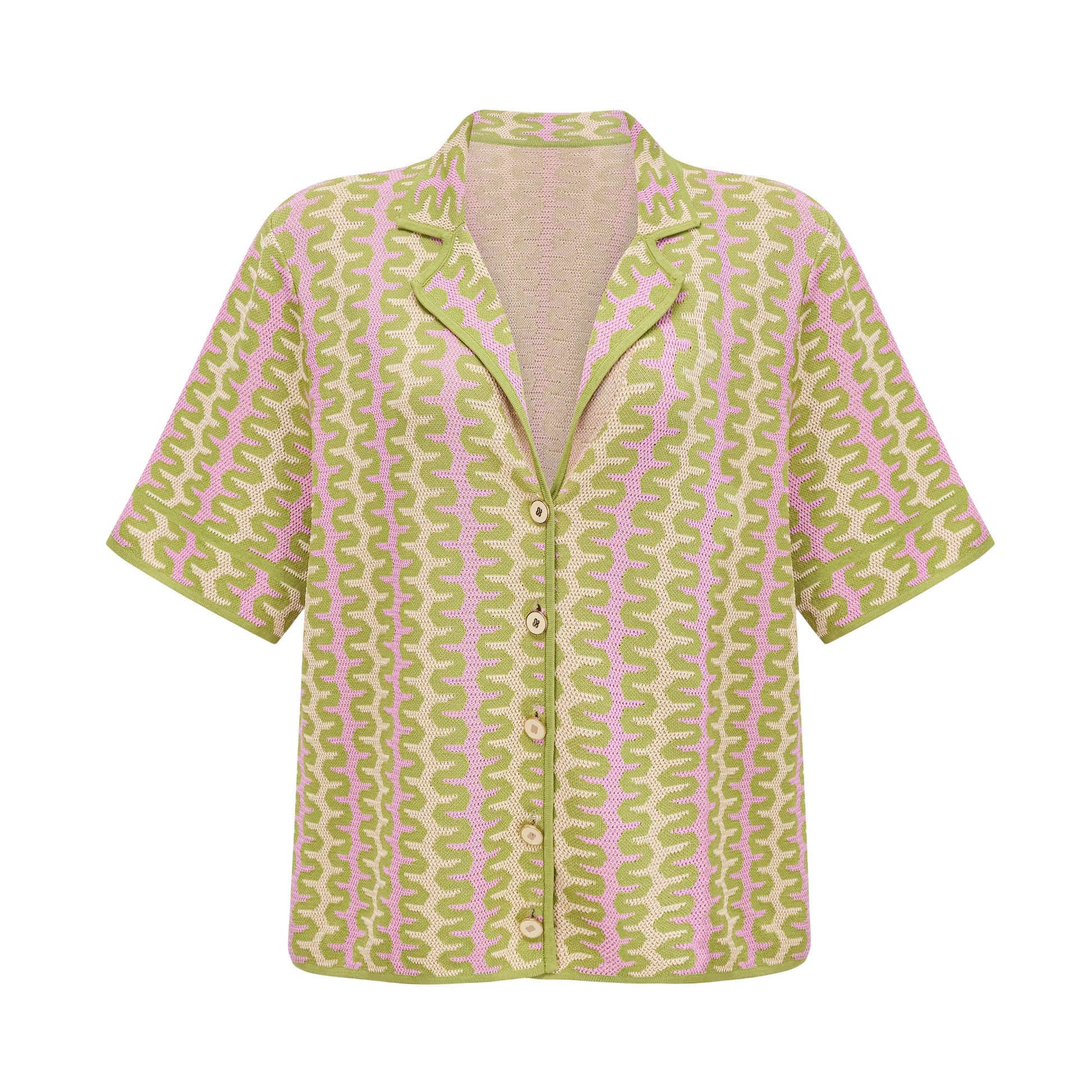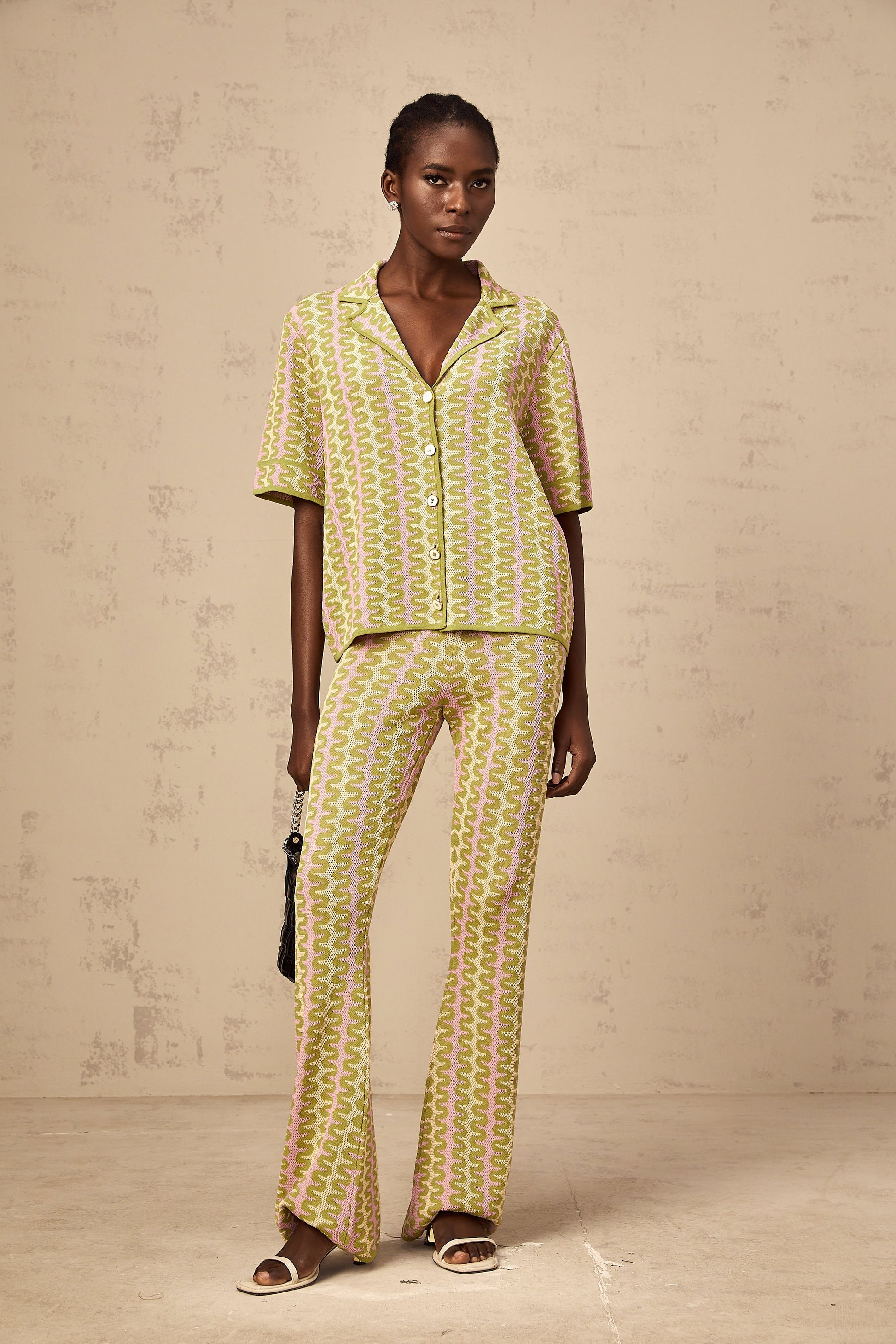 Ophélie green color-block knitted shirt & trousers matching set
