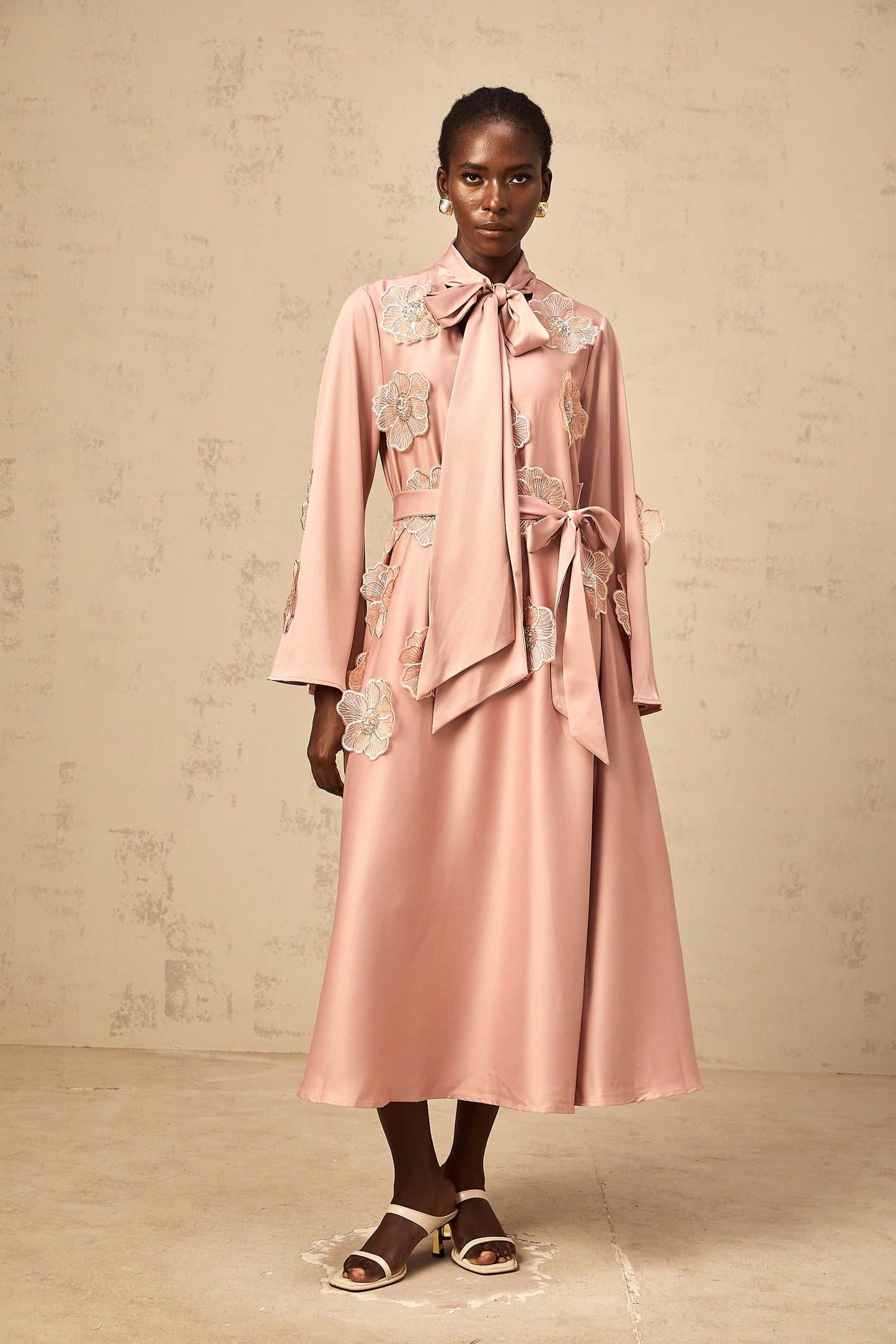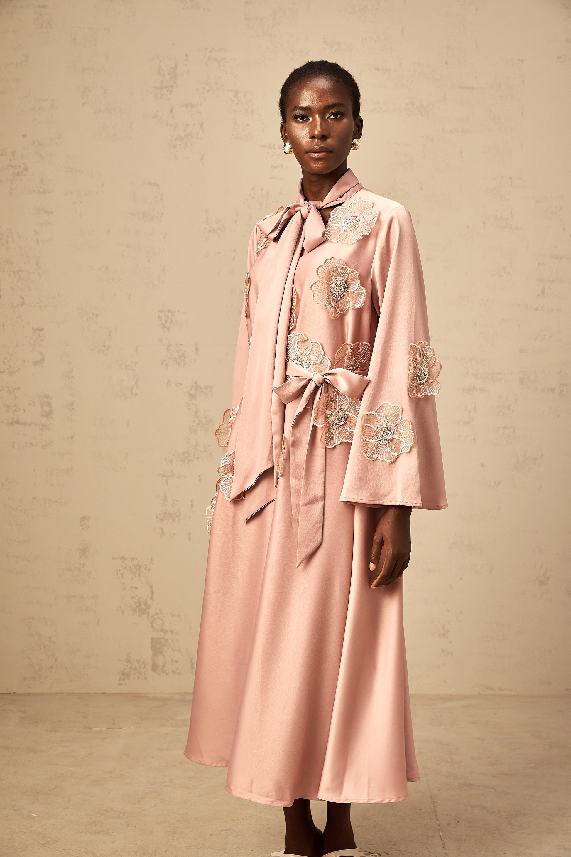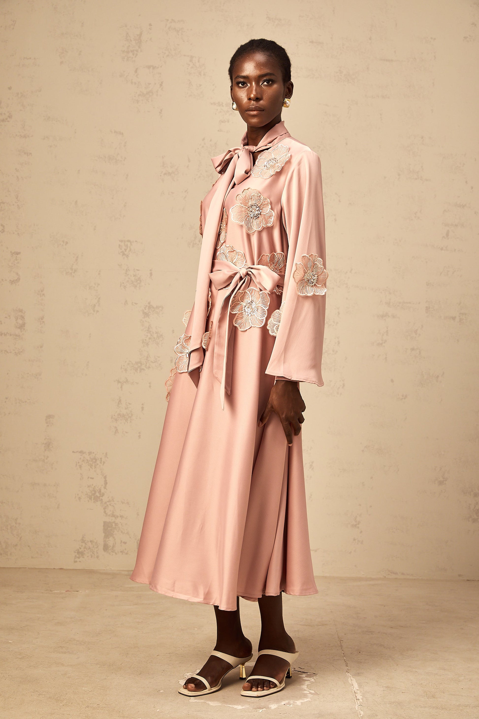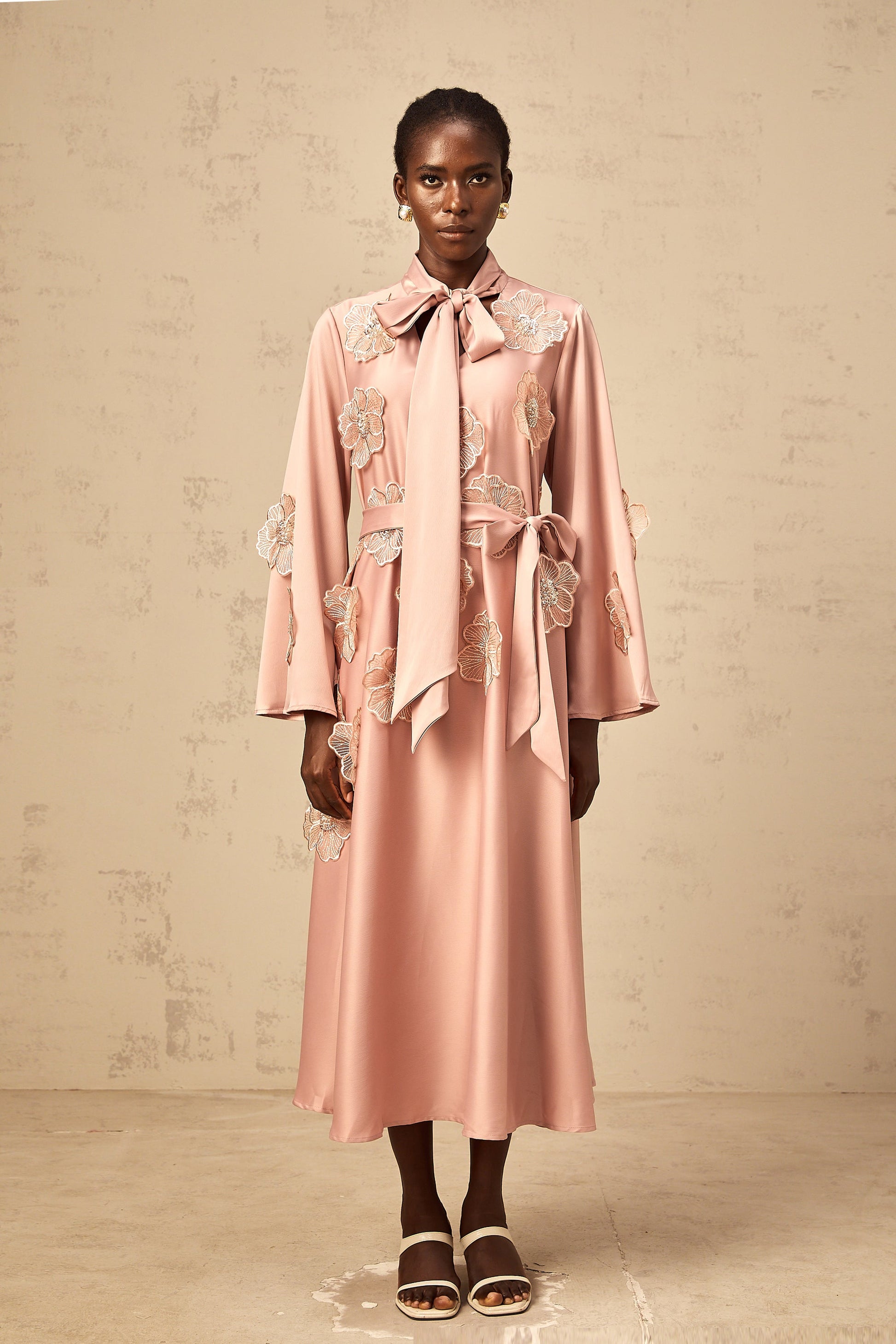Orane tied floral-applique flared midi dress in Pink