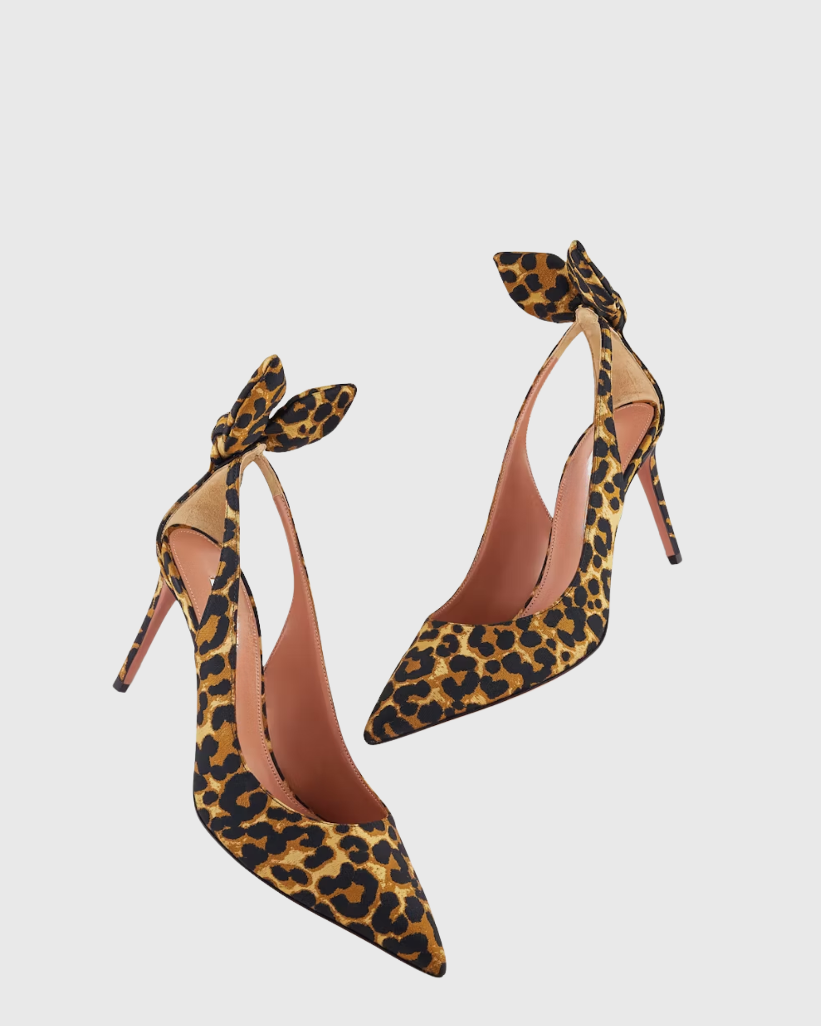 Introducing the Orsa Bow Tie Leopard Print Pumps - a bold and stylish addition to any wardrobe! With its unique bow tie detailing and eye-catching leopard print pattern, these pumps are sure to turn heads. Elevate your outfit with these statement shoes and step out with confidence!