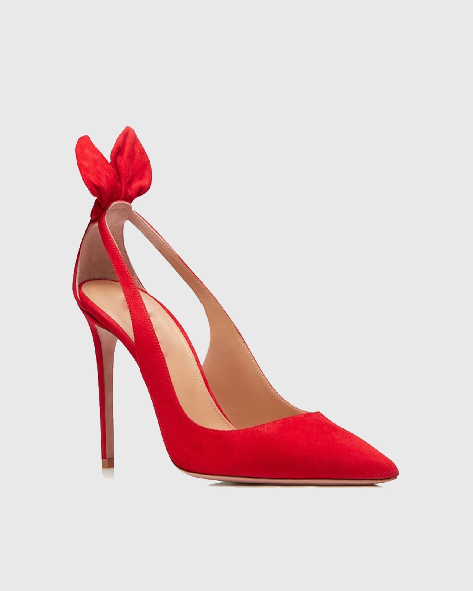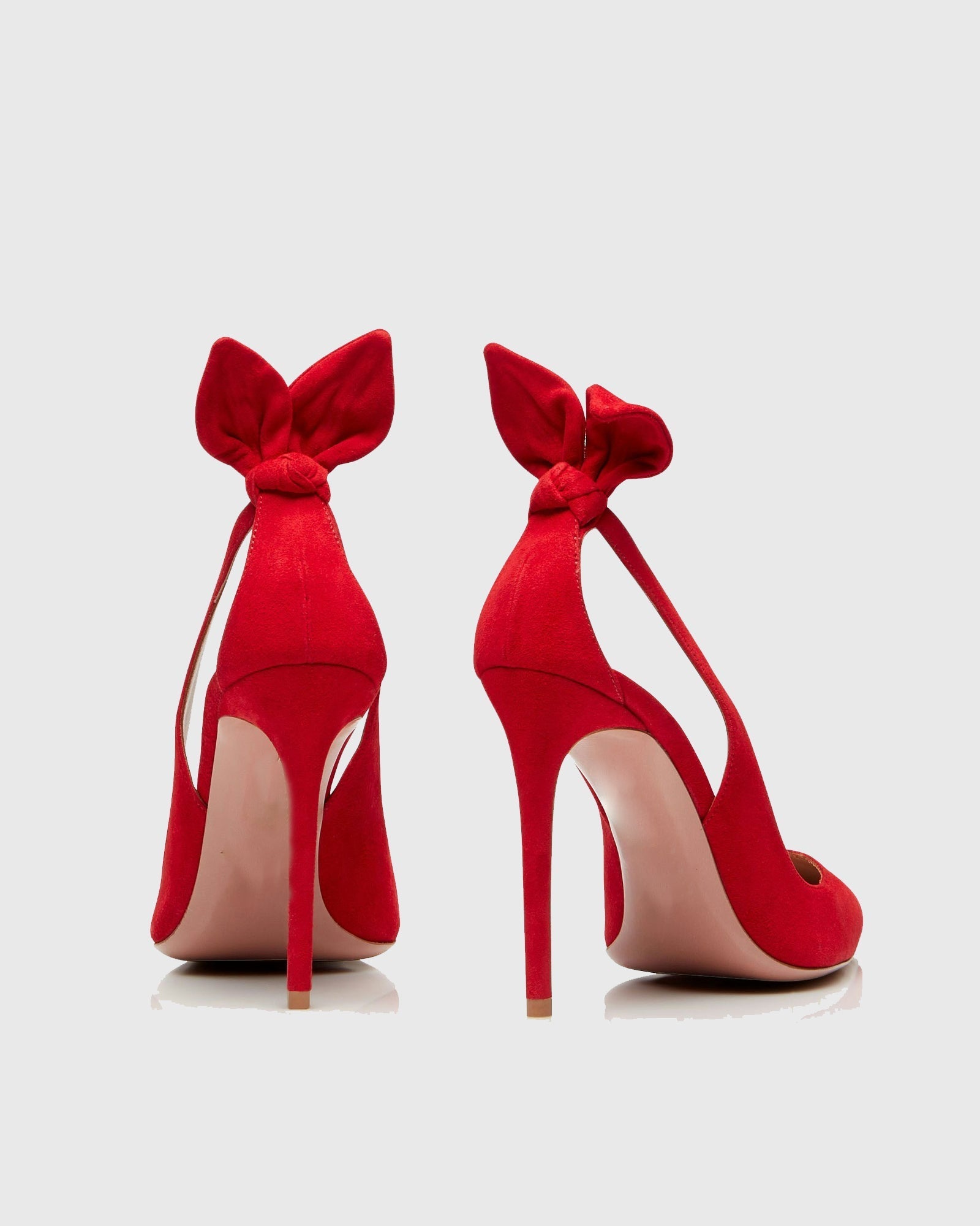 These stunning Orsa Bow Tie Velvet Pumps in Red will add a touch of elegance and sophistication to any outfit. The rich velvet material and beautiful bow tie detail are sure to catch attention and make a statement. Perfect for special occasions or elevating your everyday style.