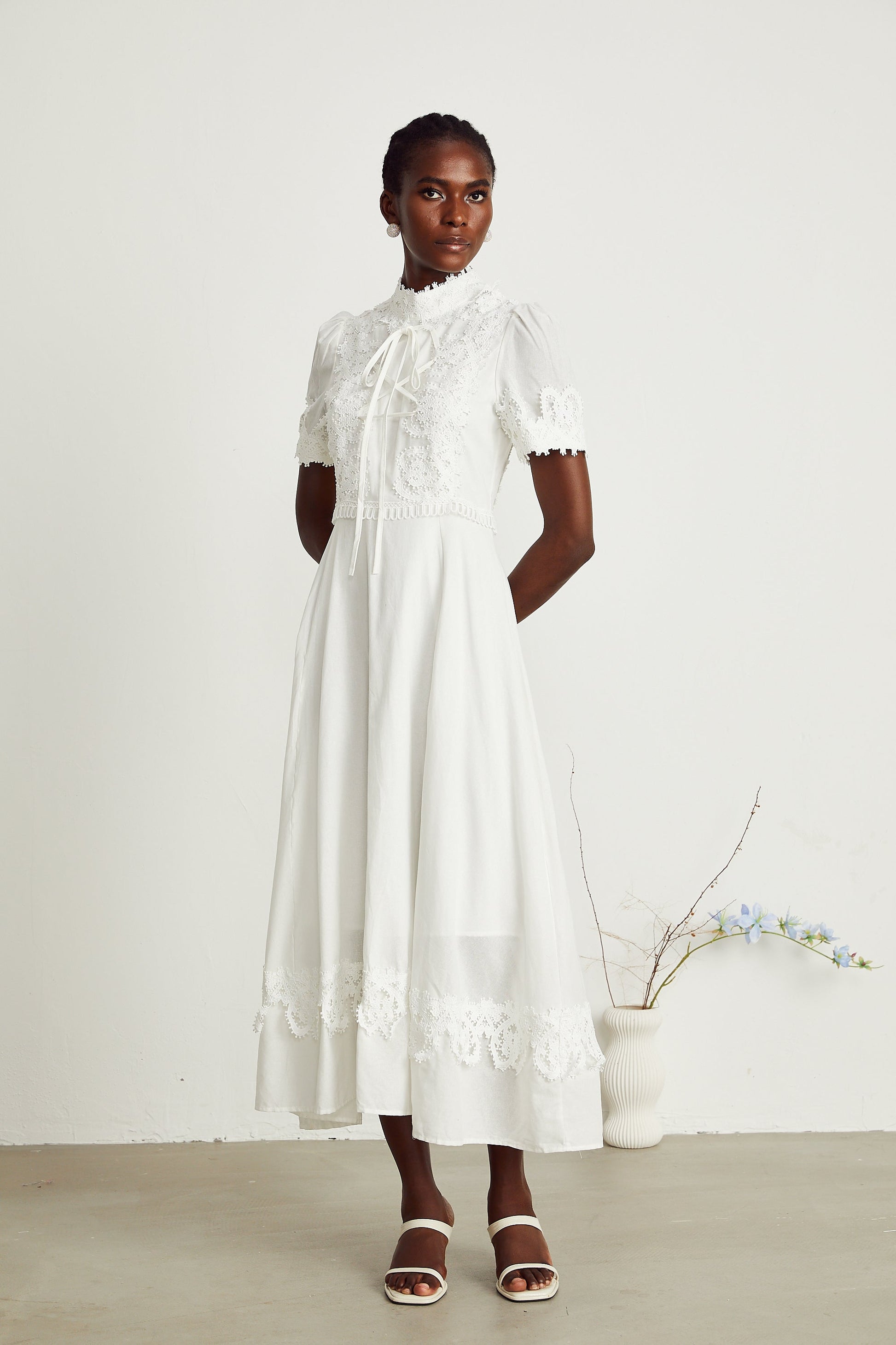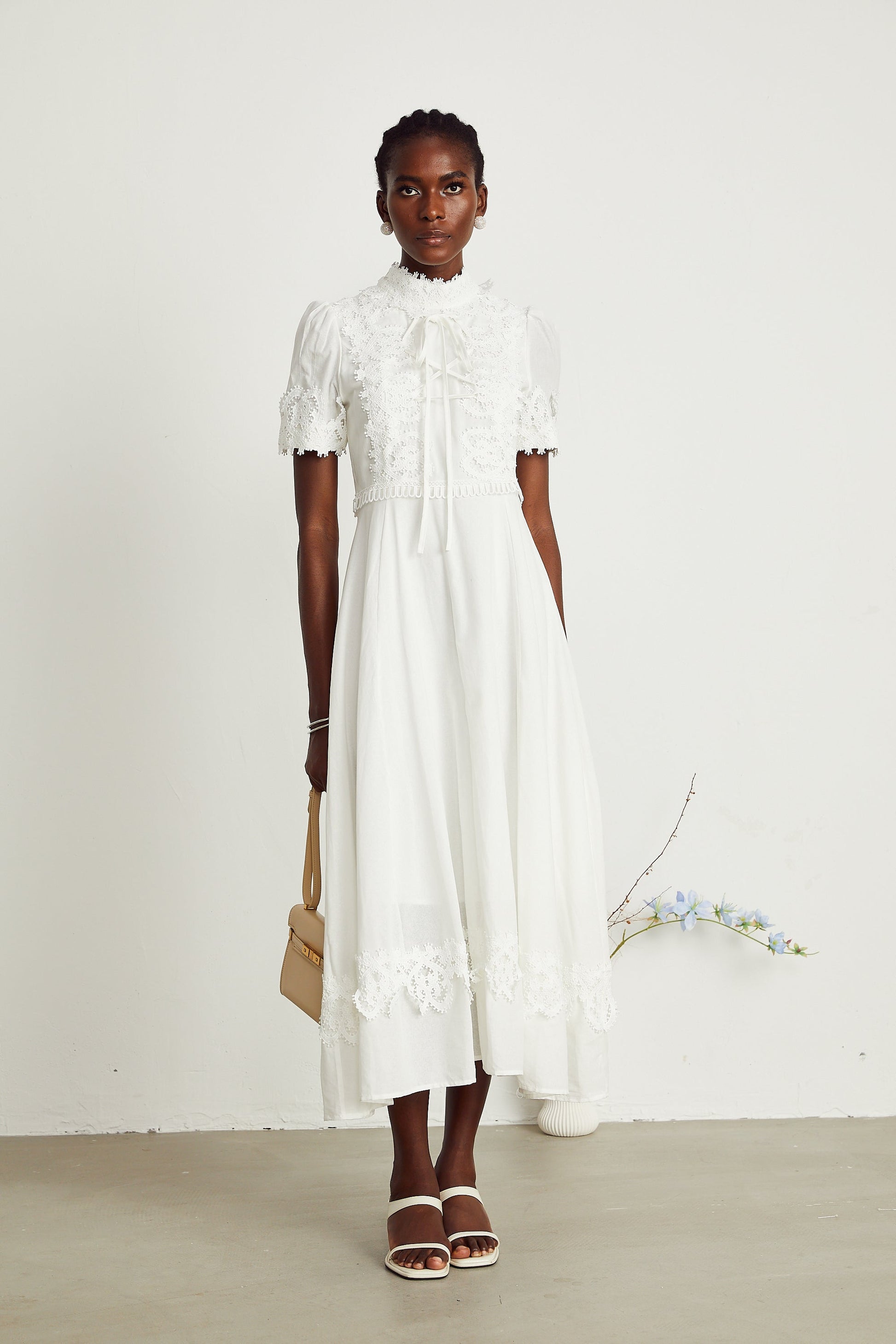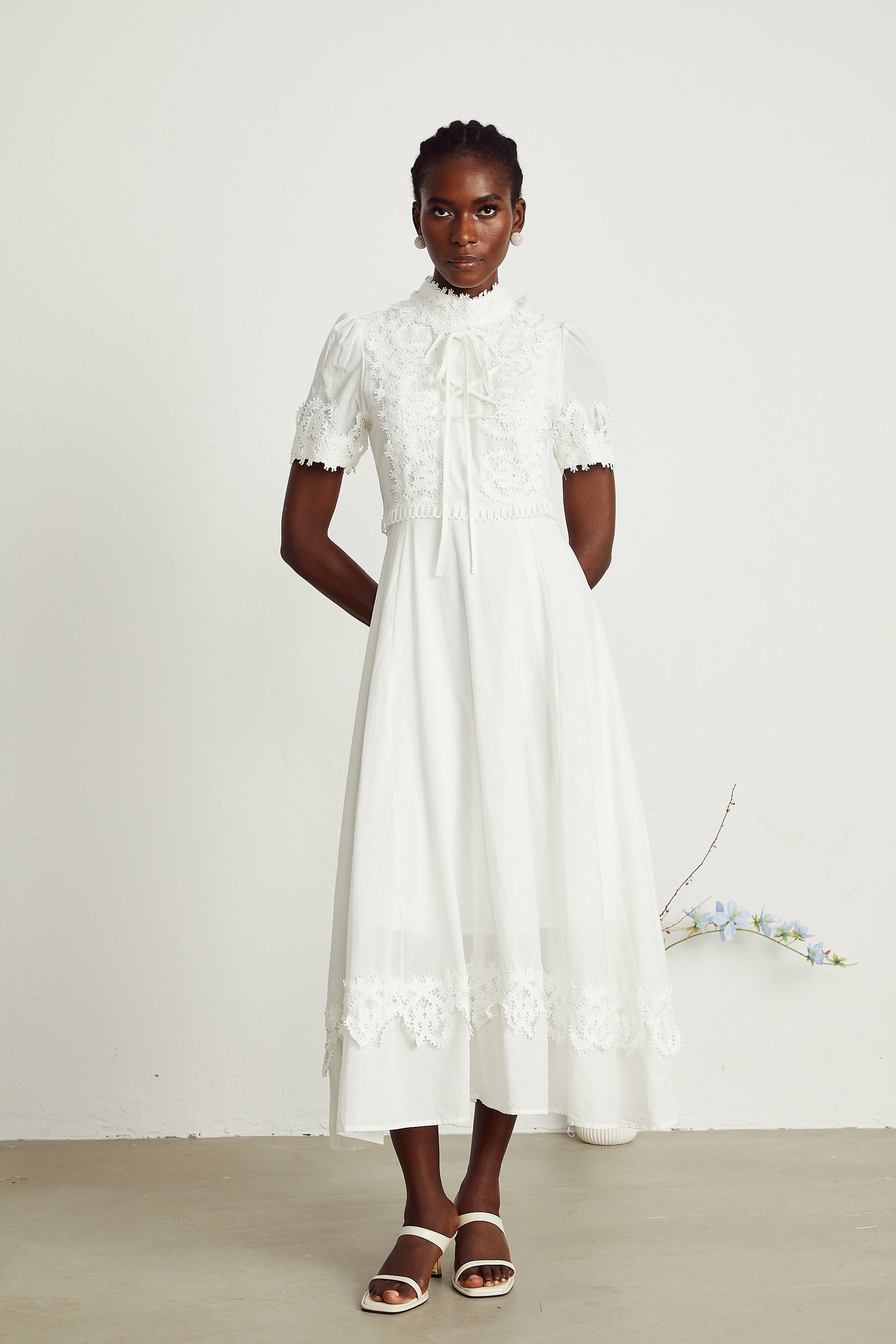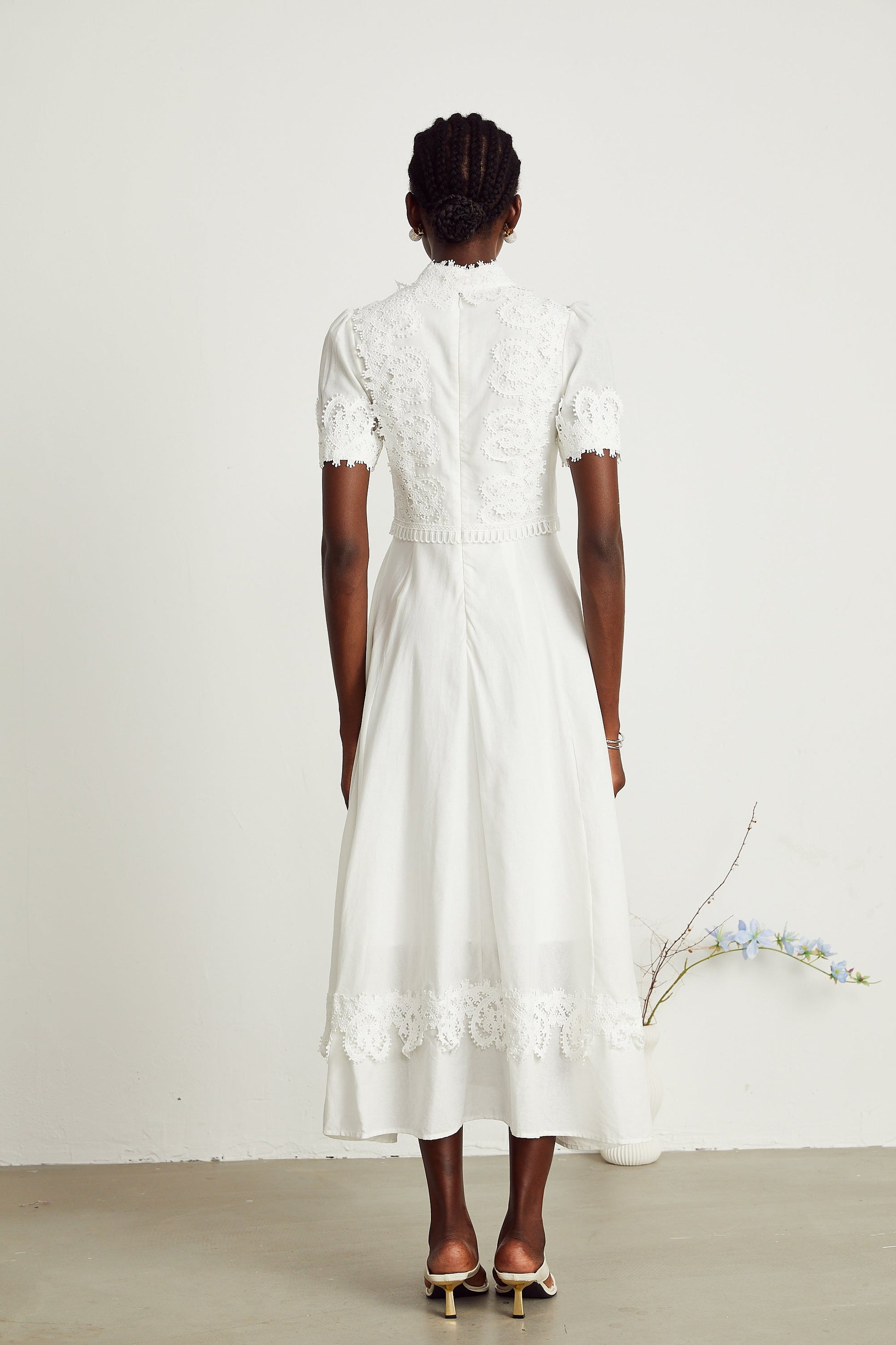 Patricia white floral-lace midi dress