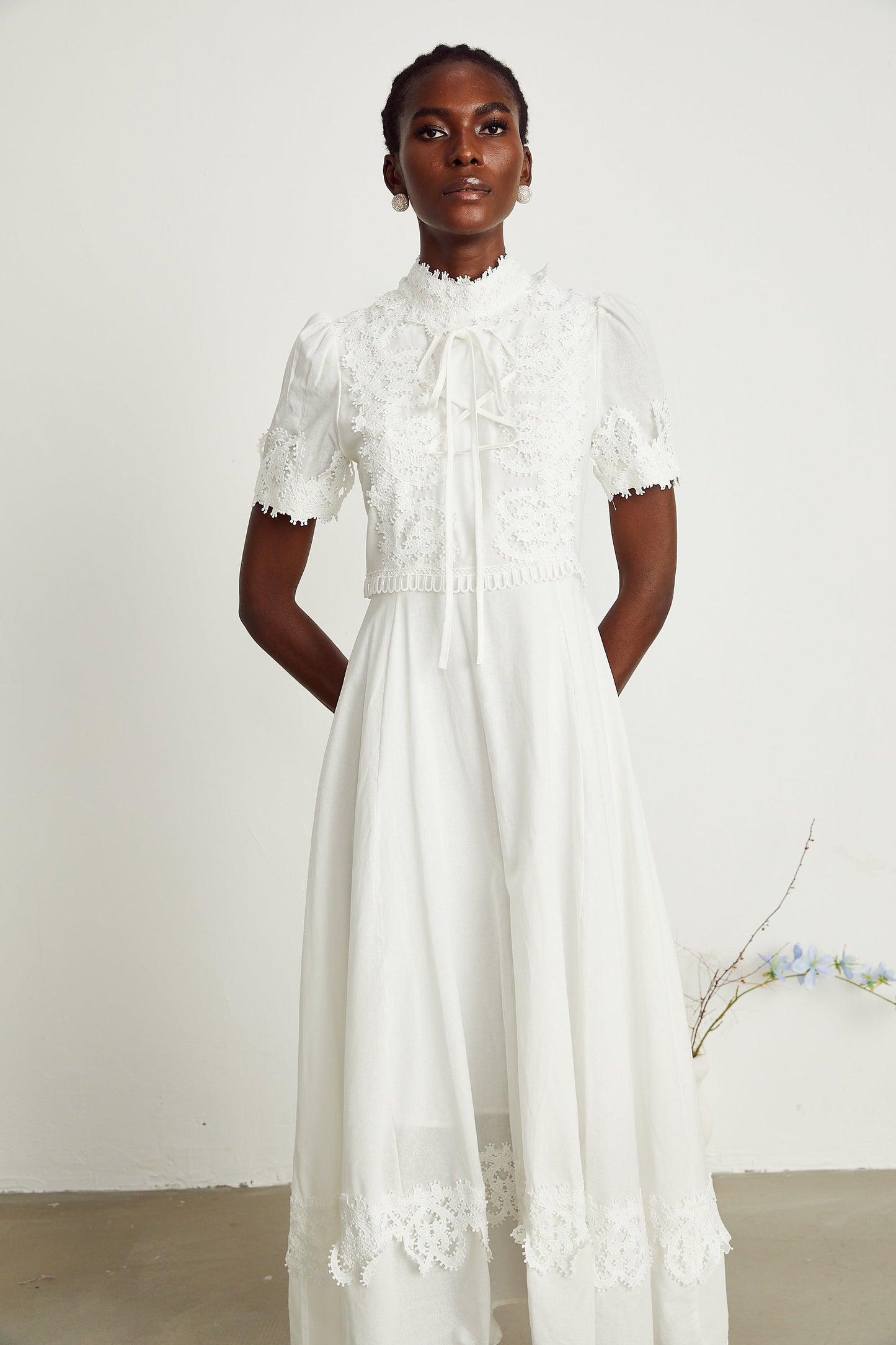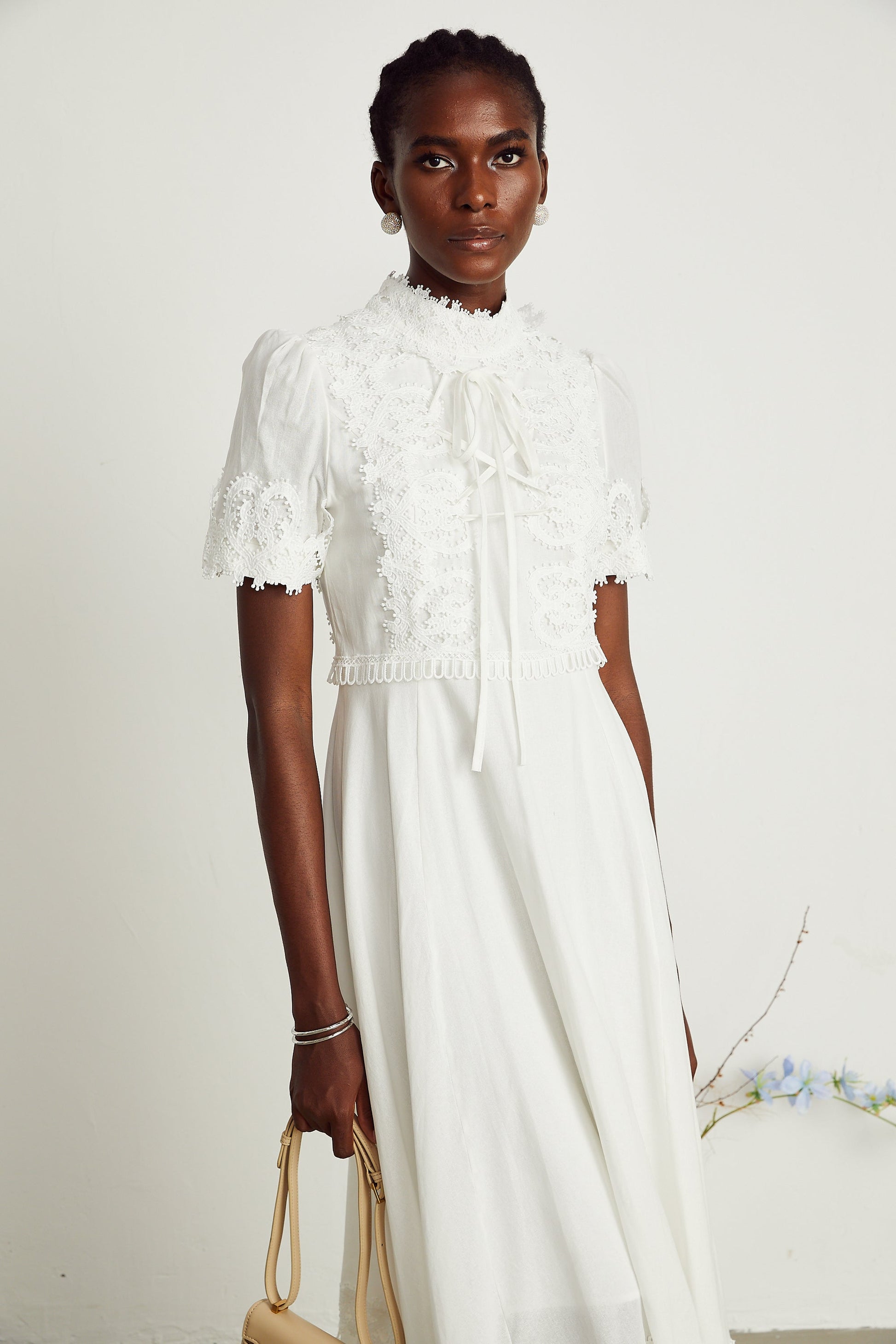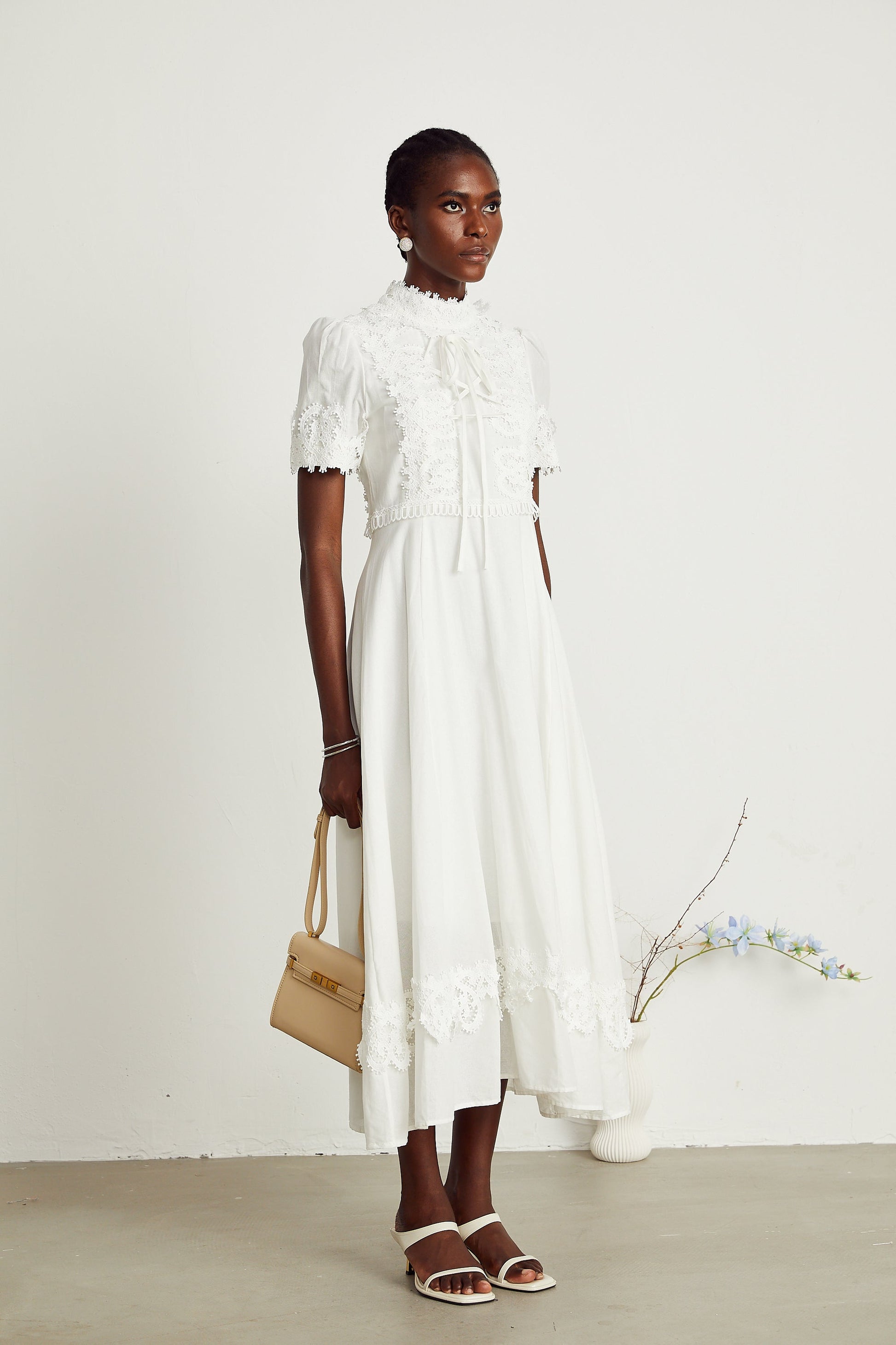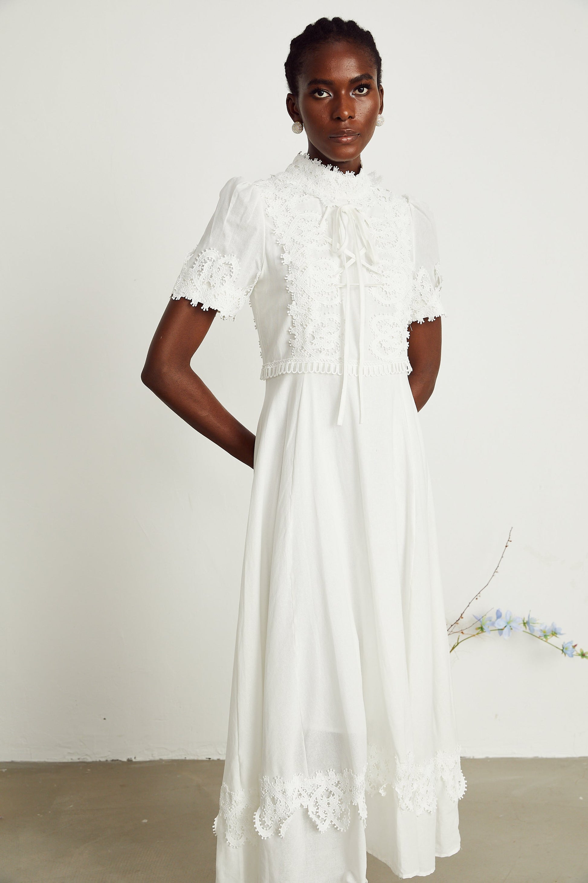 Patricia white floral-lace midi dress