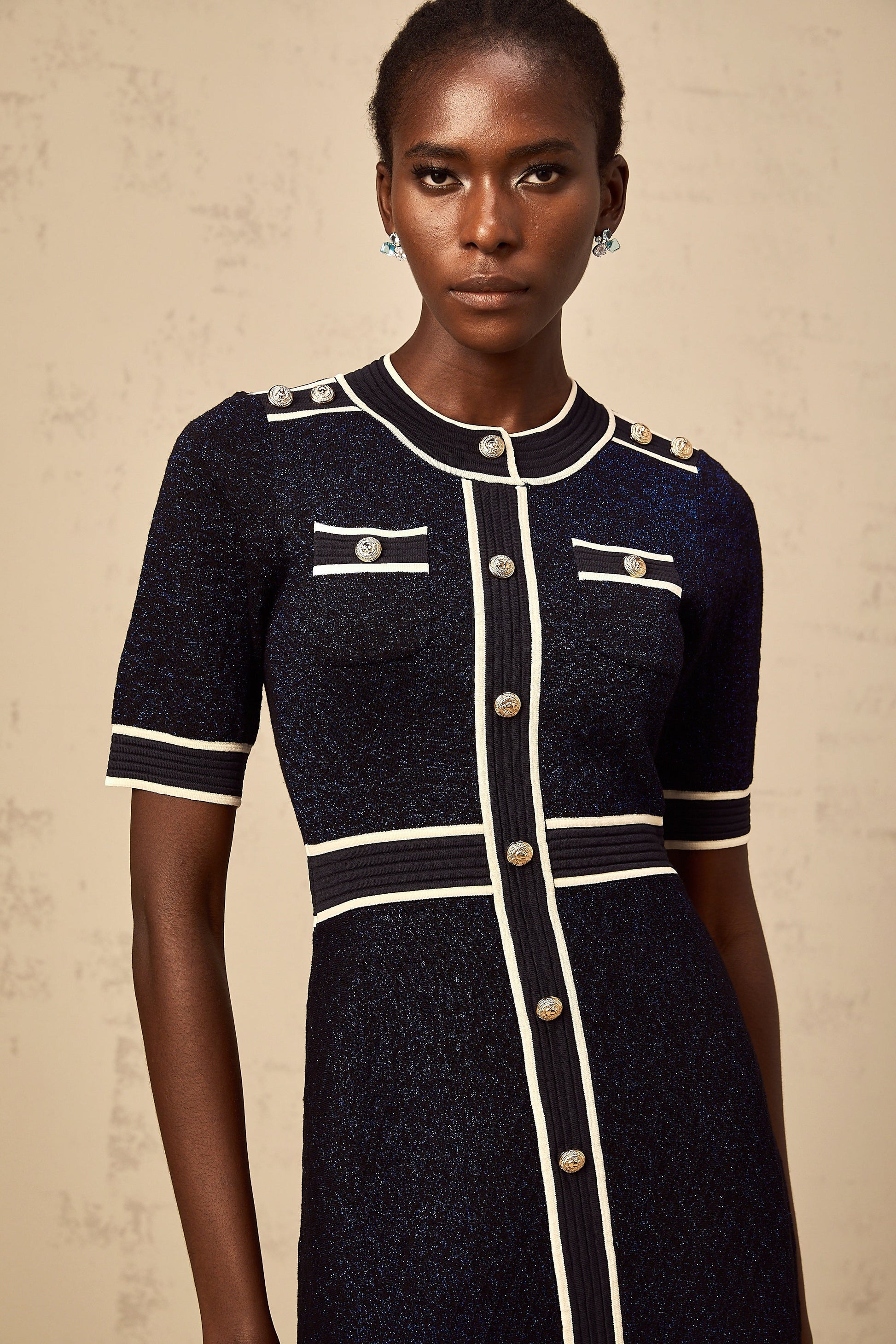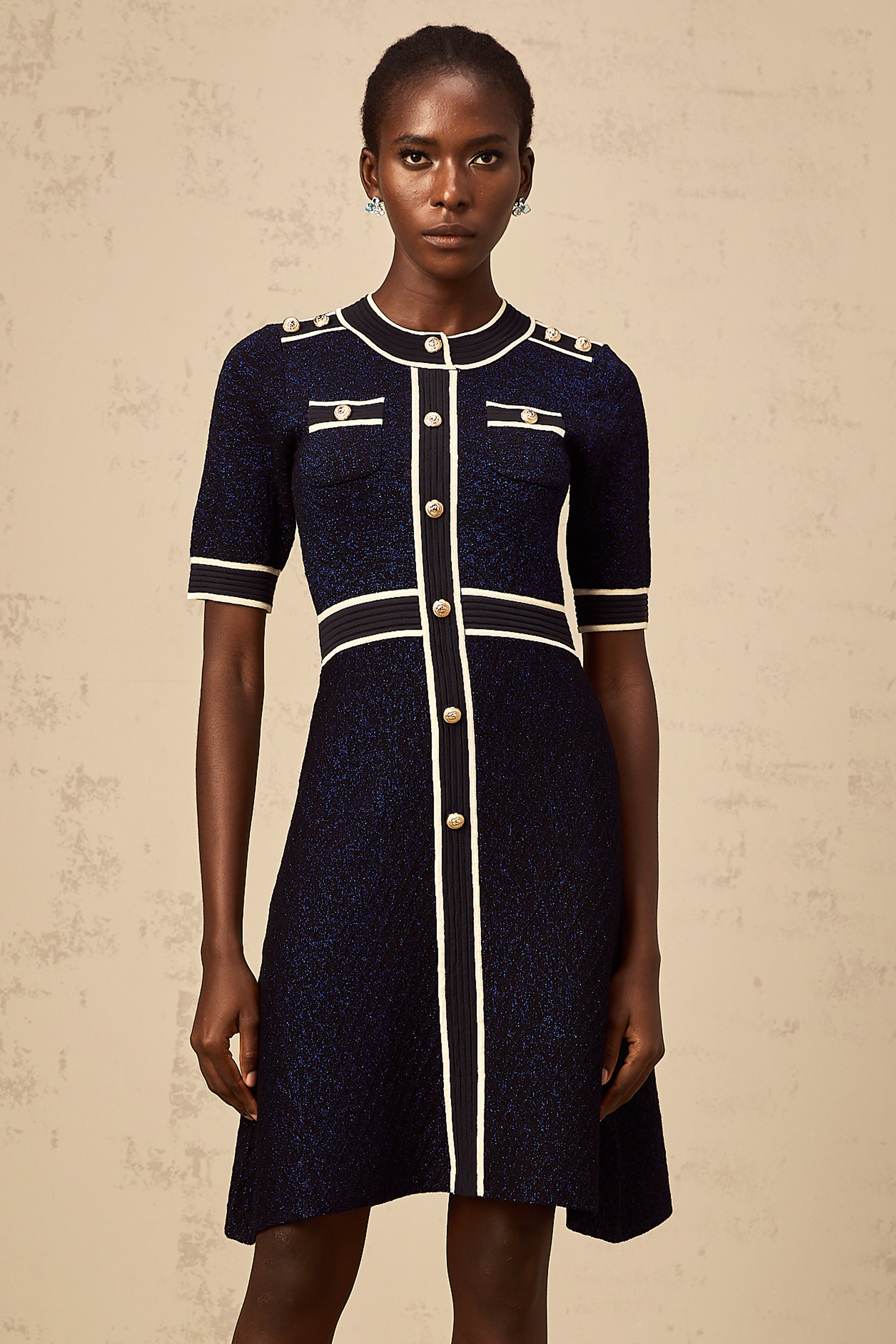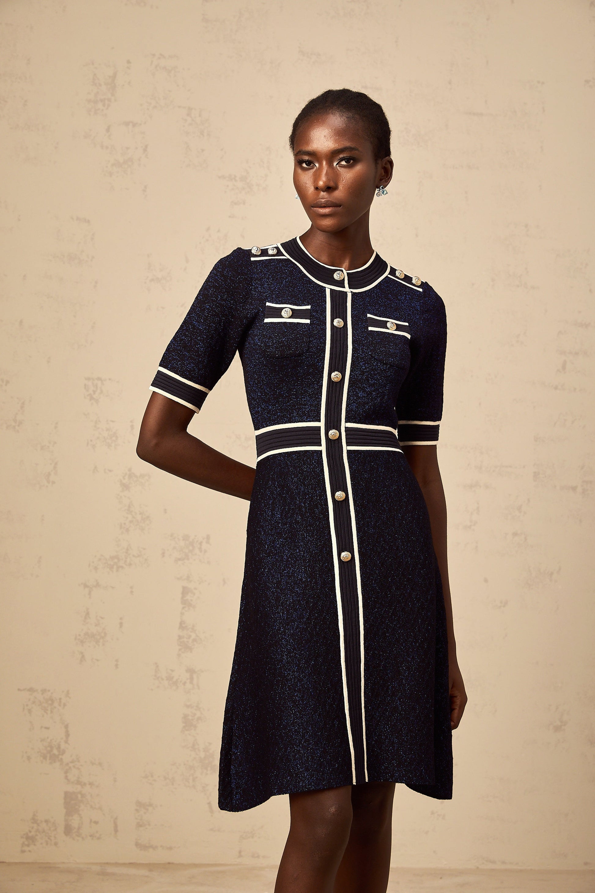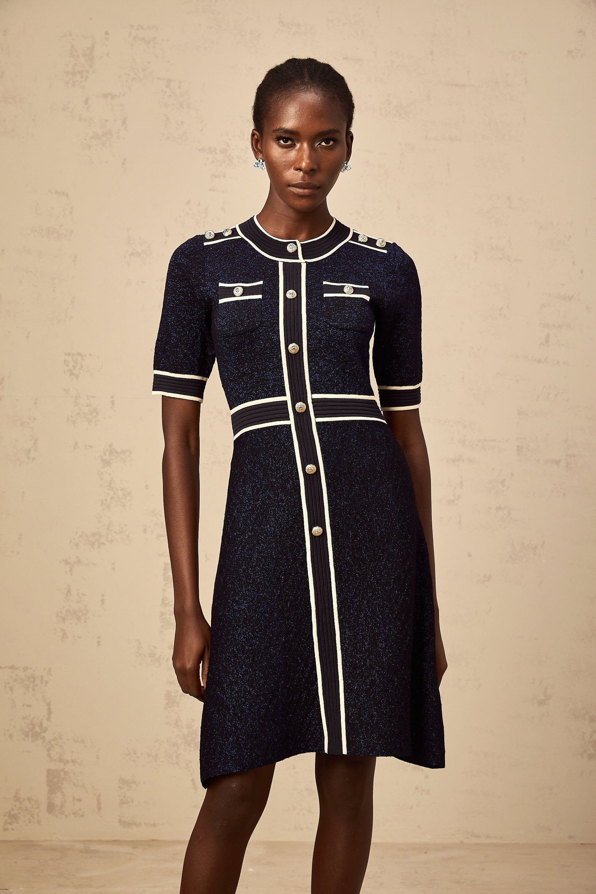 Paulette navy-blue glitter knit mini dress