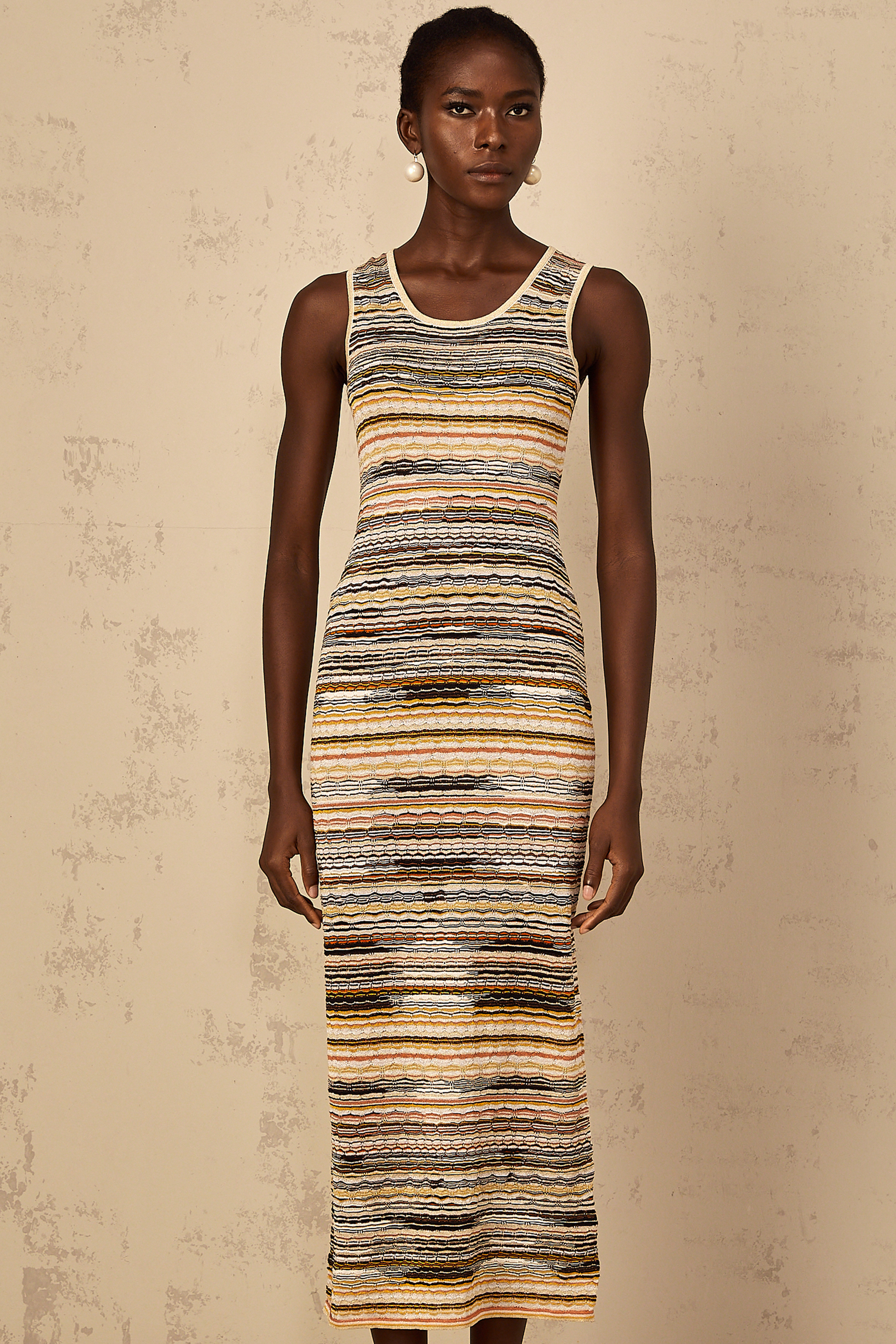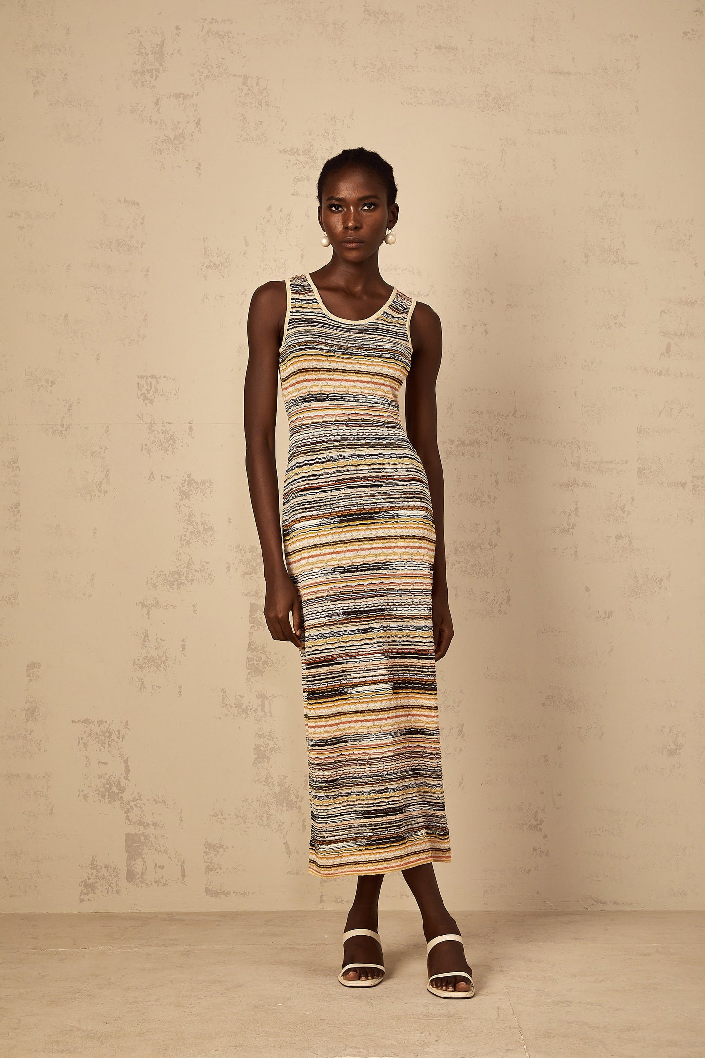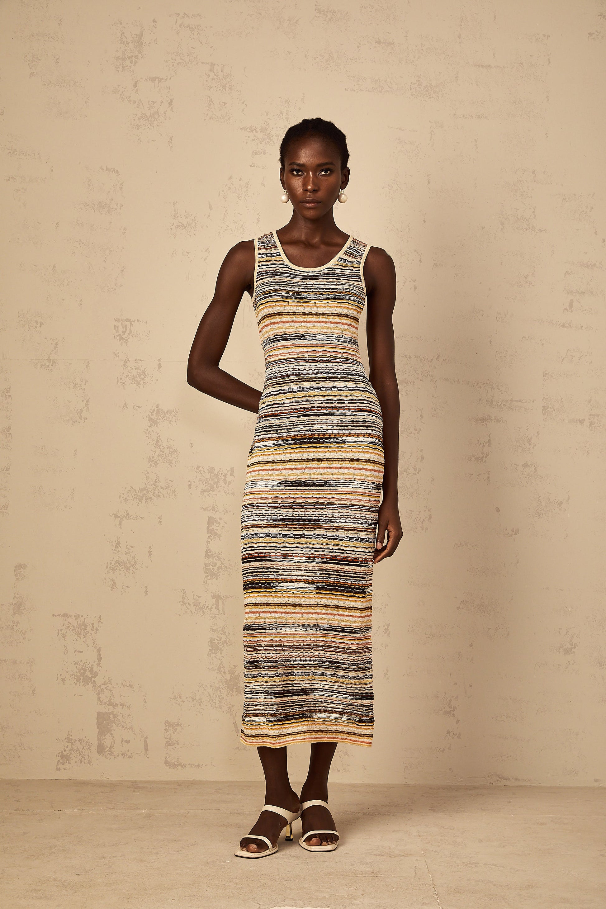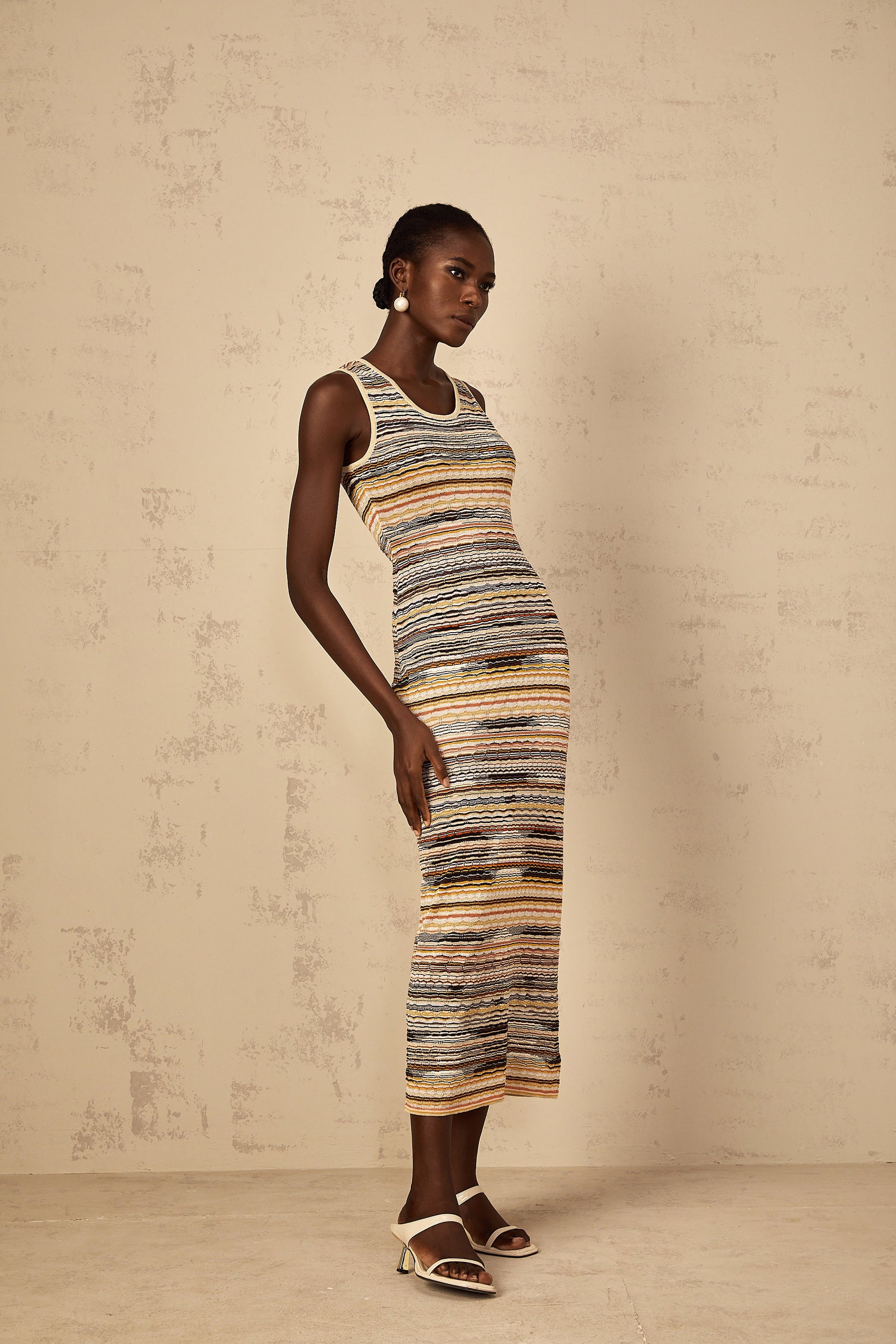 Quentin Yellow Striped Crochet Knit Midi Dress