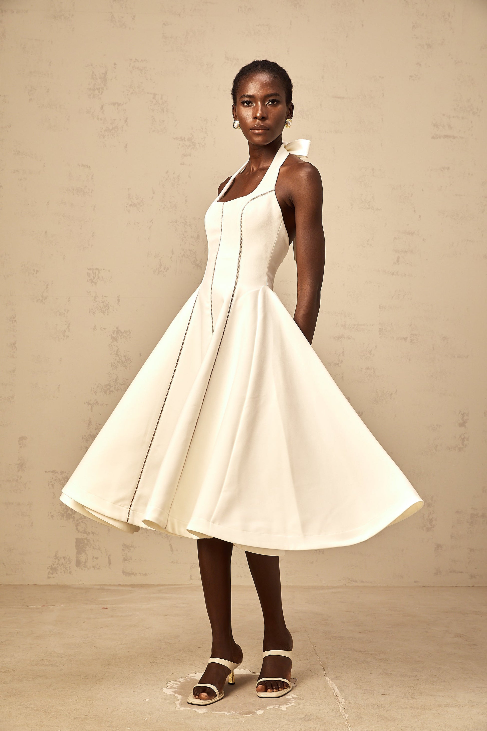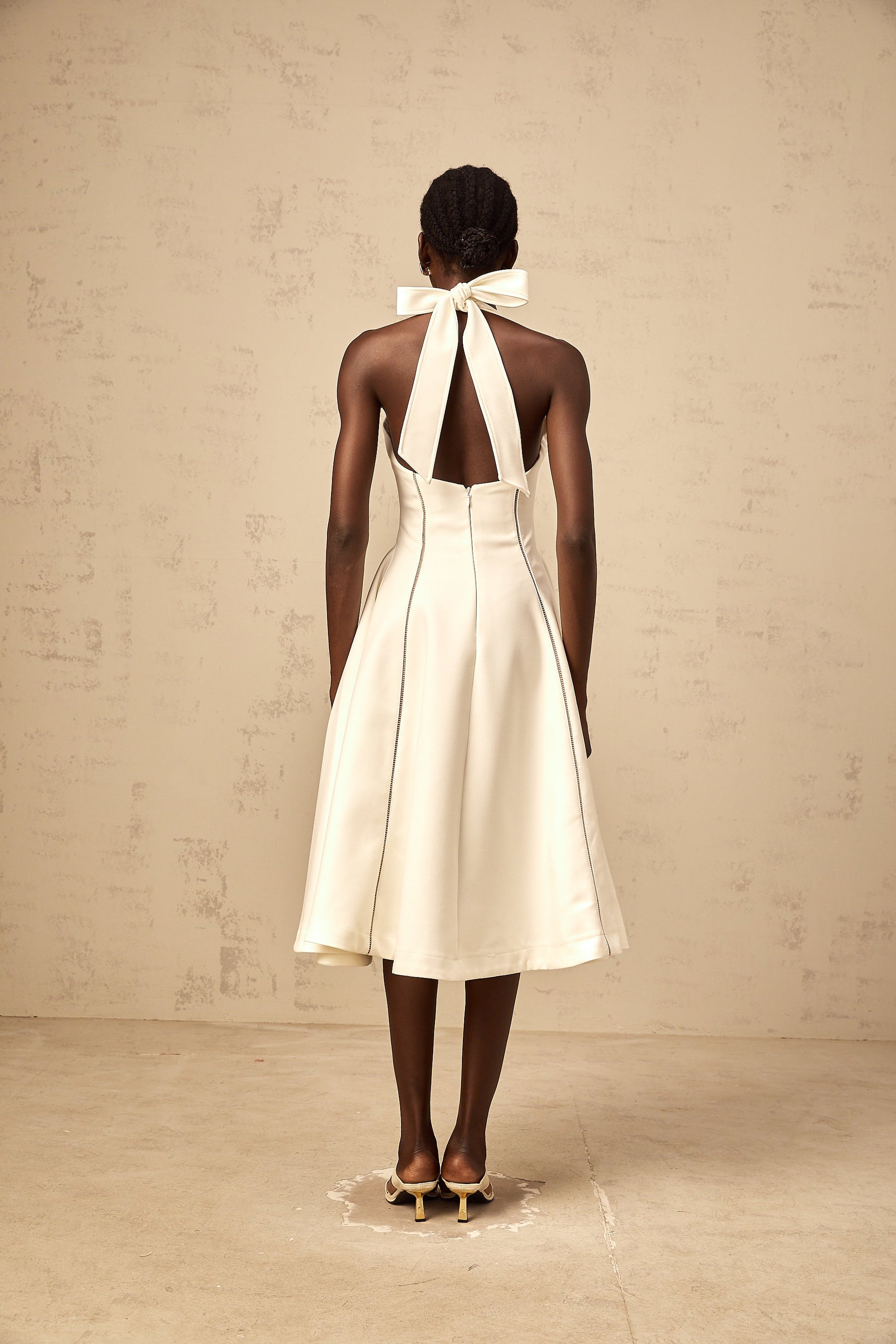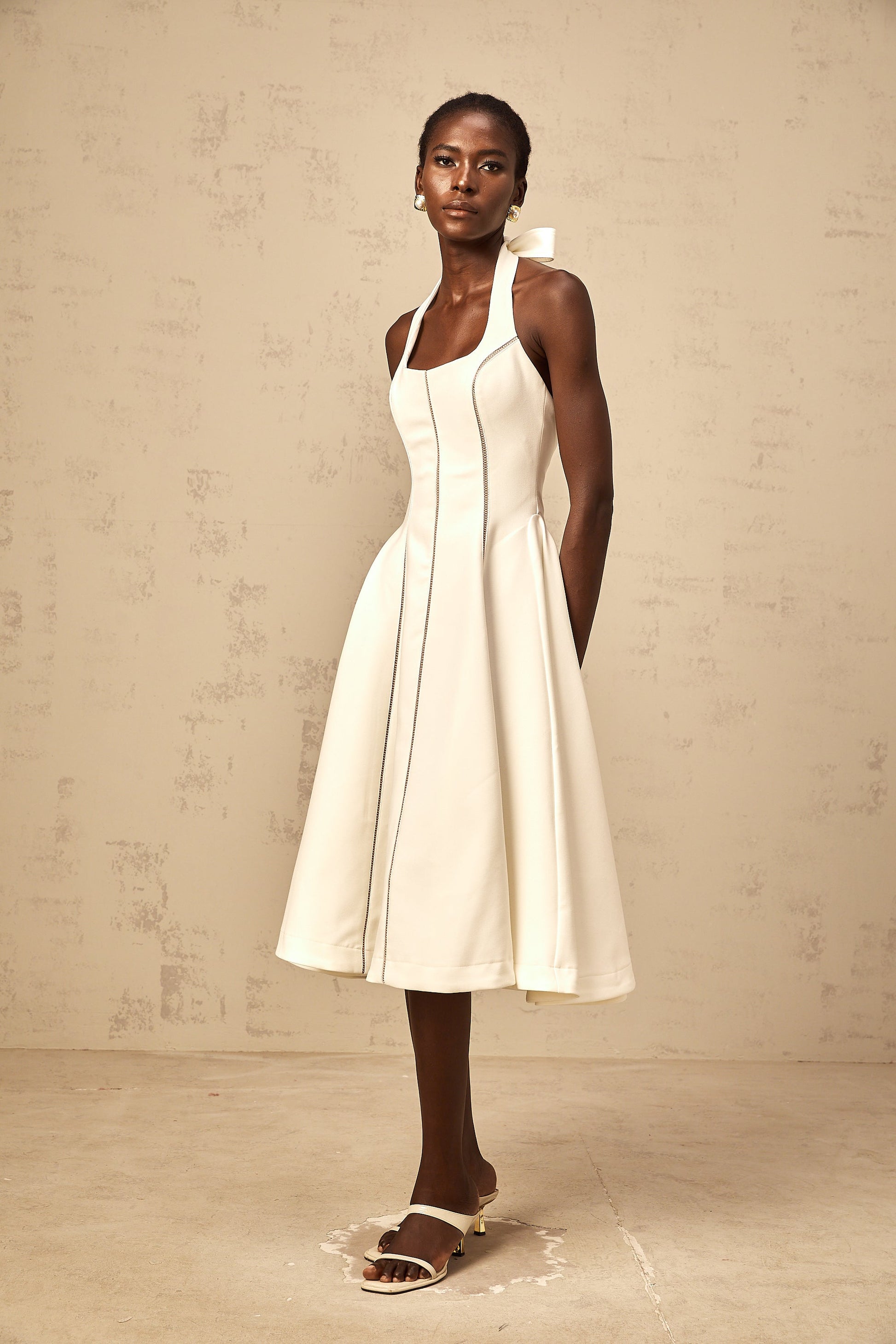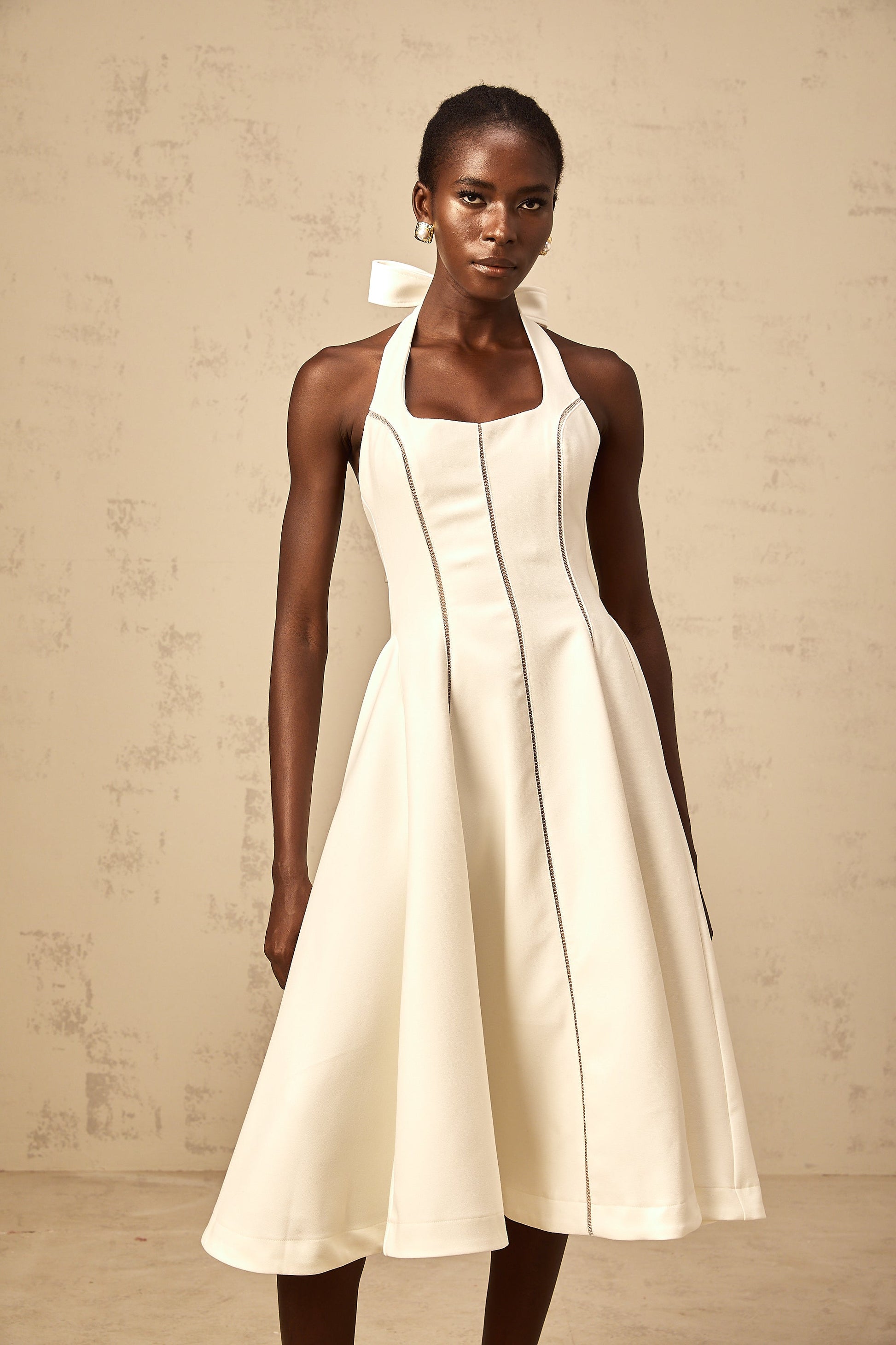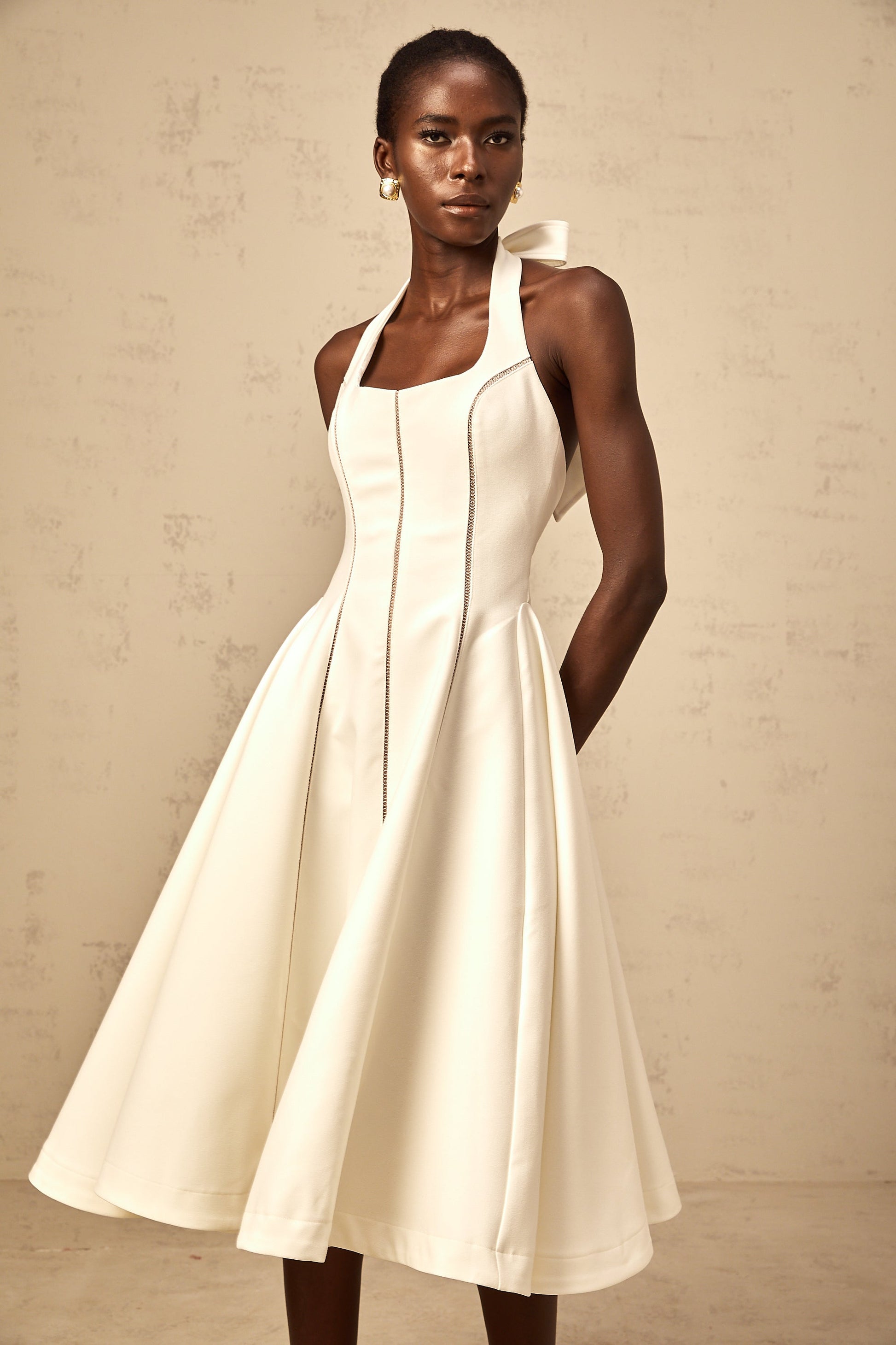 Quirine white halterneck bow-detail midi dress
