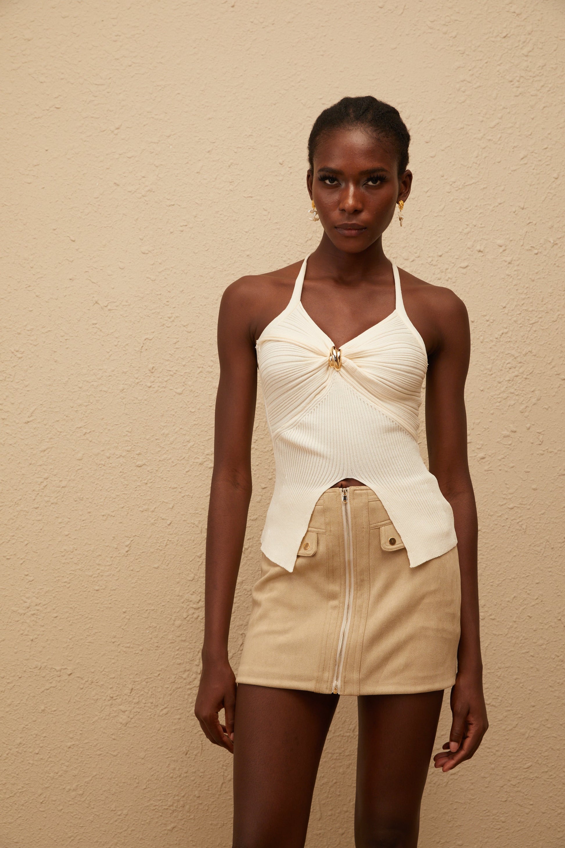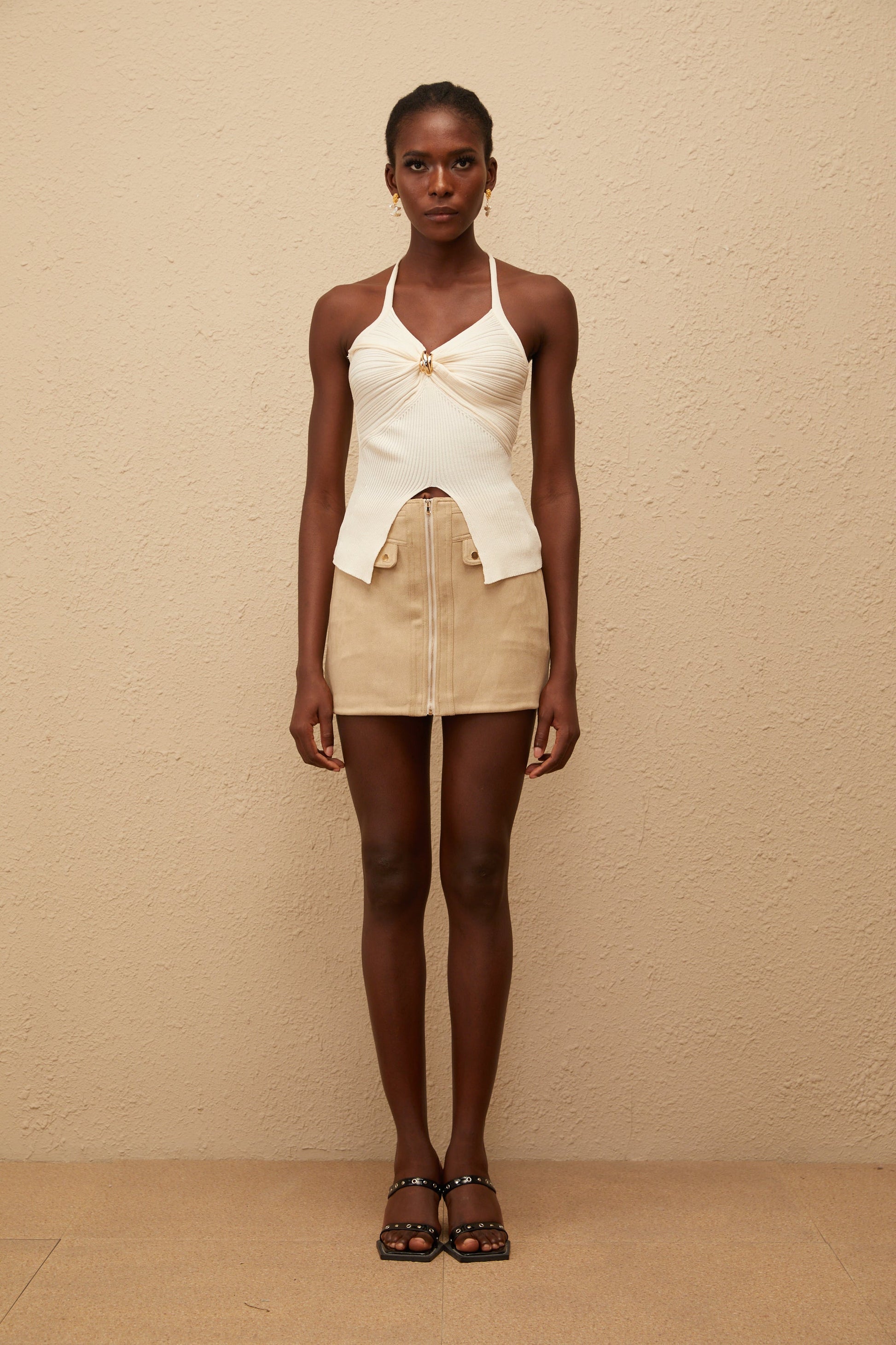 Quitterie Ribbed Knit Top & Suede Skirt Set