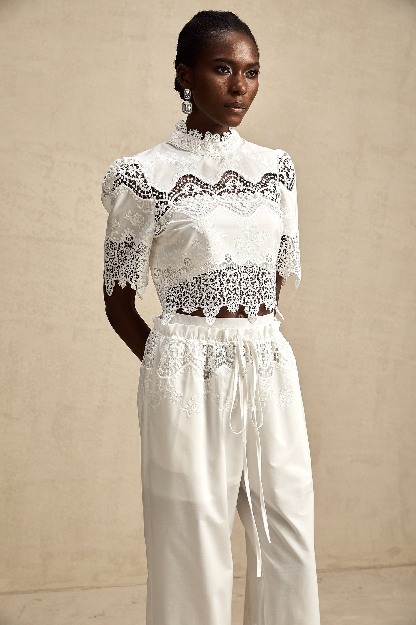 Raphaëlle lace-trim cut-out cropped top & trousers matching set