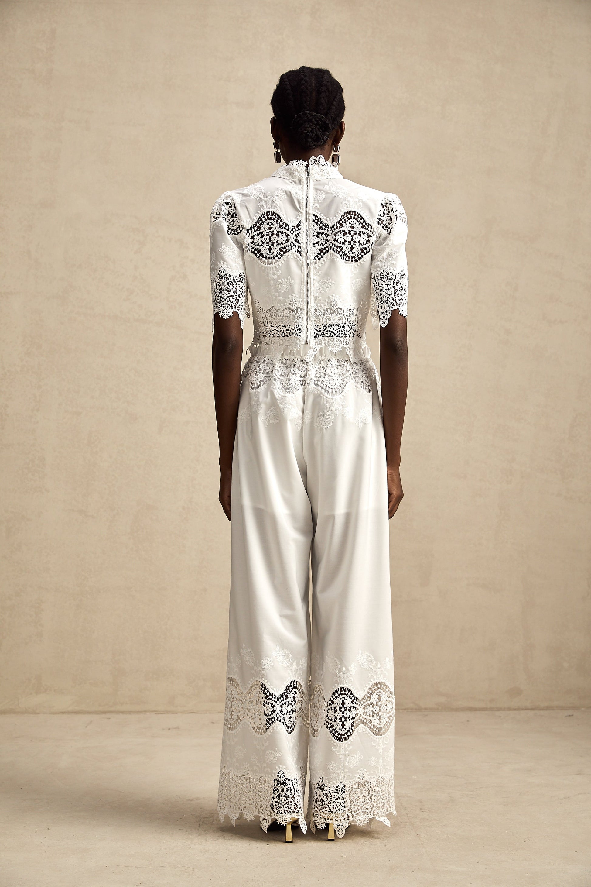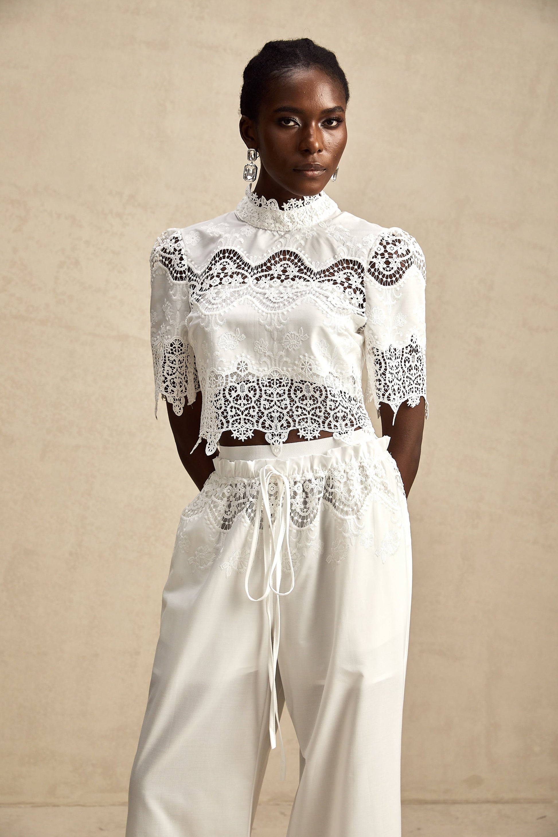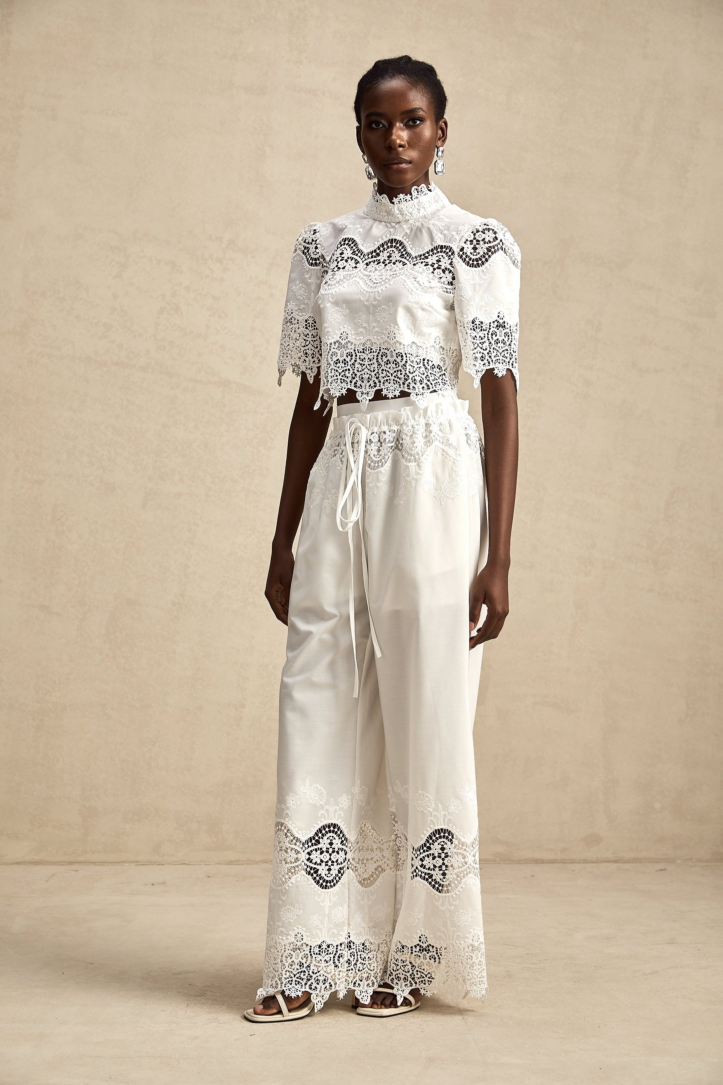 Raphaëlle lace-trim cut-out cropped top & trousers matching set