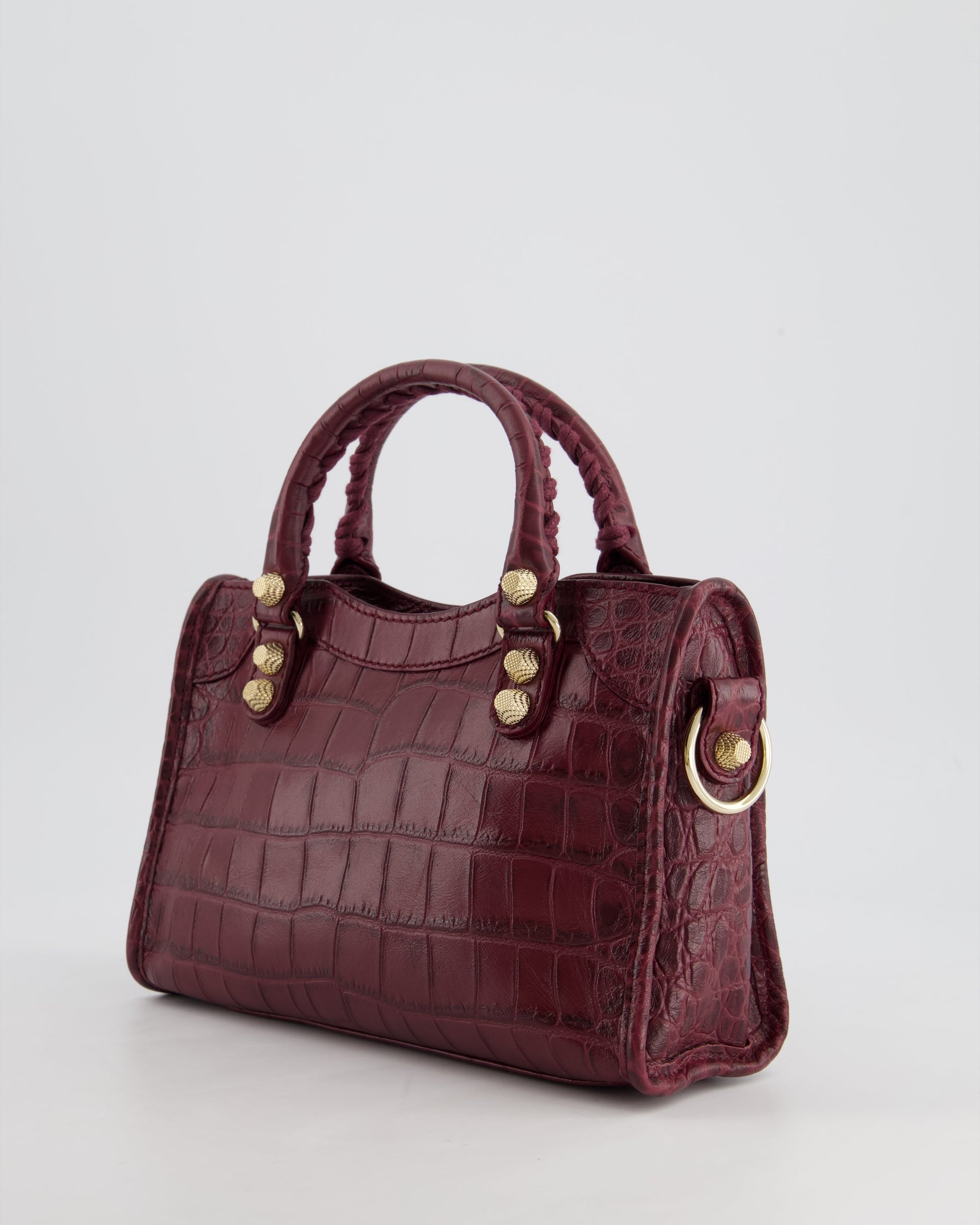 *RARE* Balenciaga Purple Mini City Bag in Alligator Leather with Gold Hardware