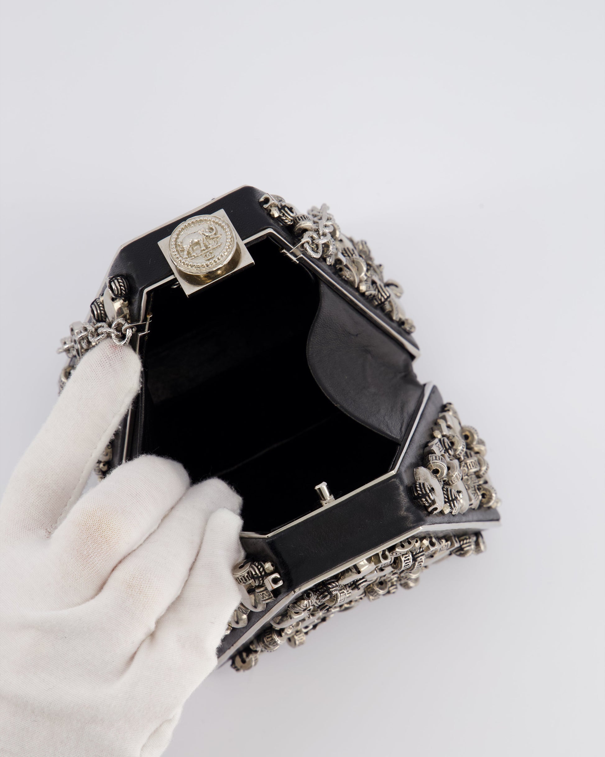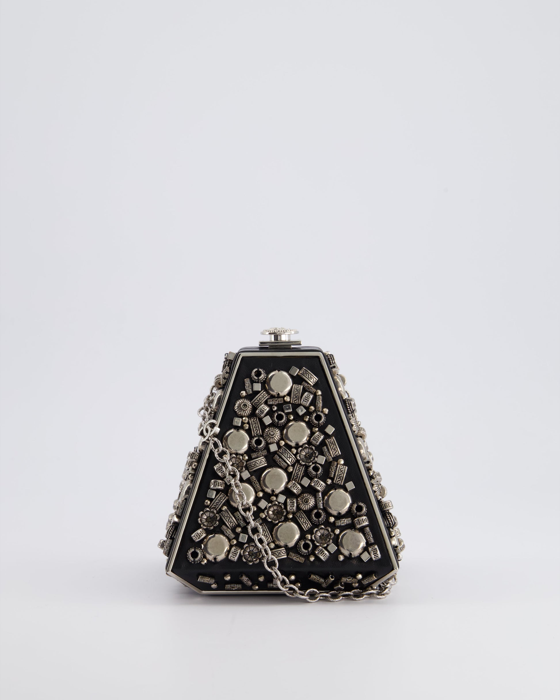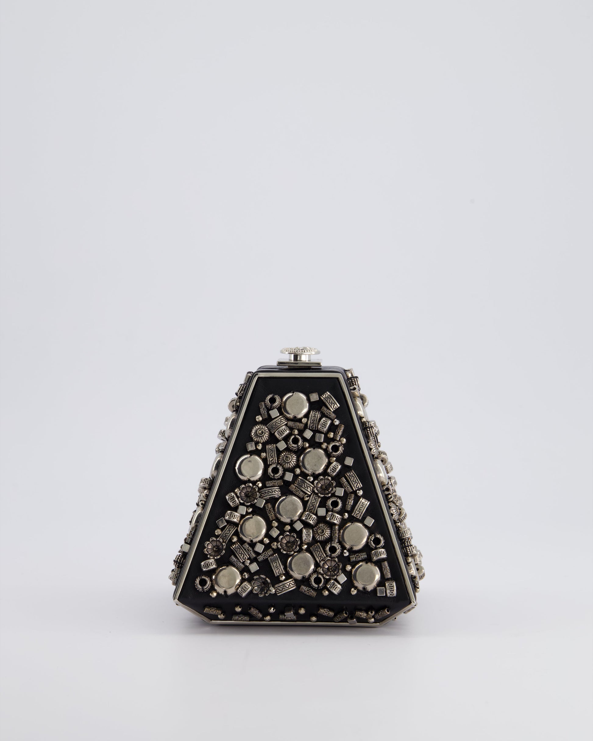 *RARE* Chanel 2012 Pre-Fall Paris-Bombay Collection Black Leather & Silver Hardware Detail Pyramid Evening Bag