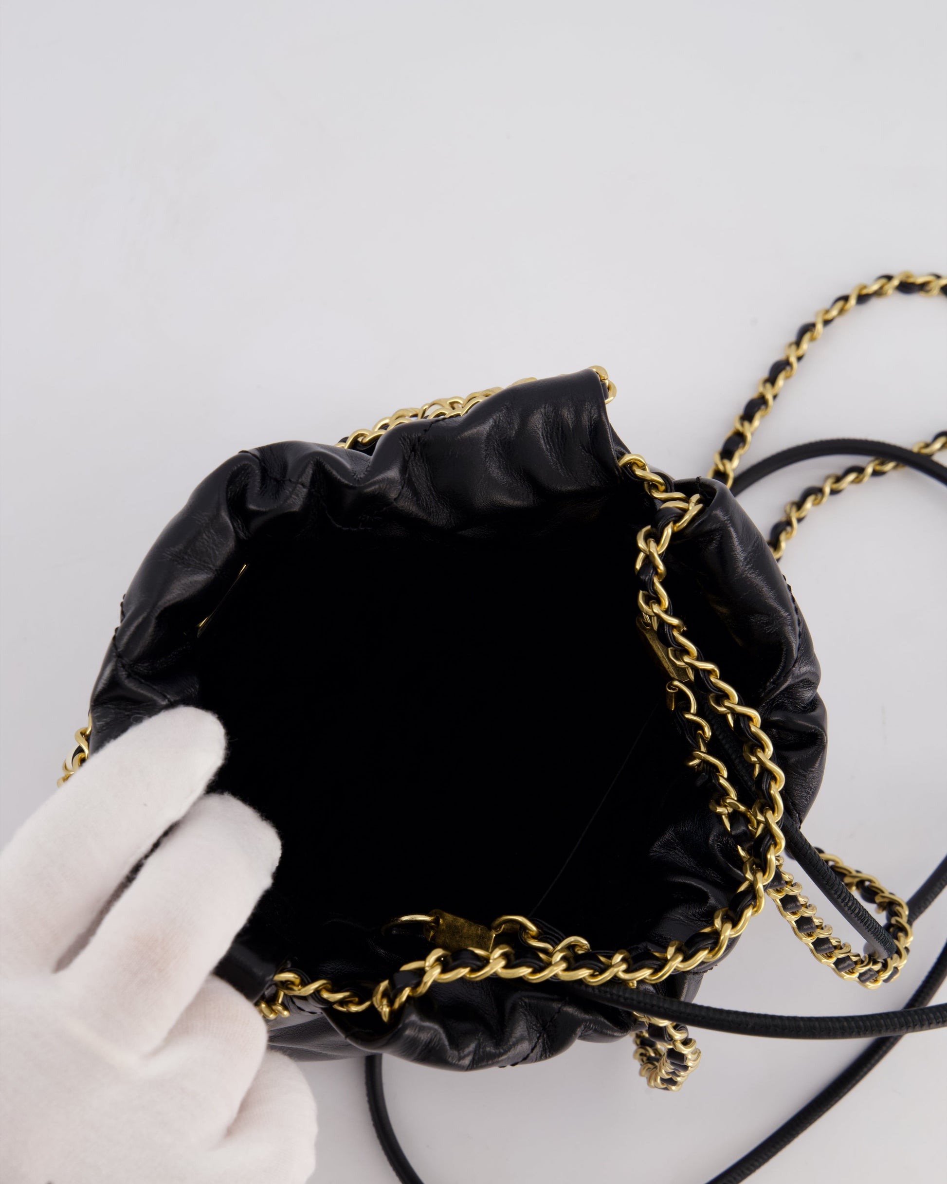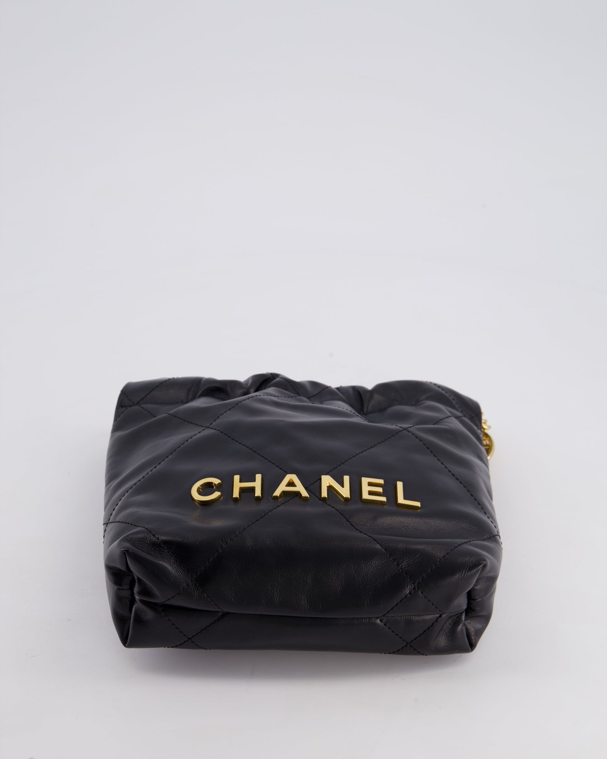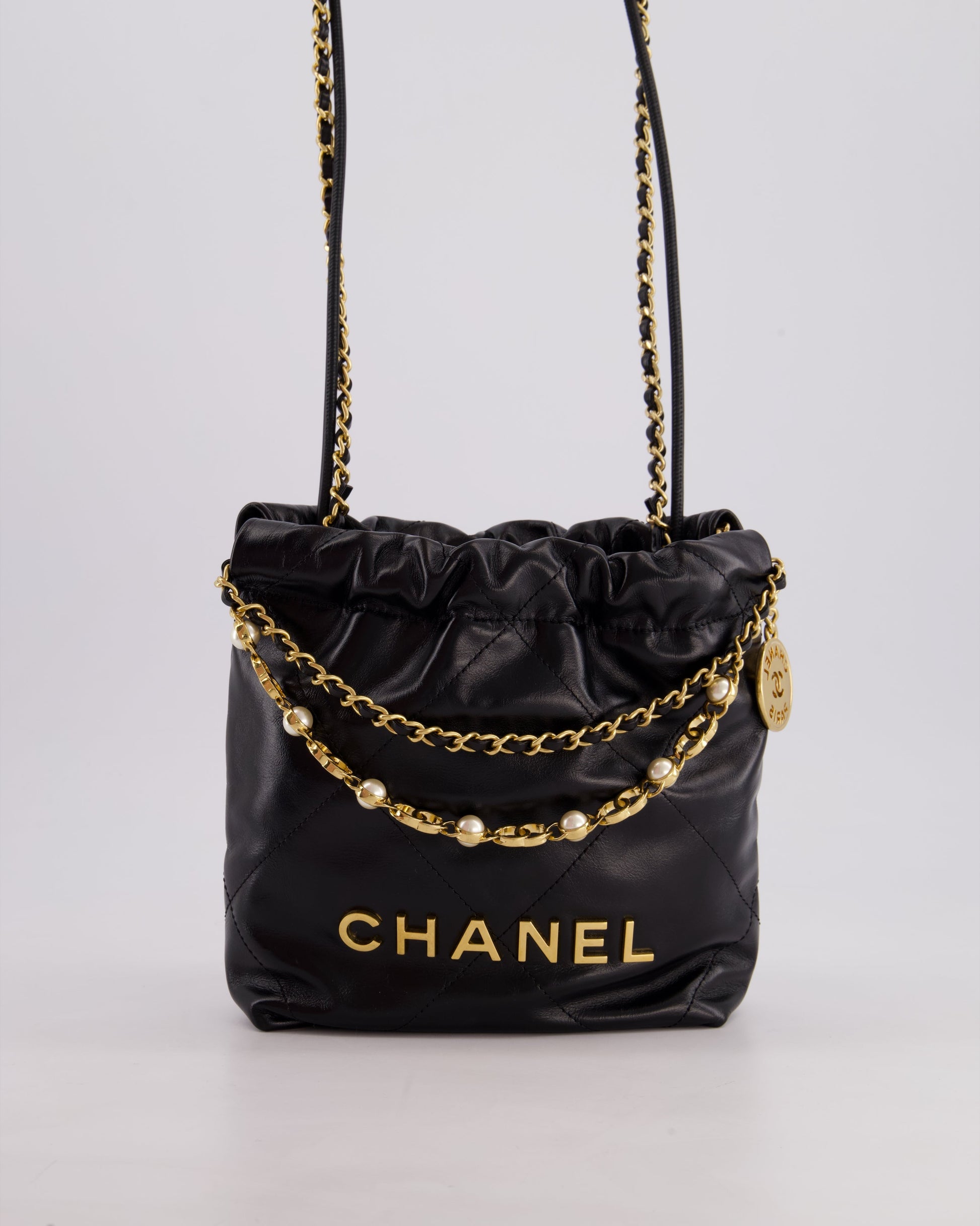 *RARE* Chanel Mini 22 Bag in Black Shiny Calfskin with Gold Hardware and Pearls CC Chain Detail
