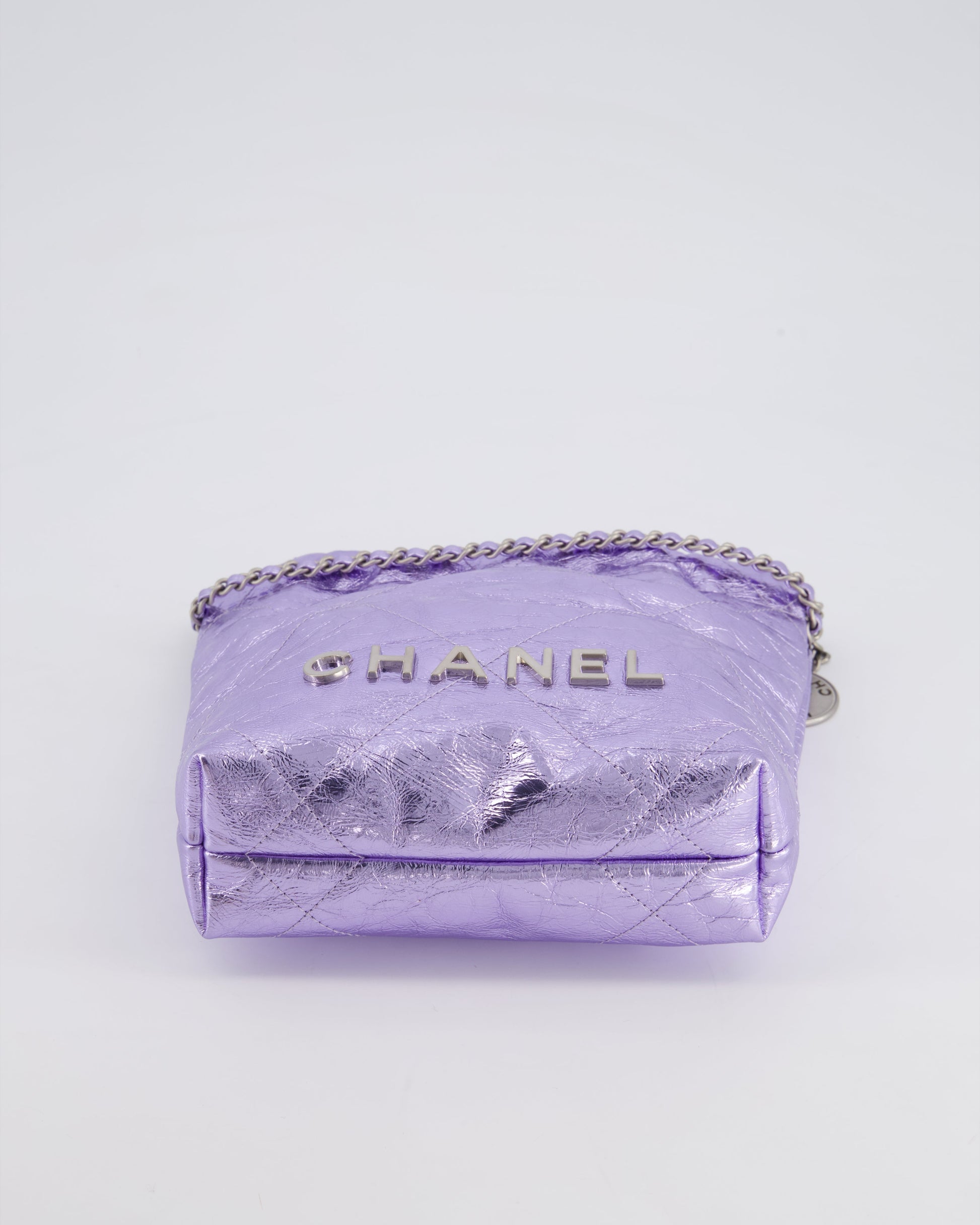 *RARE* Chanel Mini 22 Bag in Metallic Lilac Aged Shiny Calfskin with Brushed Silver Hardware