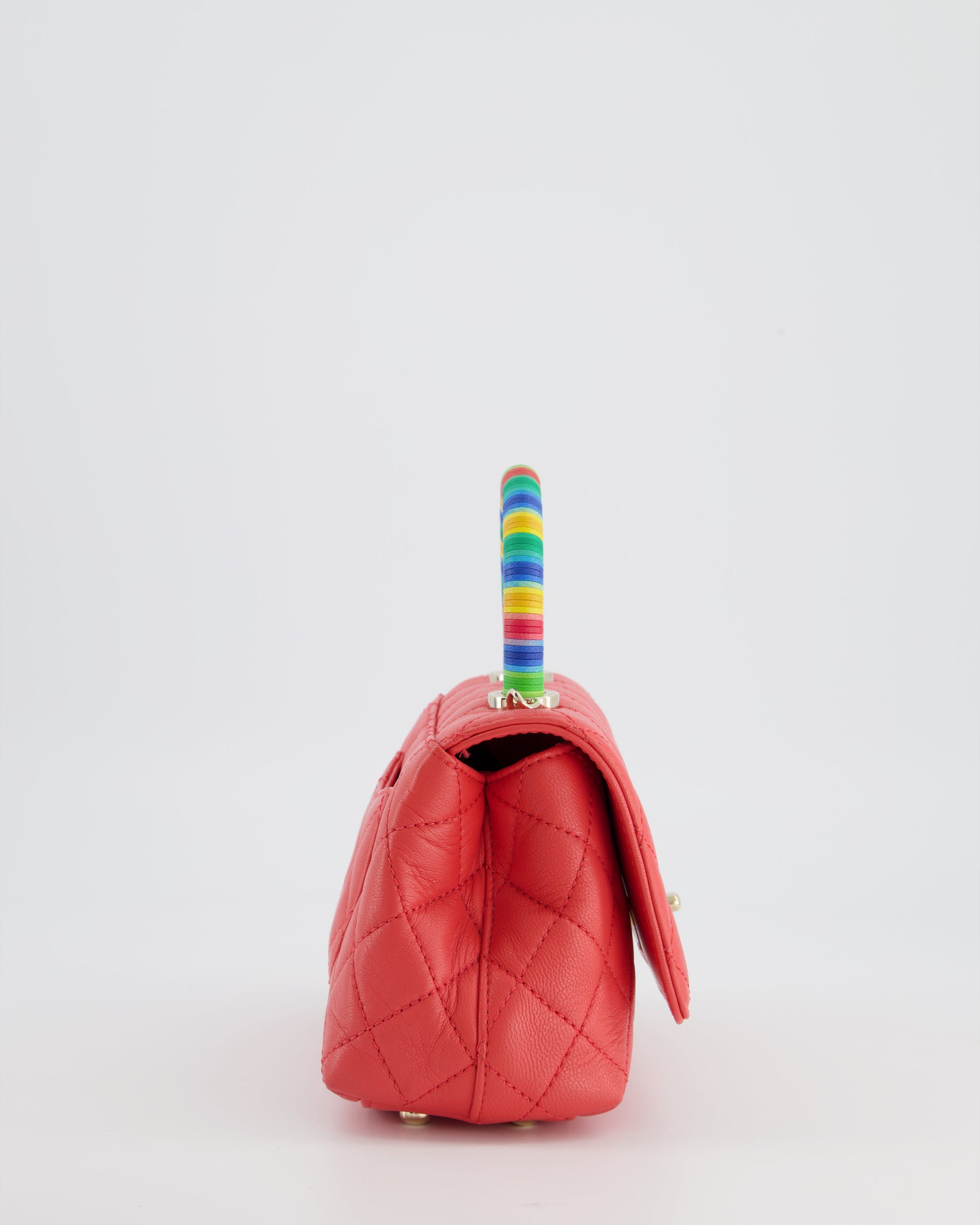 *RARE* Chanel Pink Extra Mini Coco Multi-Colour Handle Bag in Lambskin with Champagne Gold Hardware