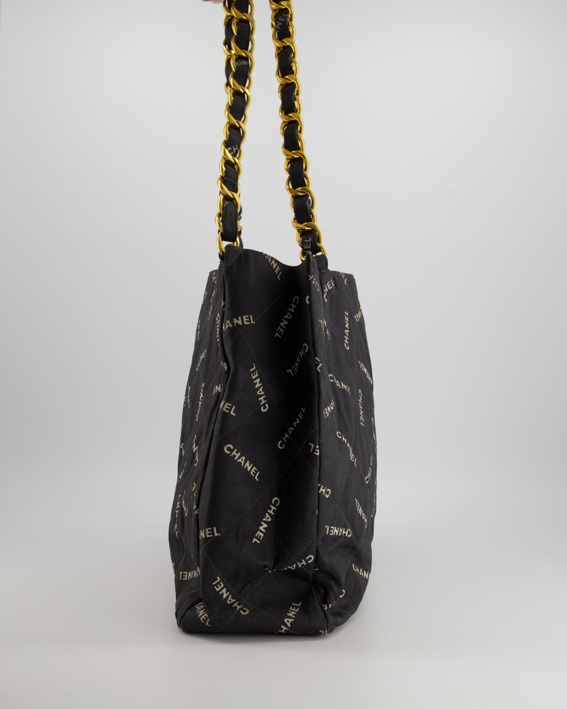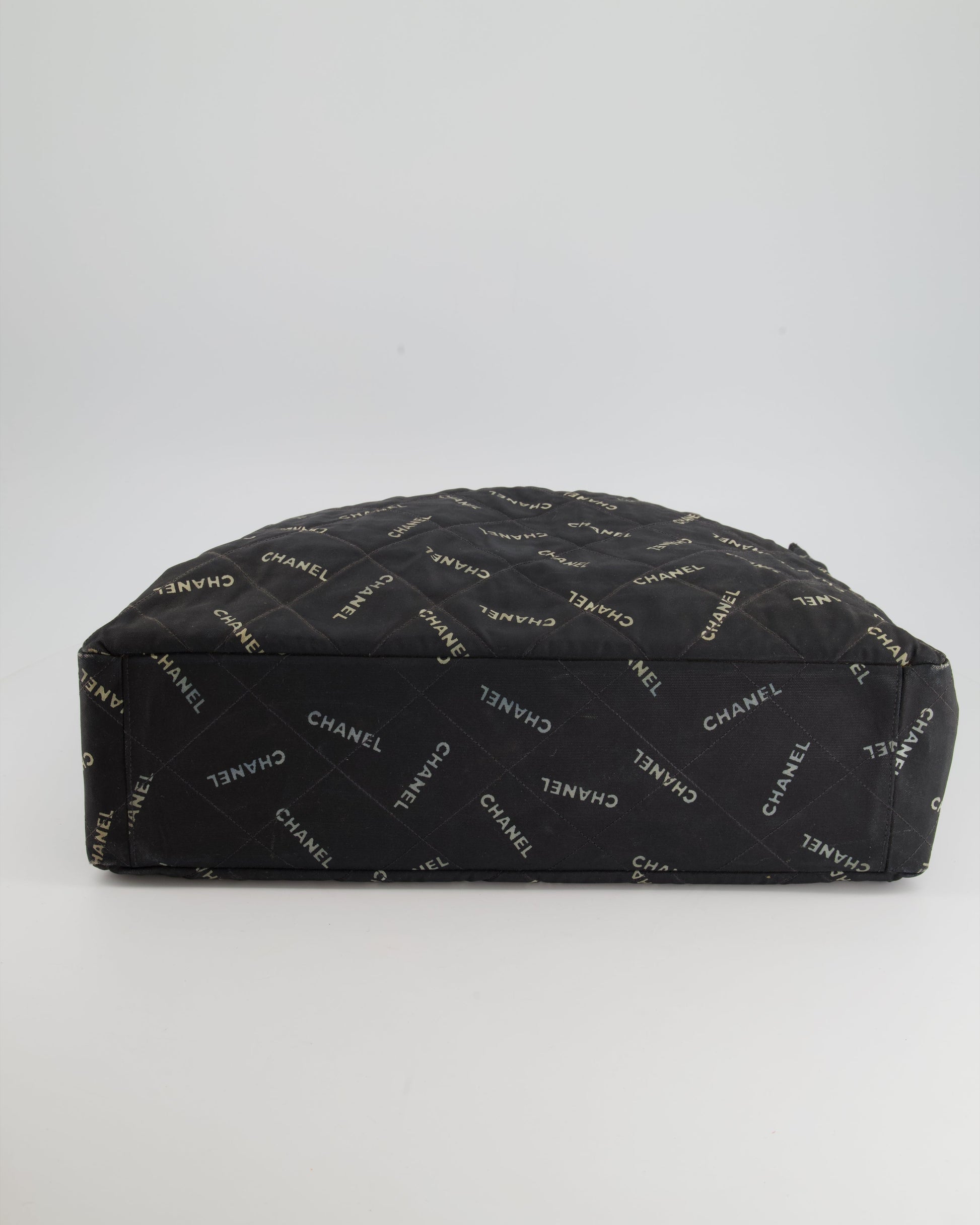 *RARE* Chanel Vintage Black Bag in Quilted Canvas Logo Print with Gold Hardware