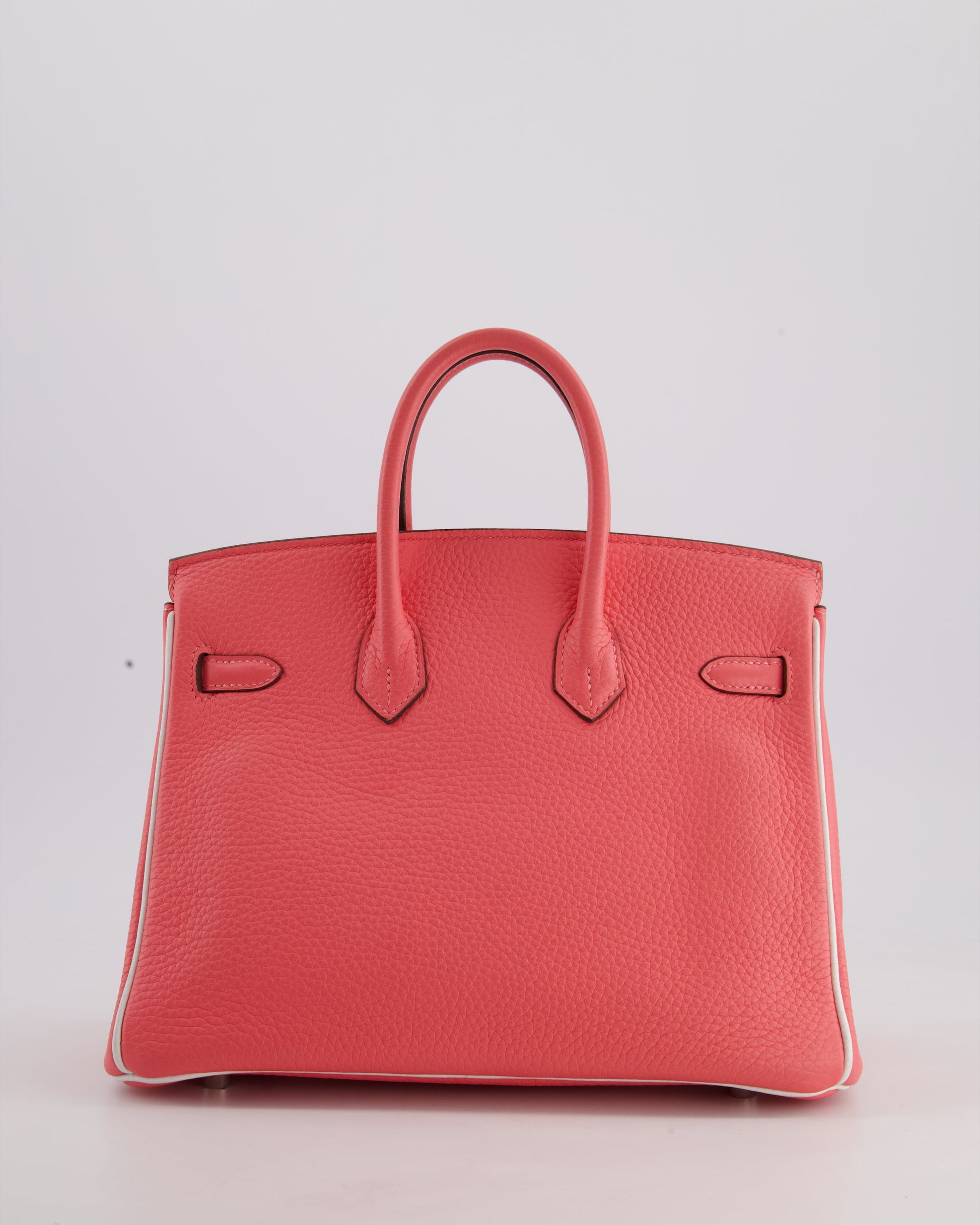 *RARE* Hermès Birkin HSS 25cm Retourne in Rose D'Ete and White Clemence Leather with Palladium Hardware