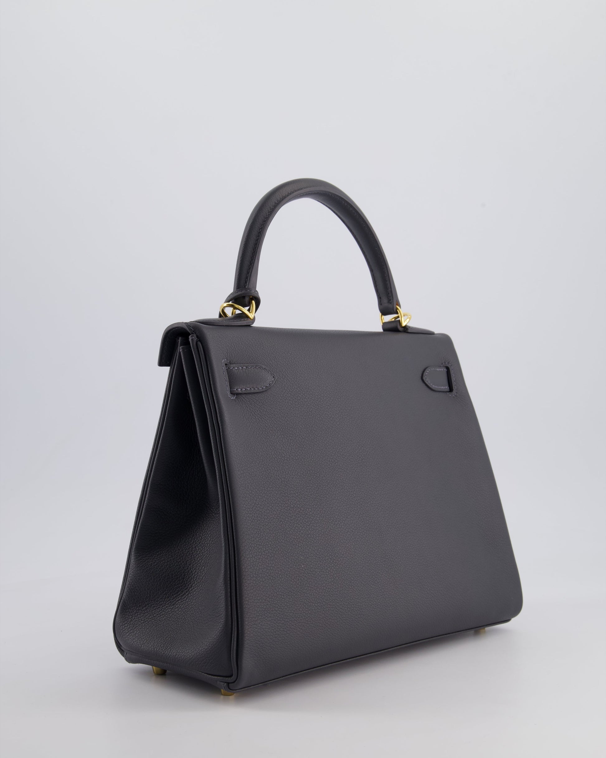 *RARE* Hermès Kelly 28cm Retourne Bag in Ardoise Evercolour Leather with Gold Hardware