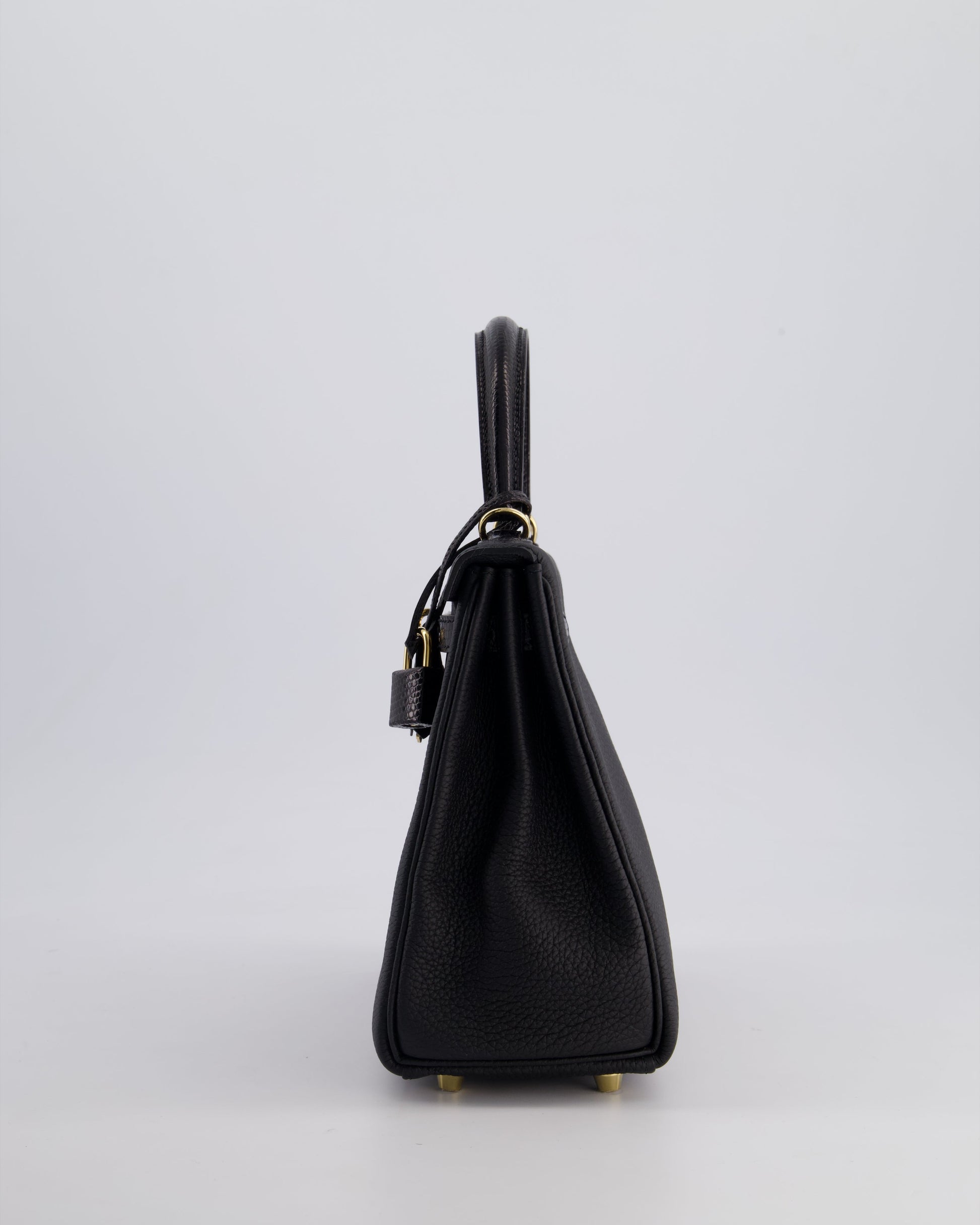*RARE* Hermès Kelly Touch Retourne 25cm Bag in Noir Togo leather and Lizard with Permabrass Hardware